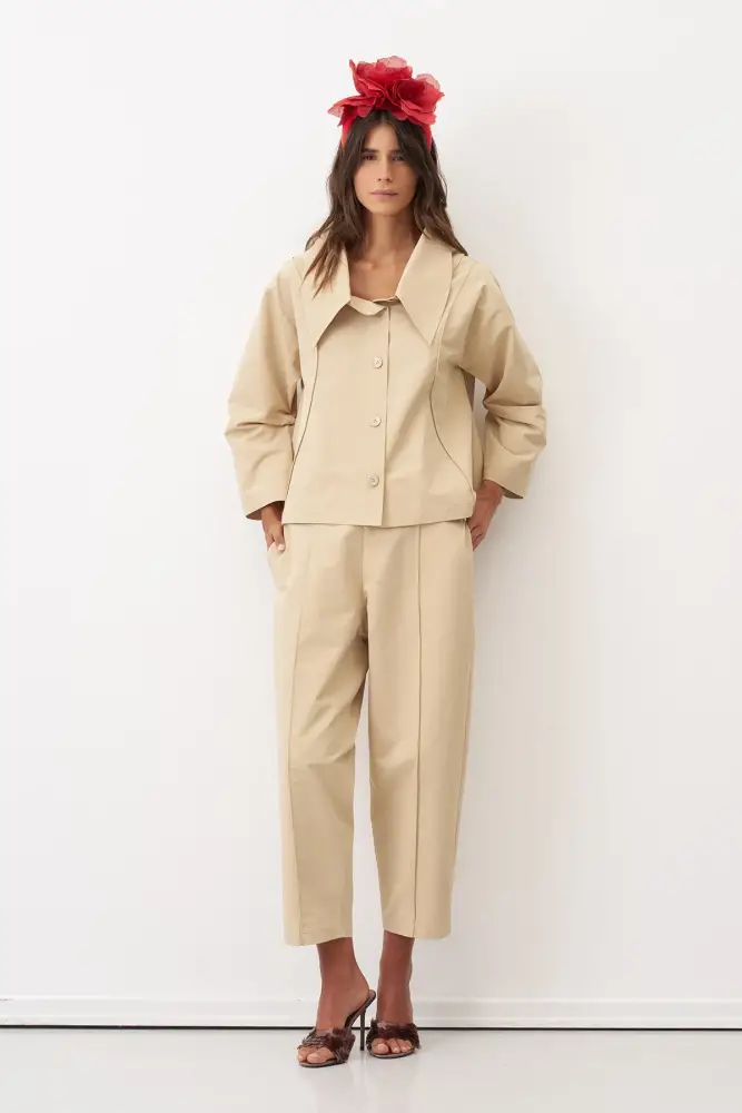Bej Dikiş İzli Bilek Boy Alatonisi Pantolon
