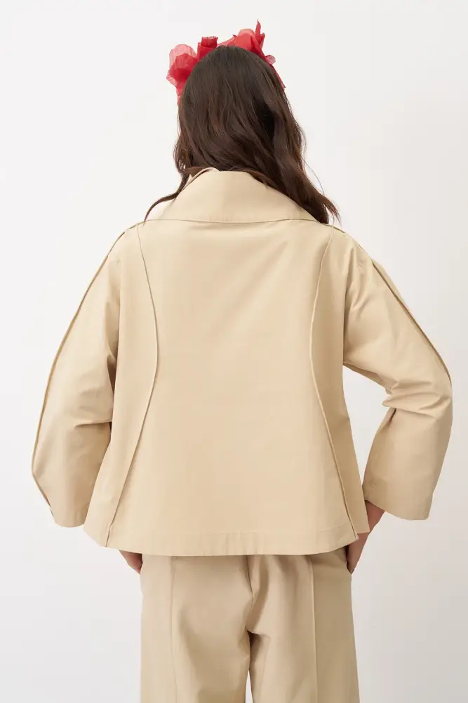 Bej Büyük Yaka Bedeni Üste Oturan Alatonisi Ceket