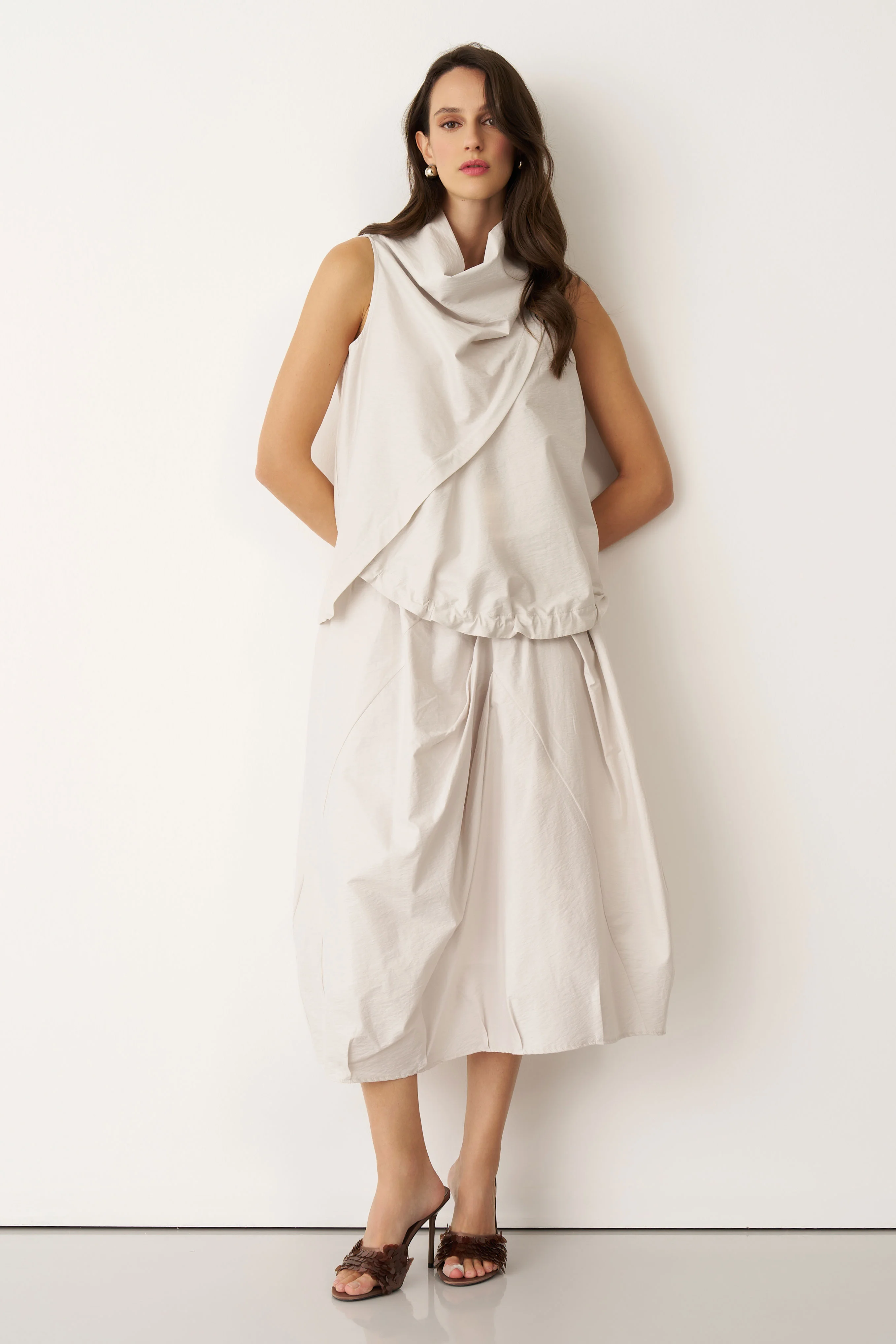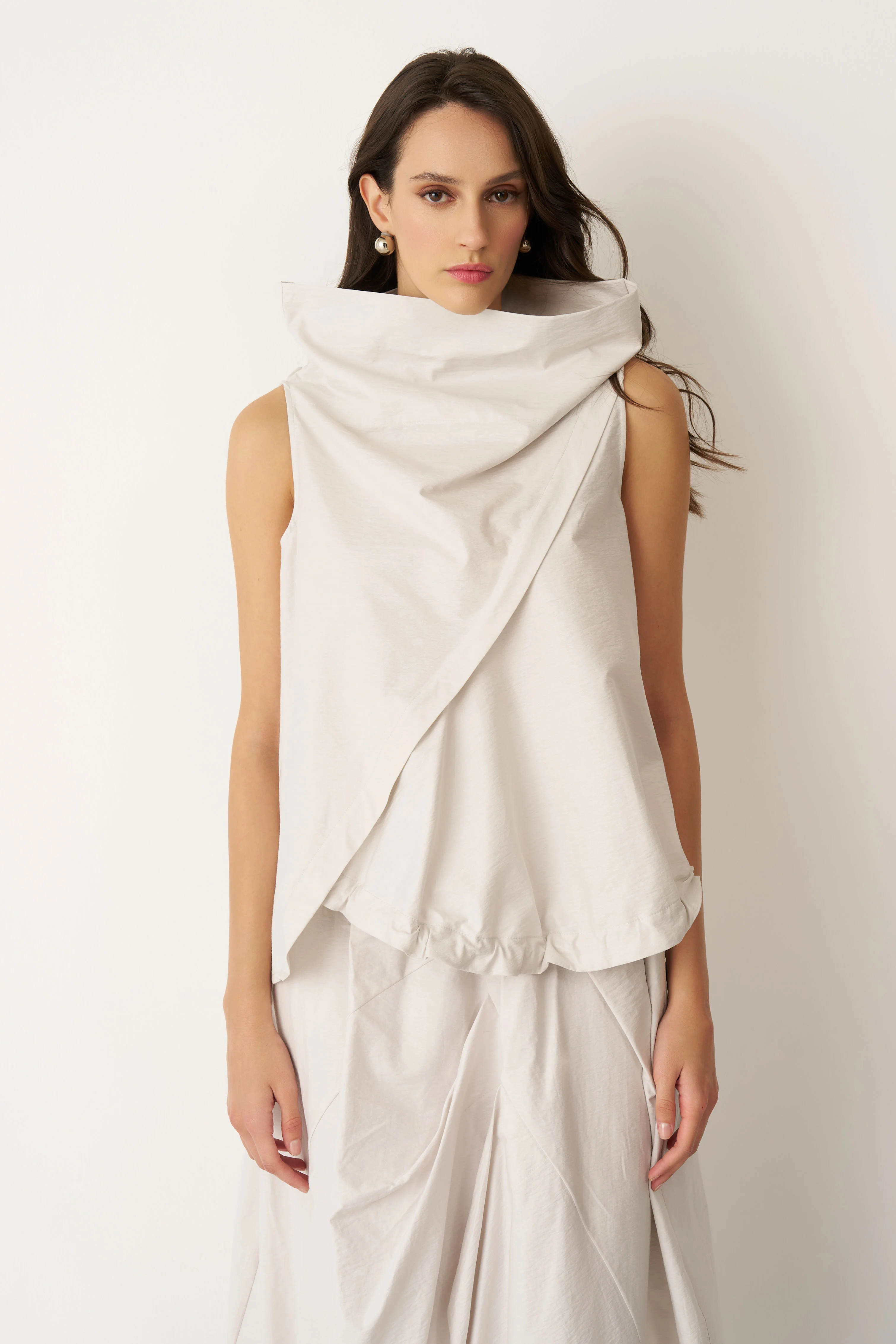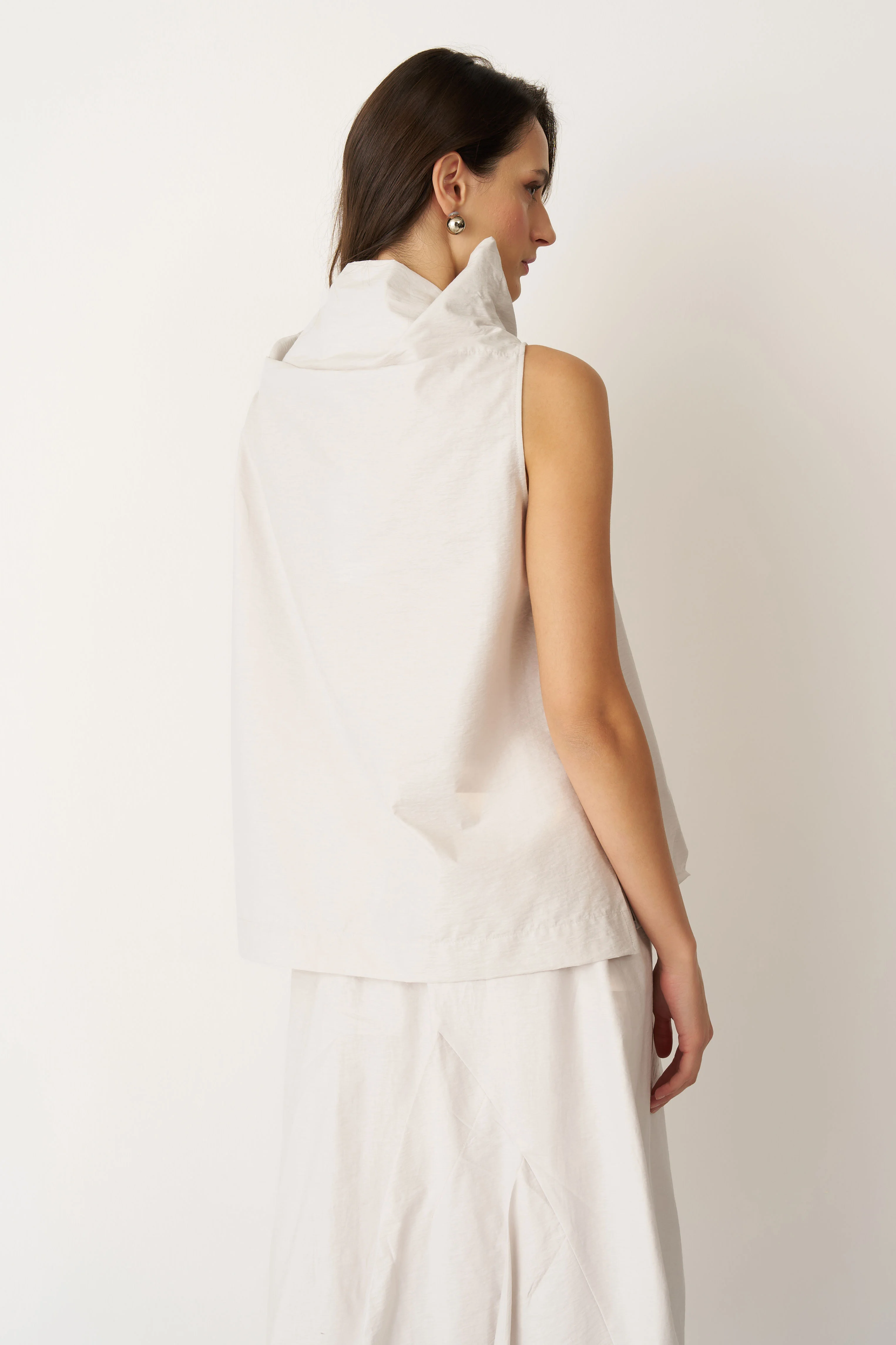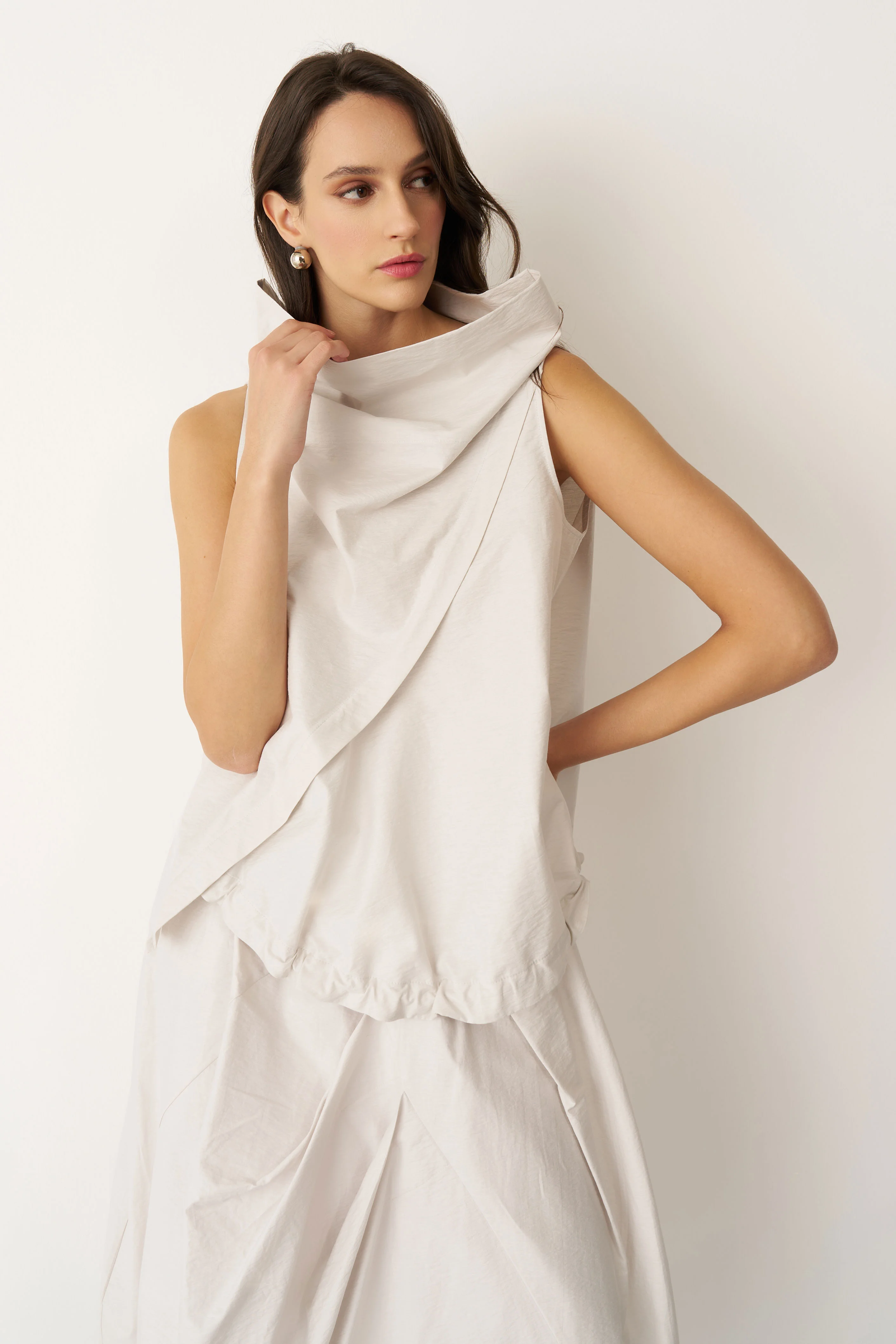 Bej Büyük Yakalı Etek Ucu Büzgülü Kolsuz Koufi Bluz