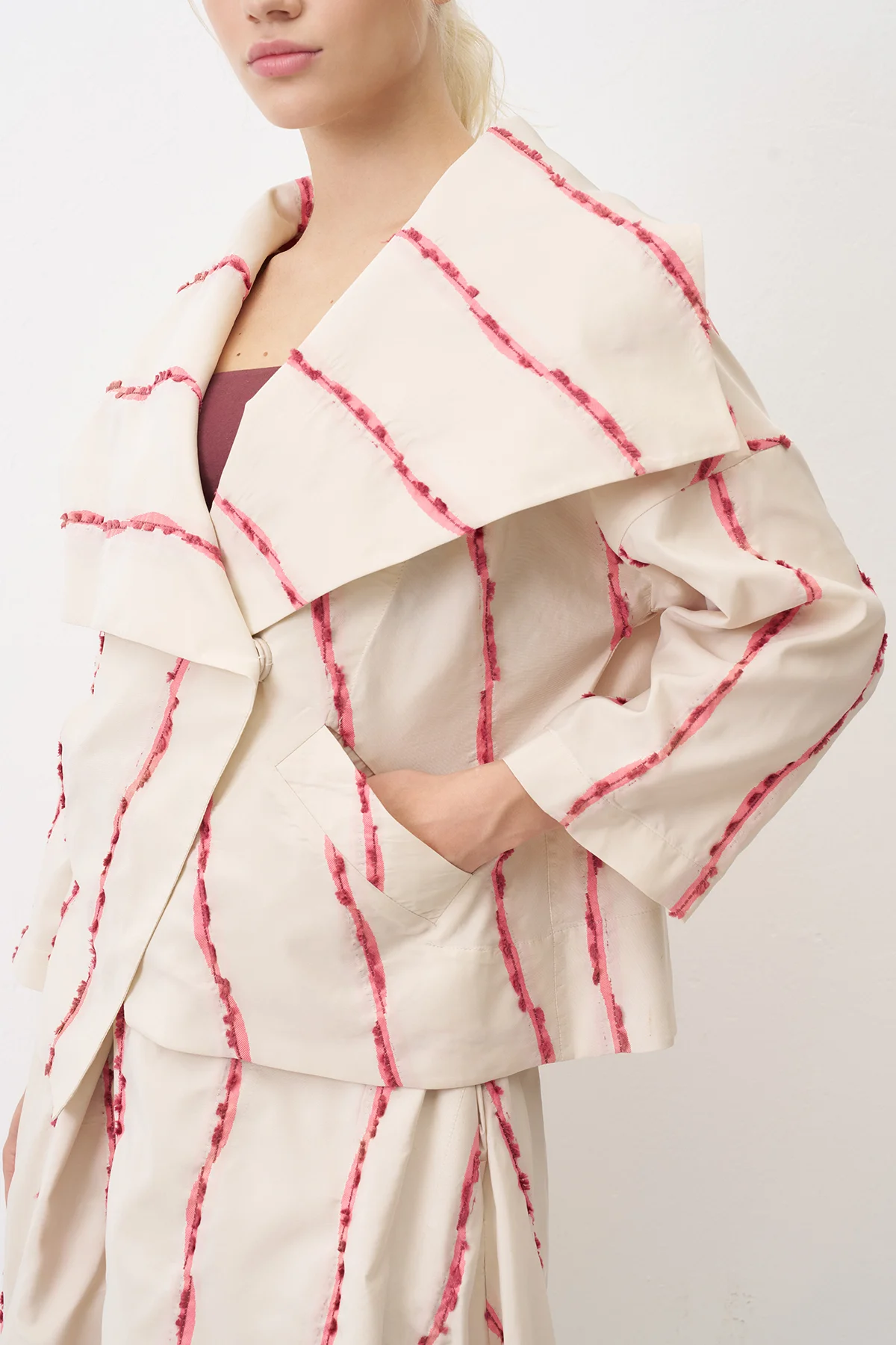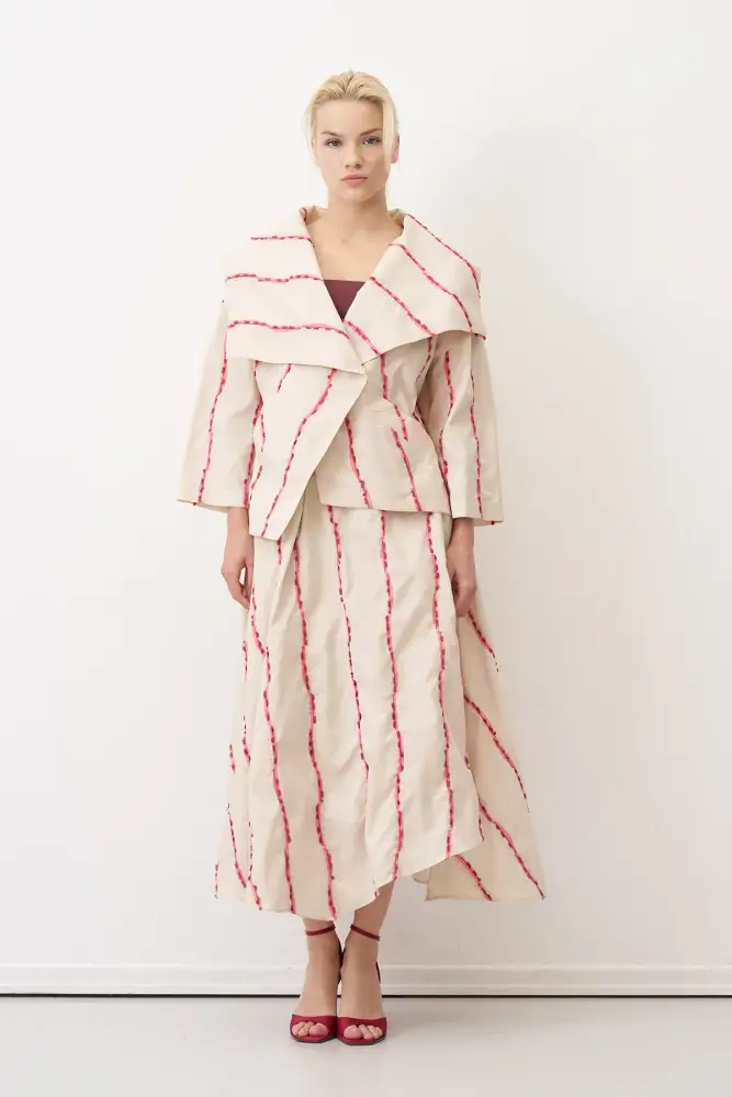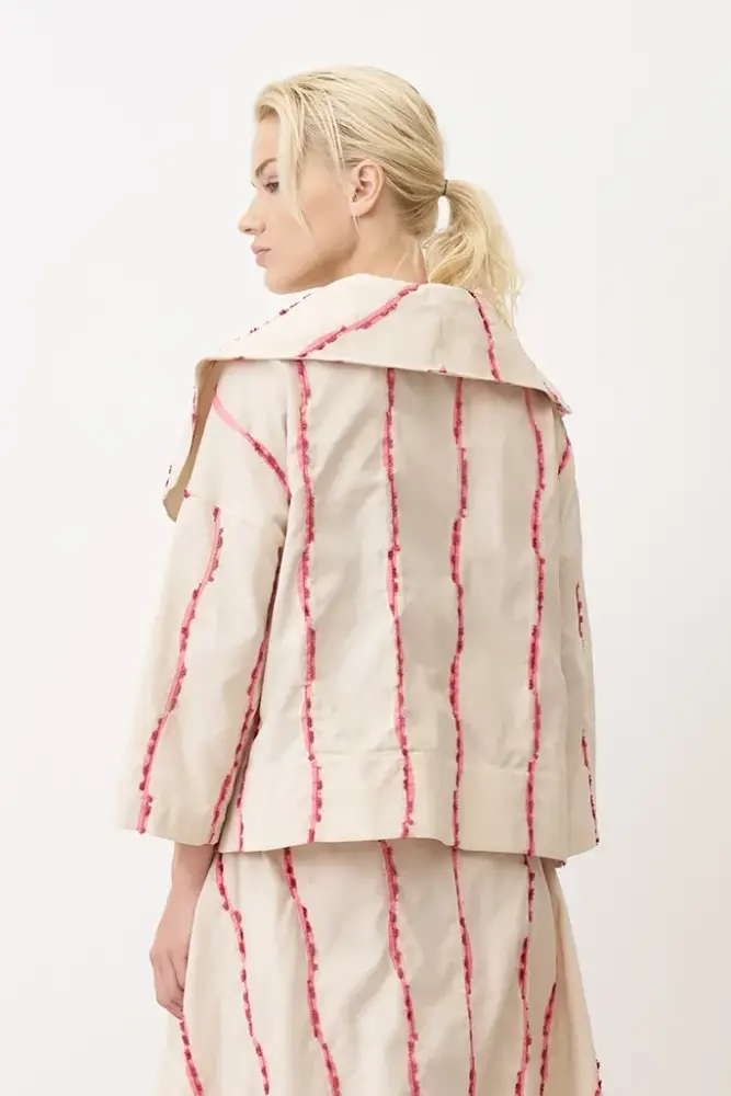 Bej Çizgi Detaylı Şal Yaka Psomi Ceket