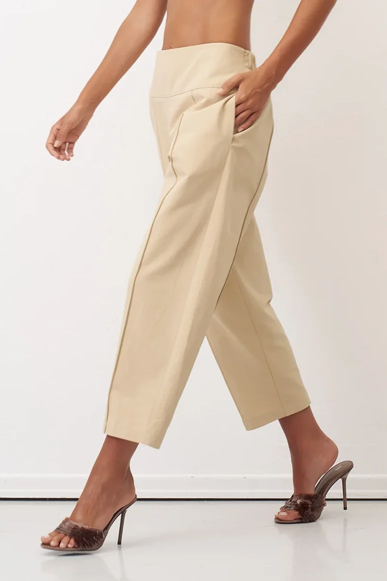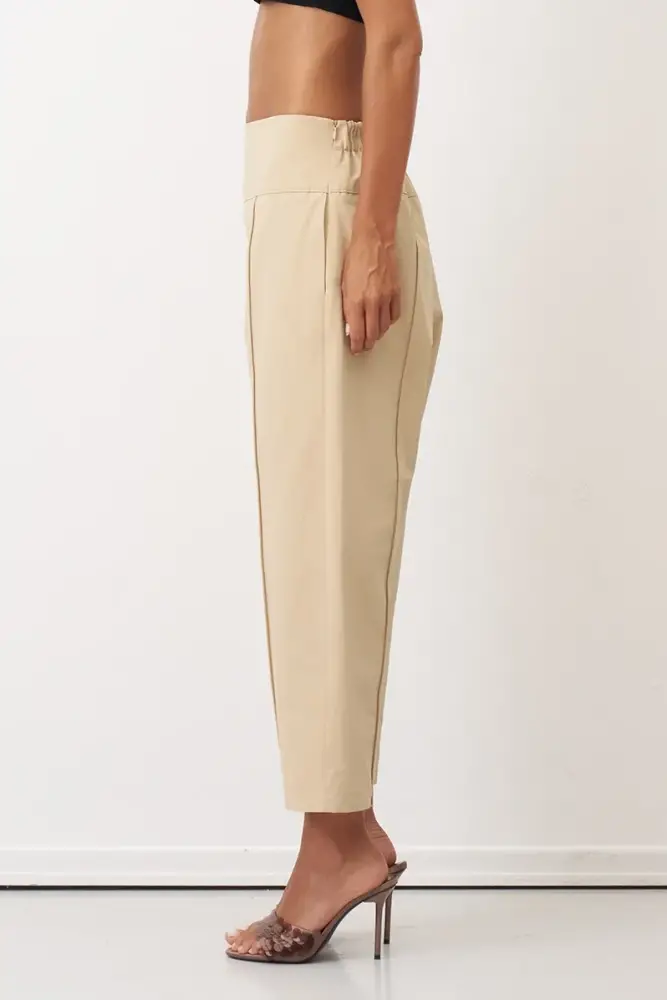 Bej Dikiş İzli Bilek Boy Alatonisi Pantolon