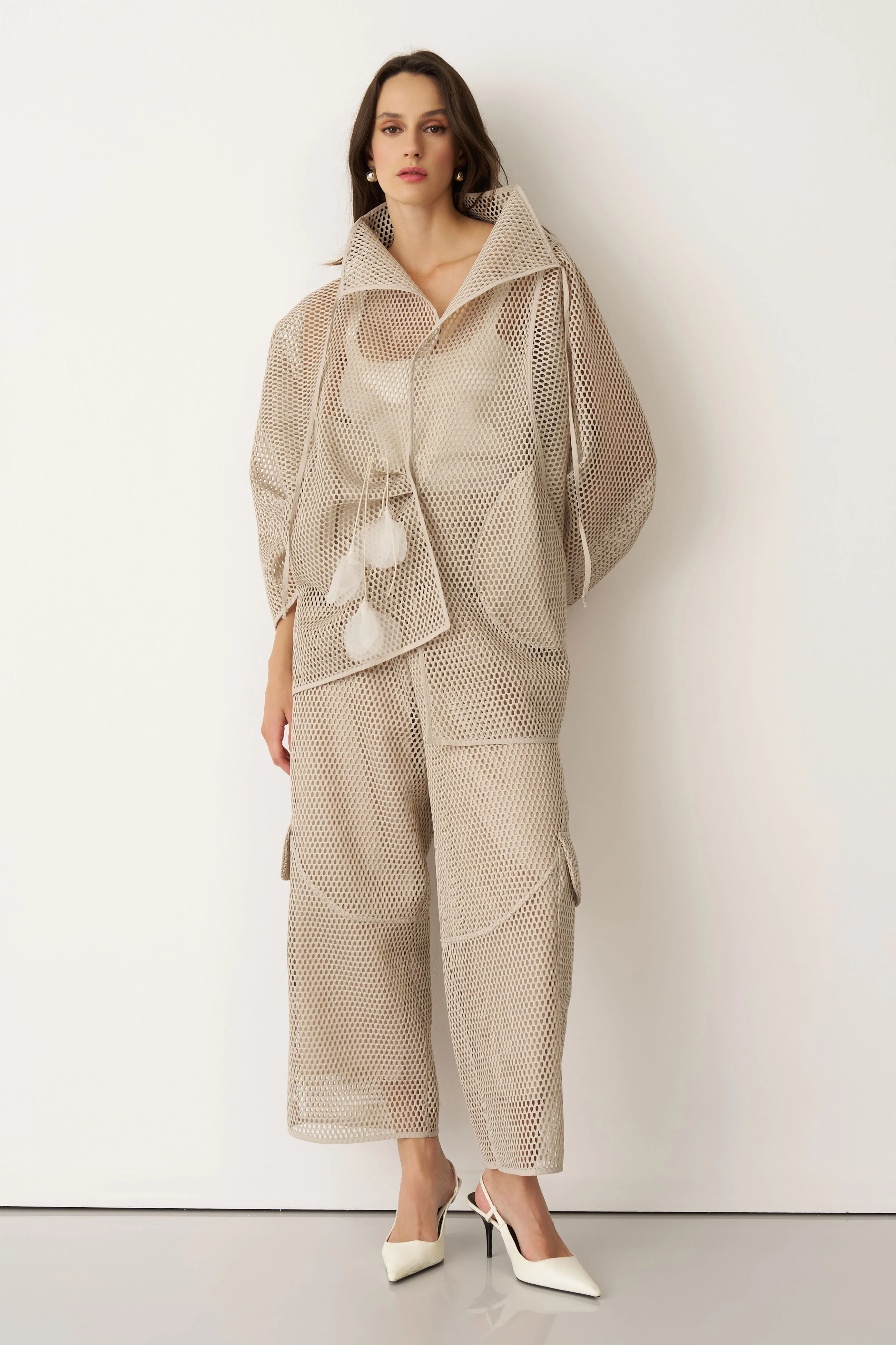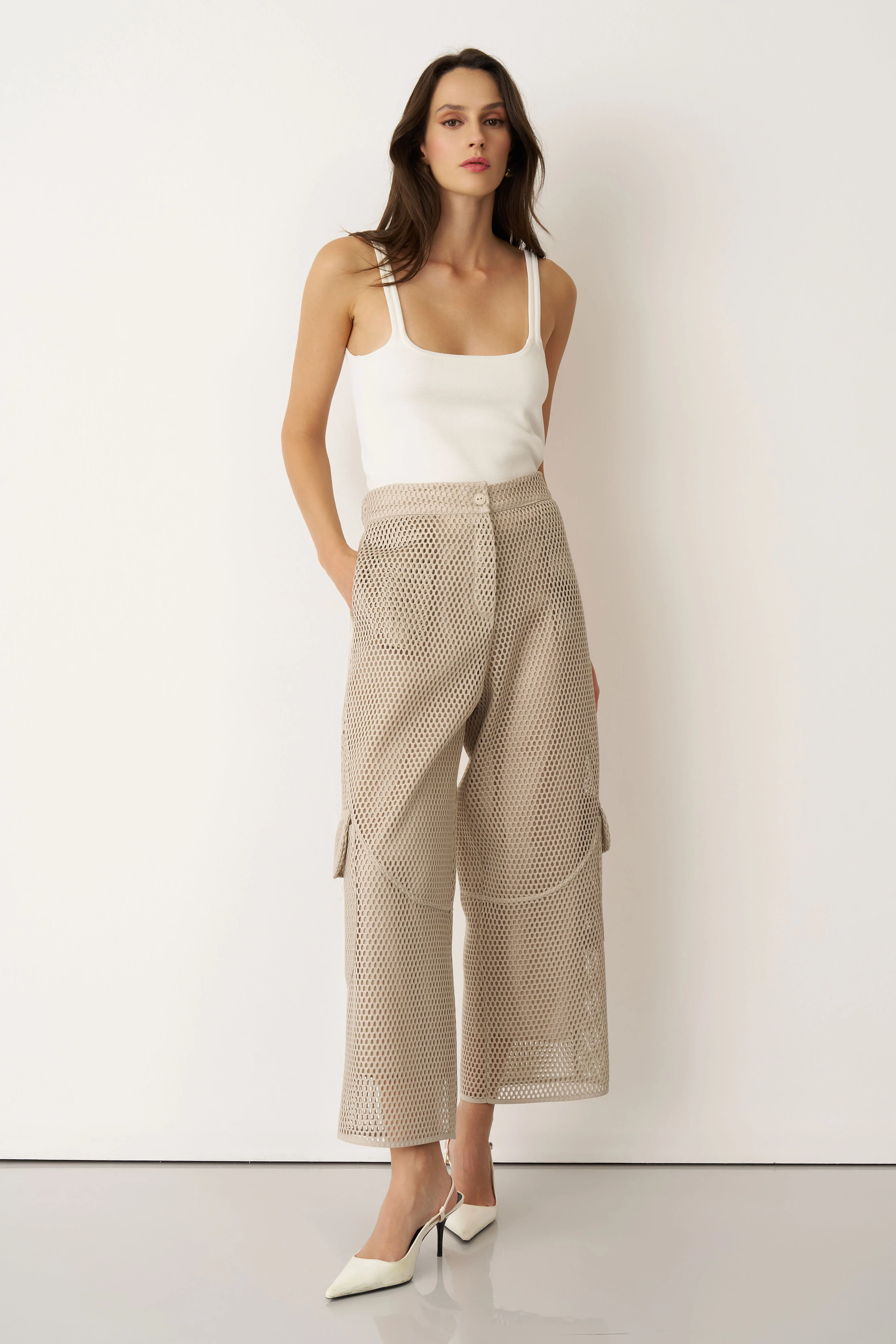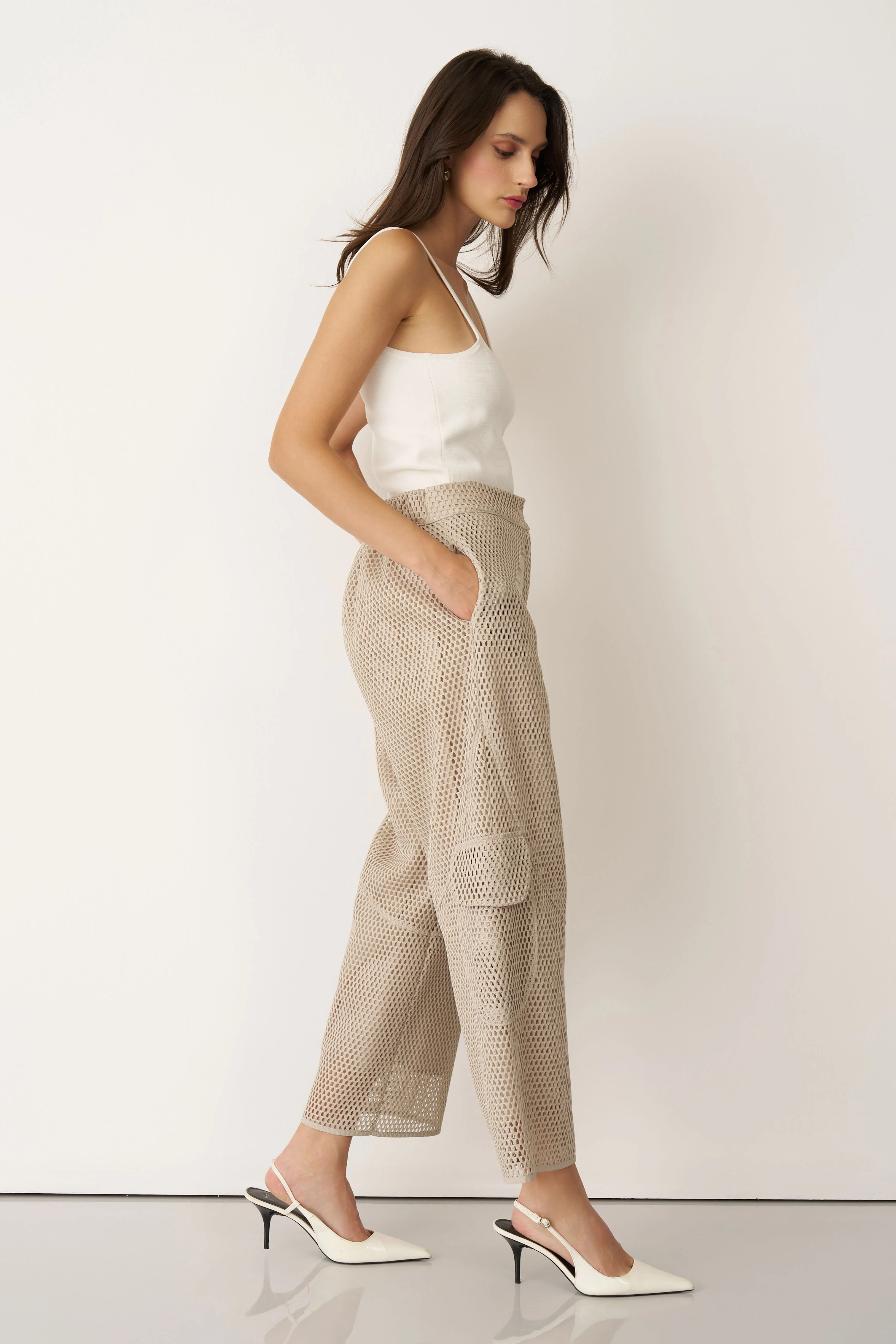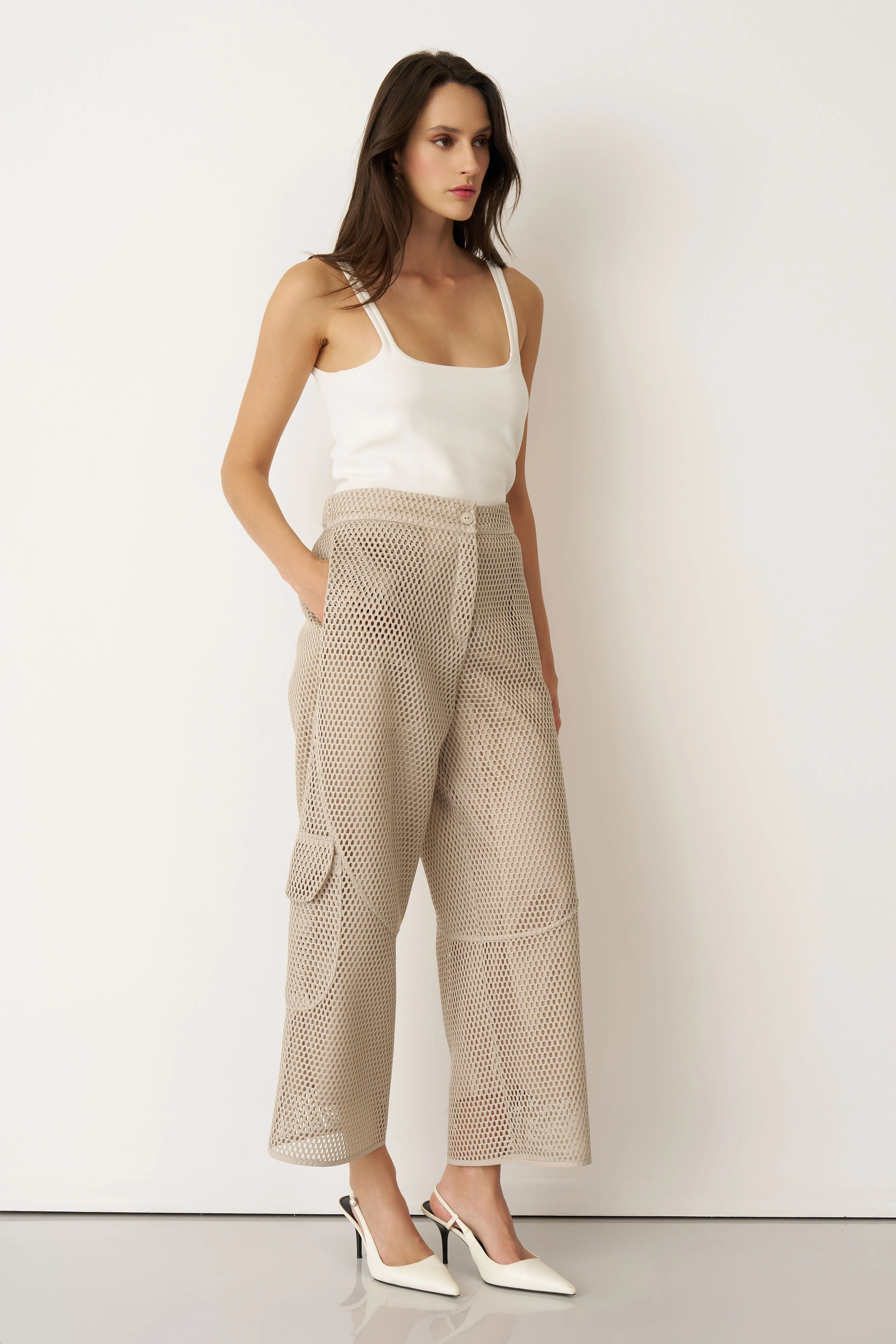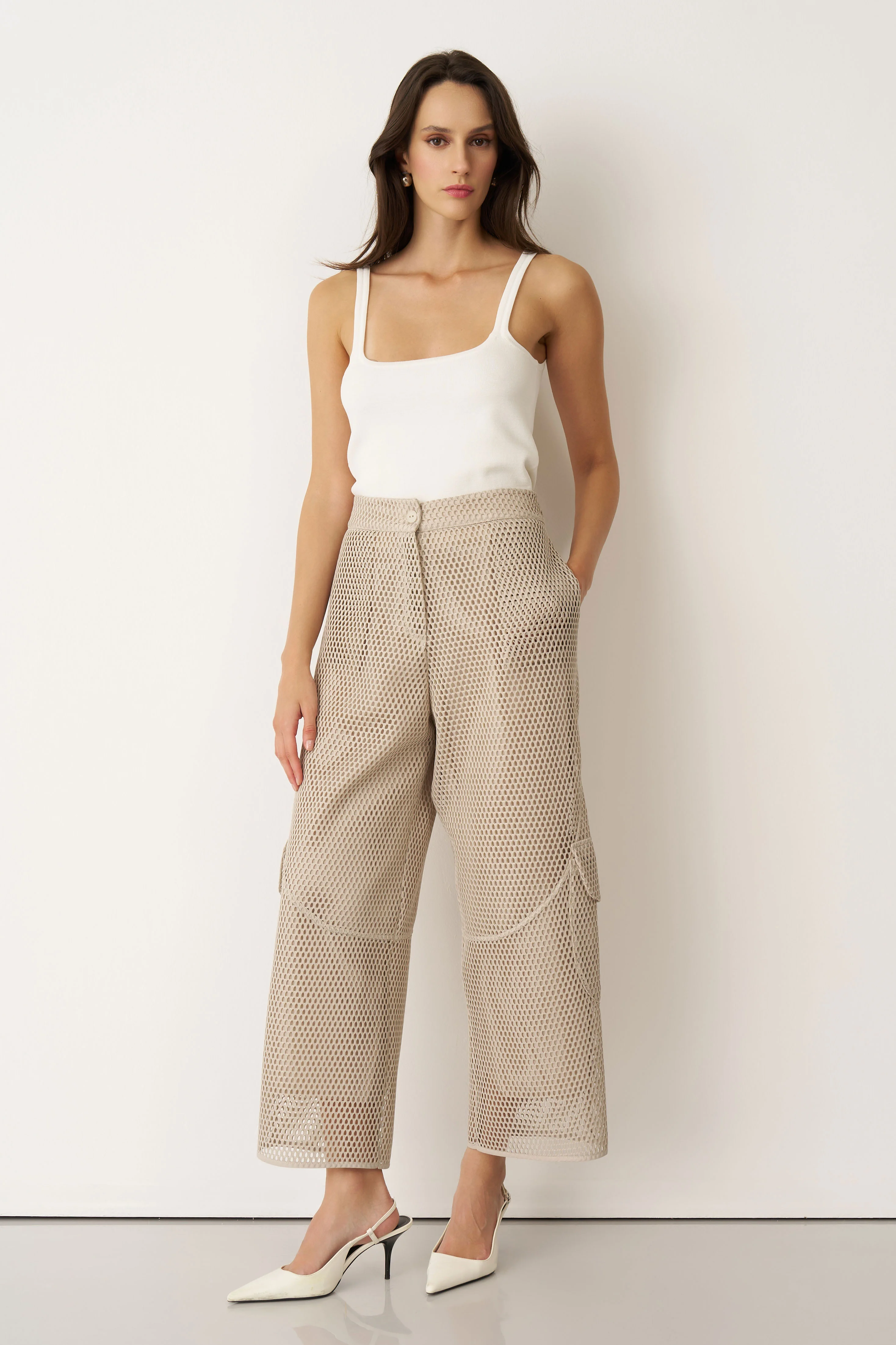 Bej File Dokulu Kalavria Kargo Pantolon