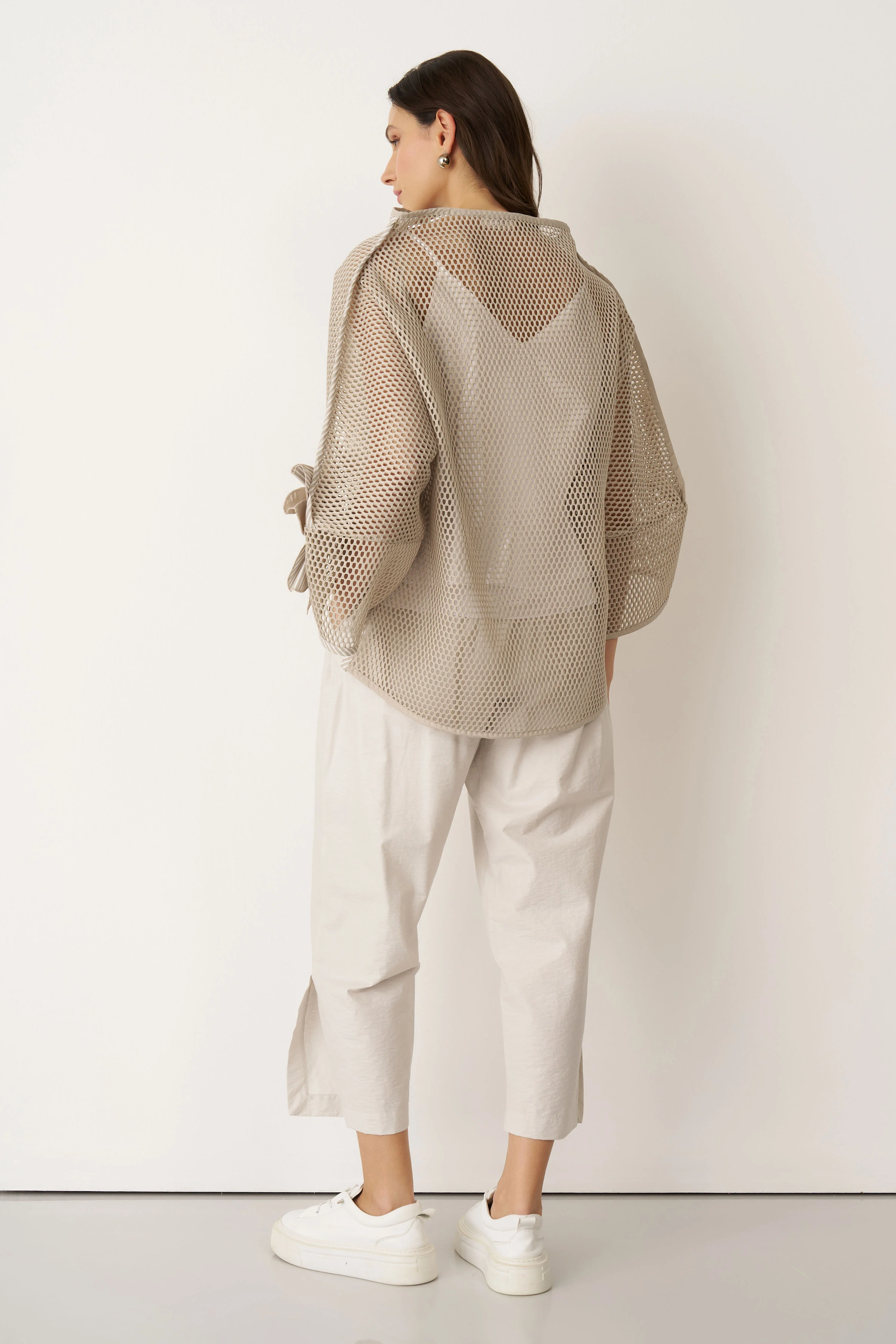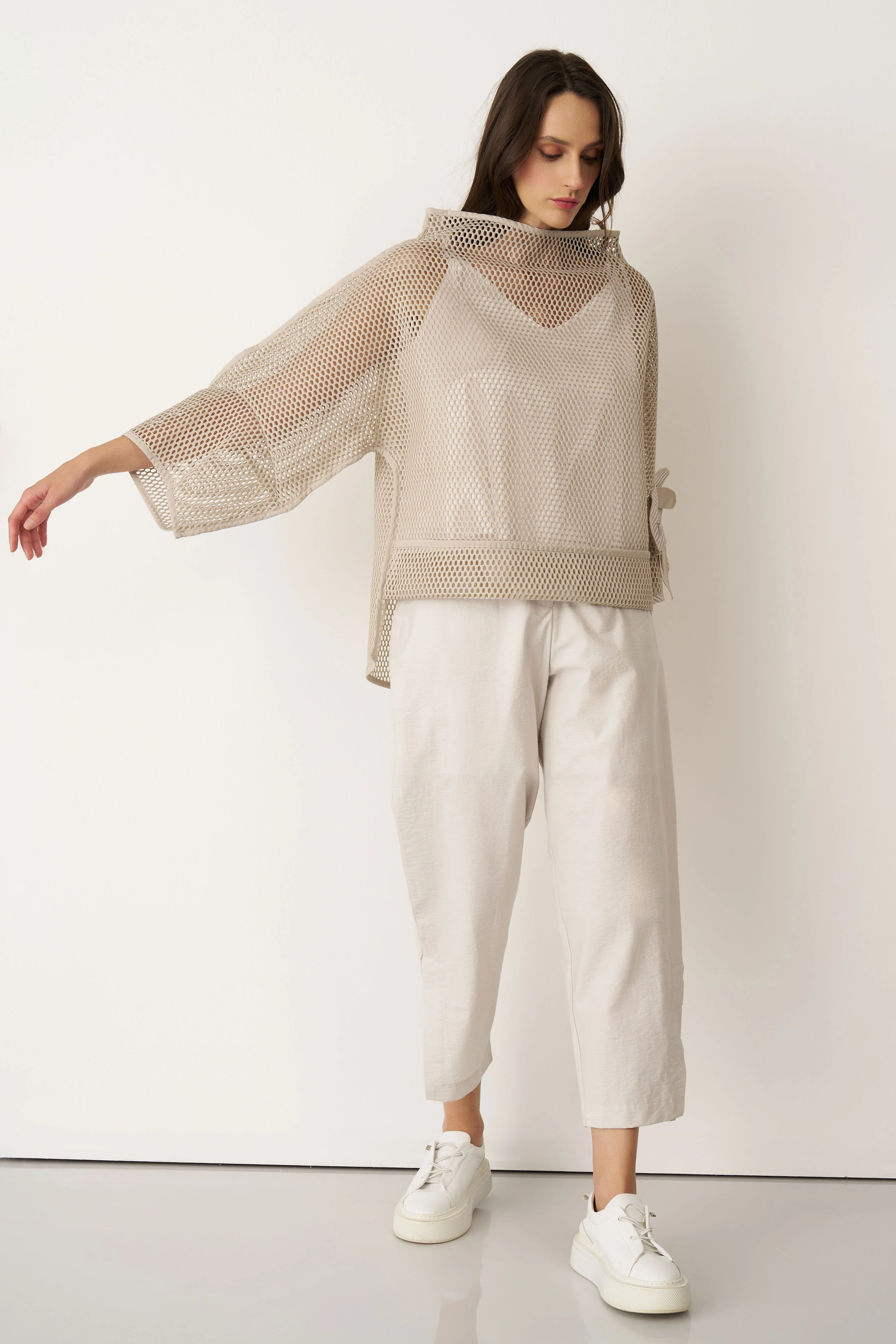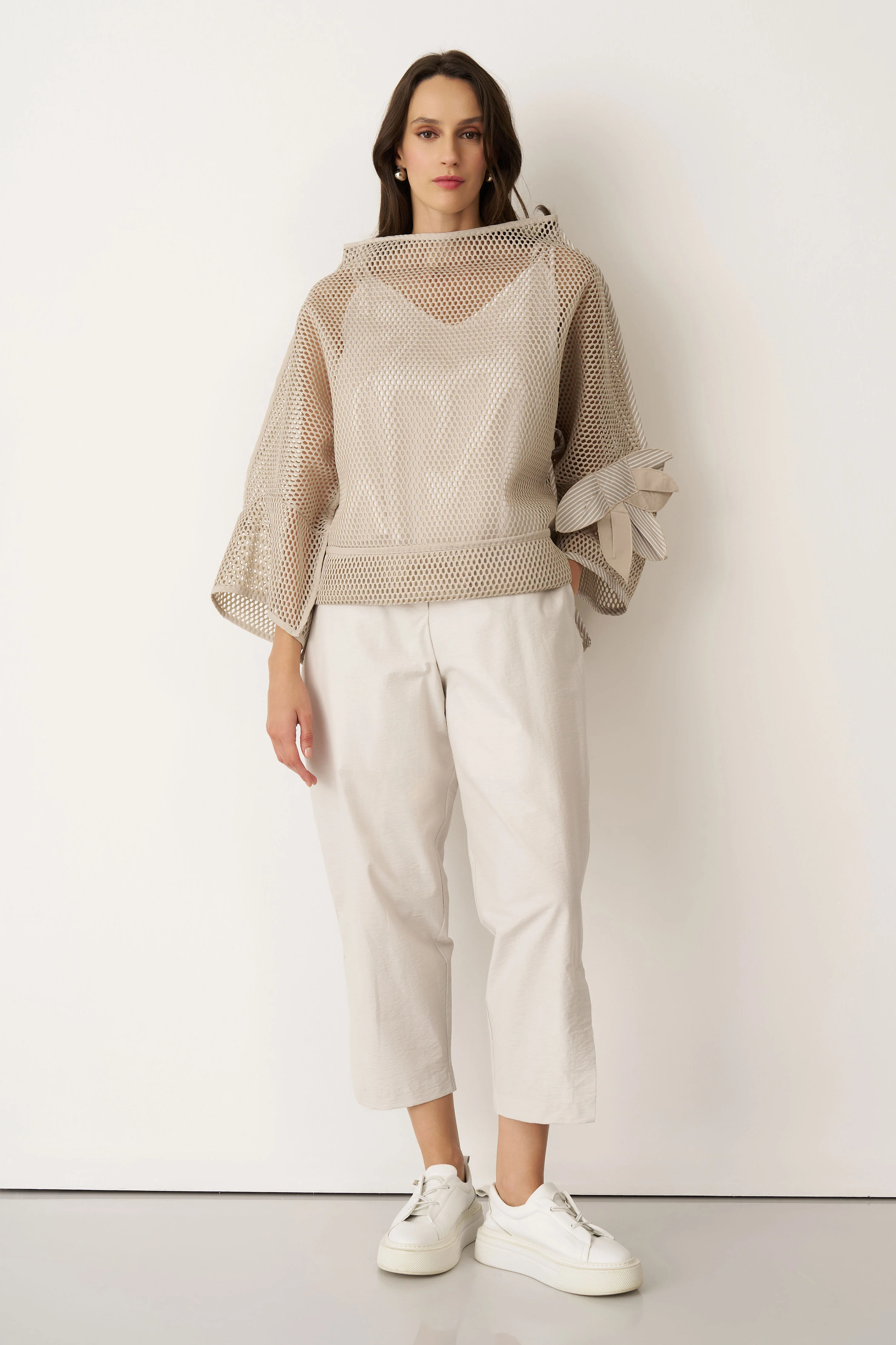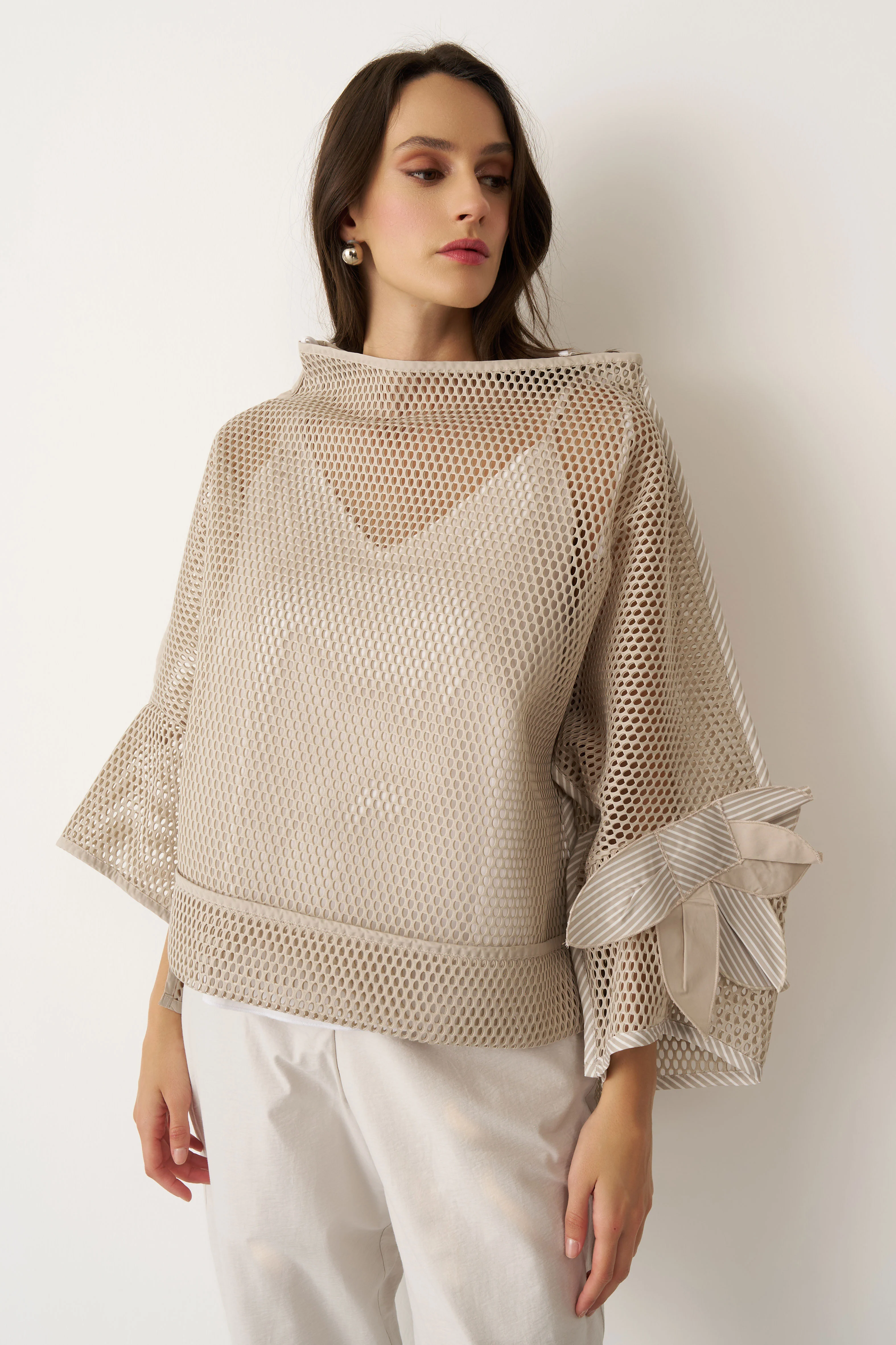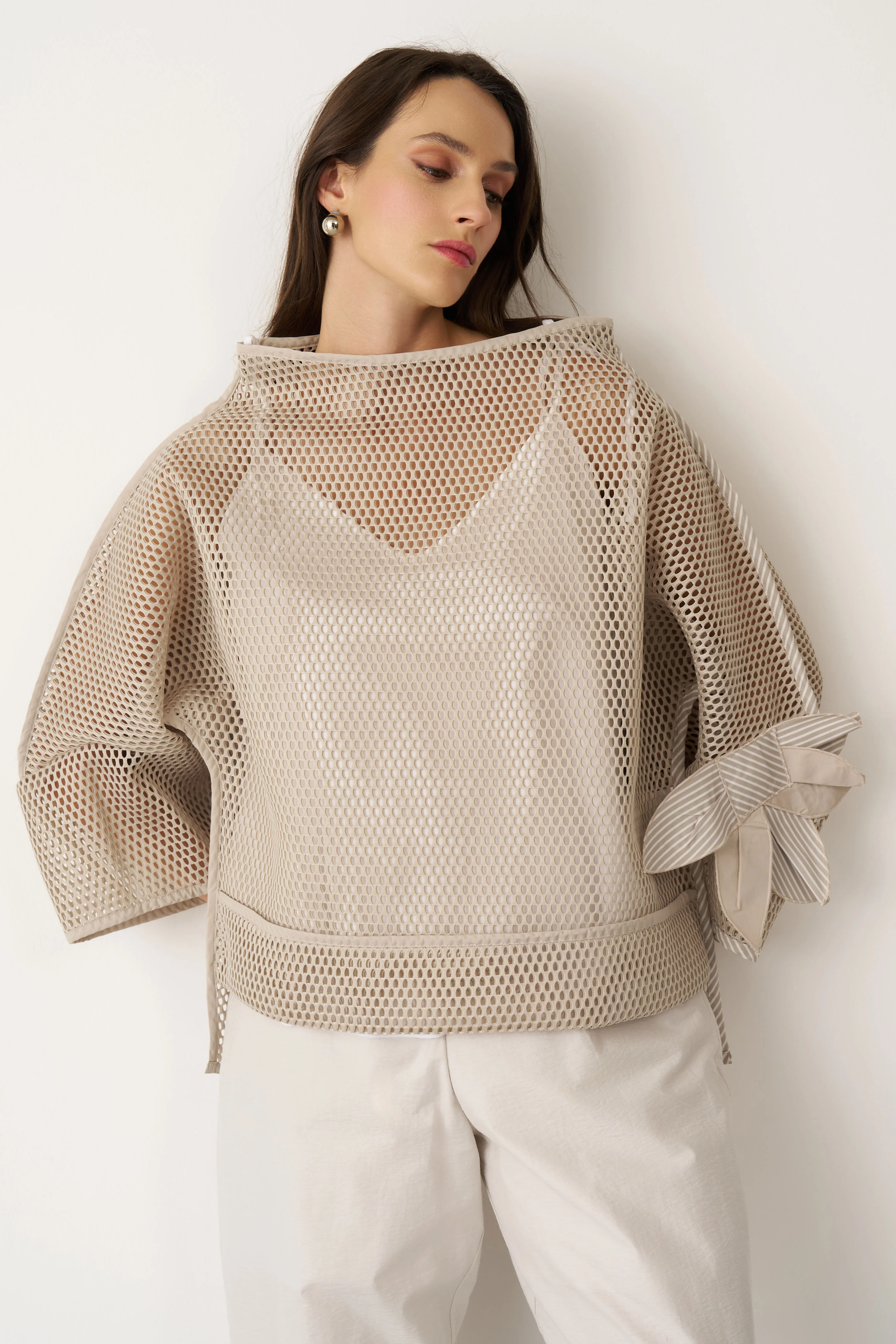 Bej File Dokulu Kolu Çiçekli Kalavria Bluz