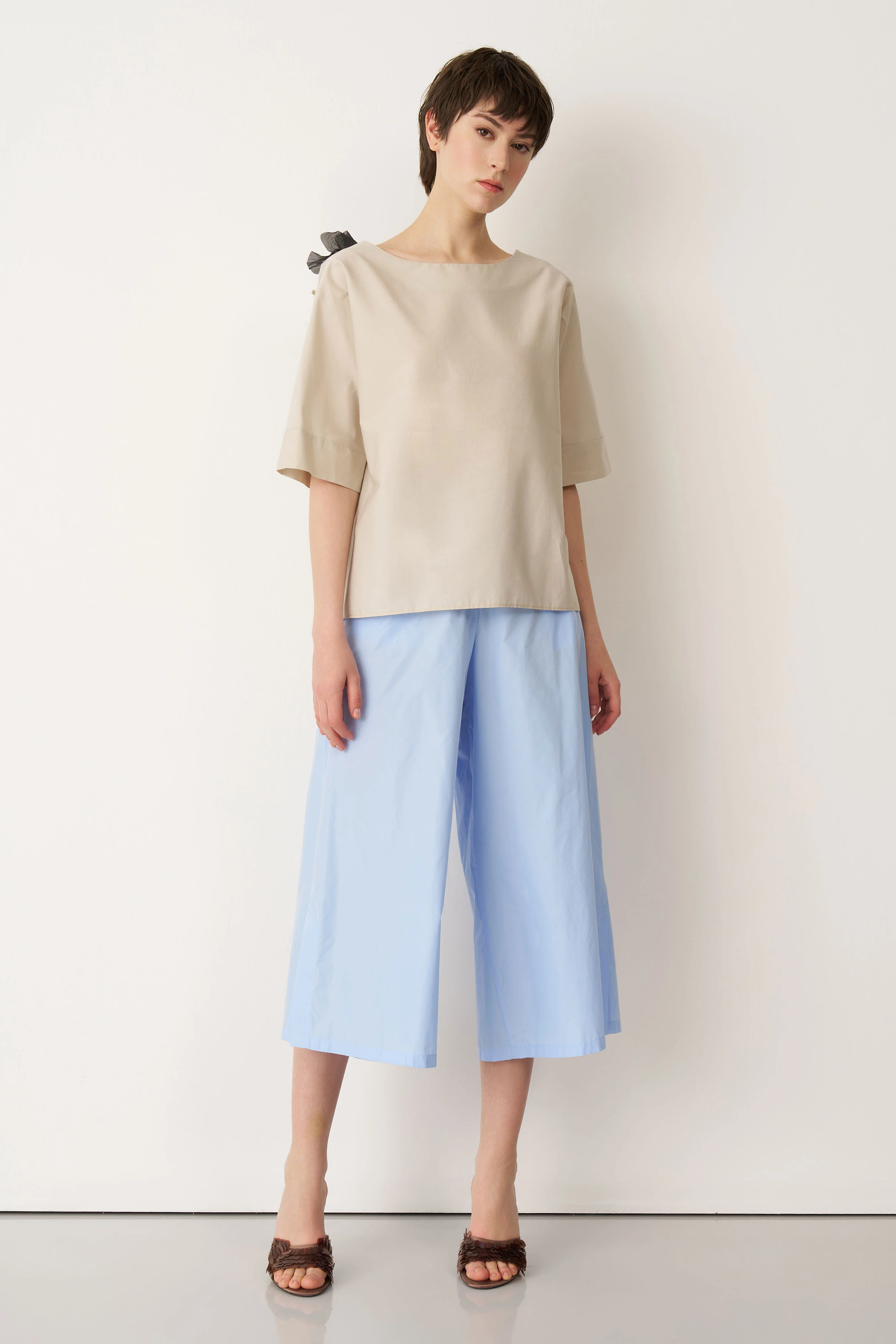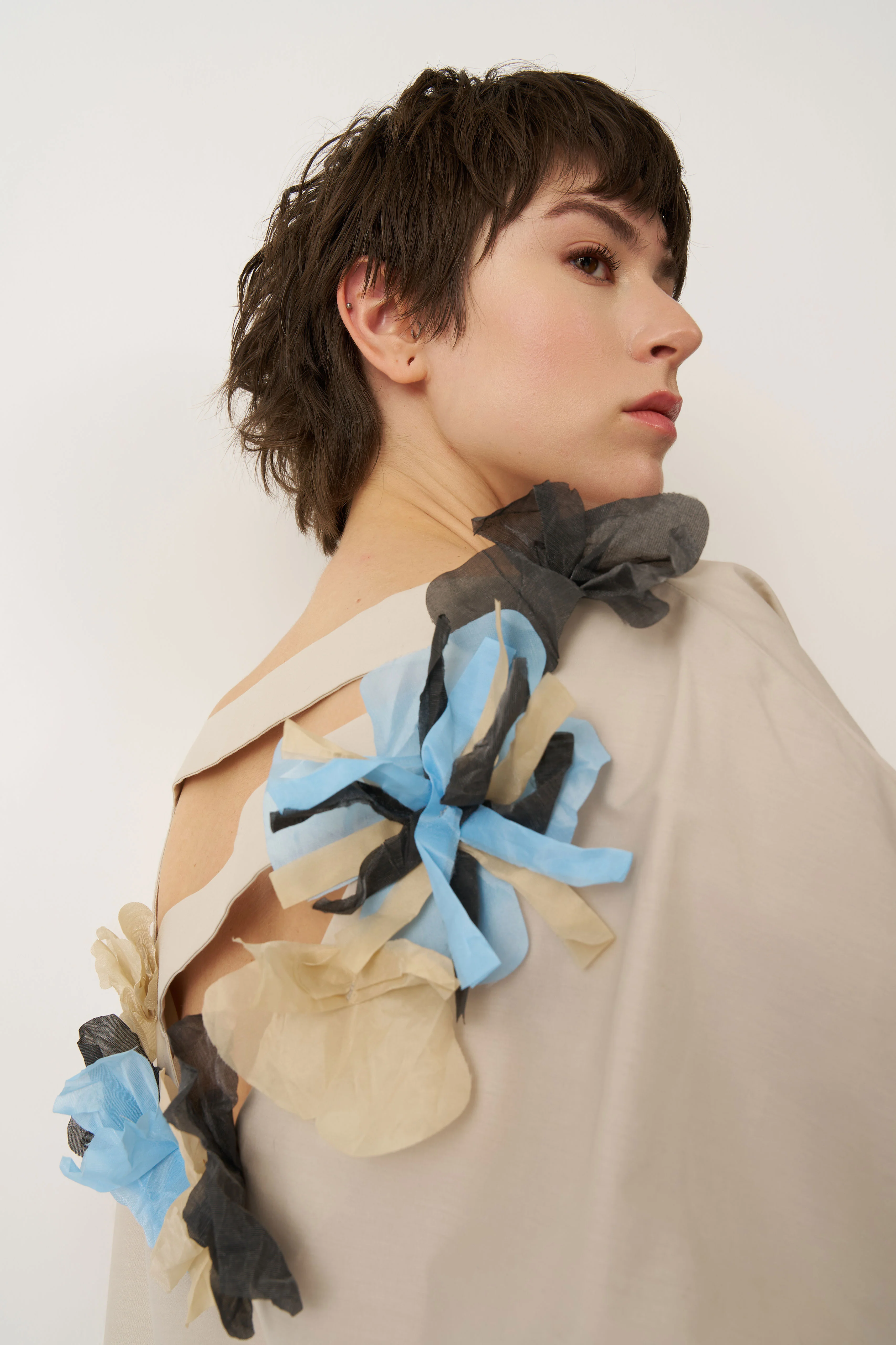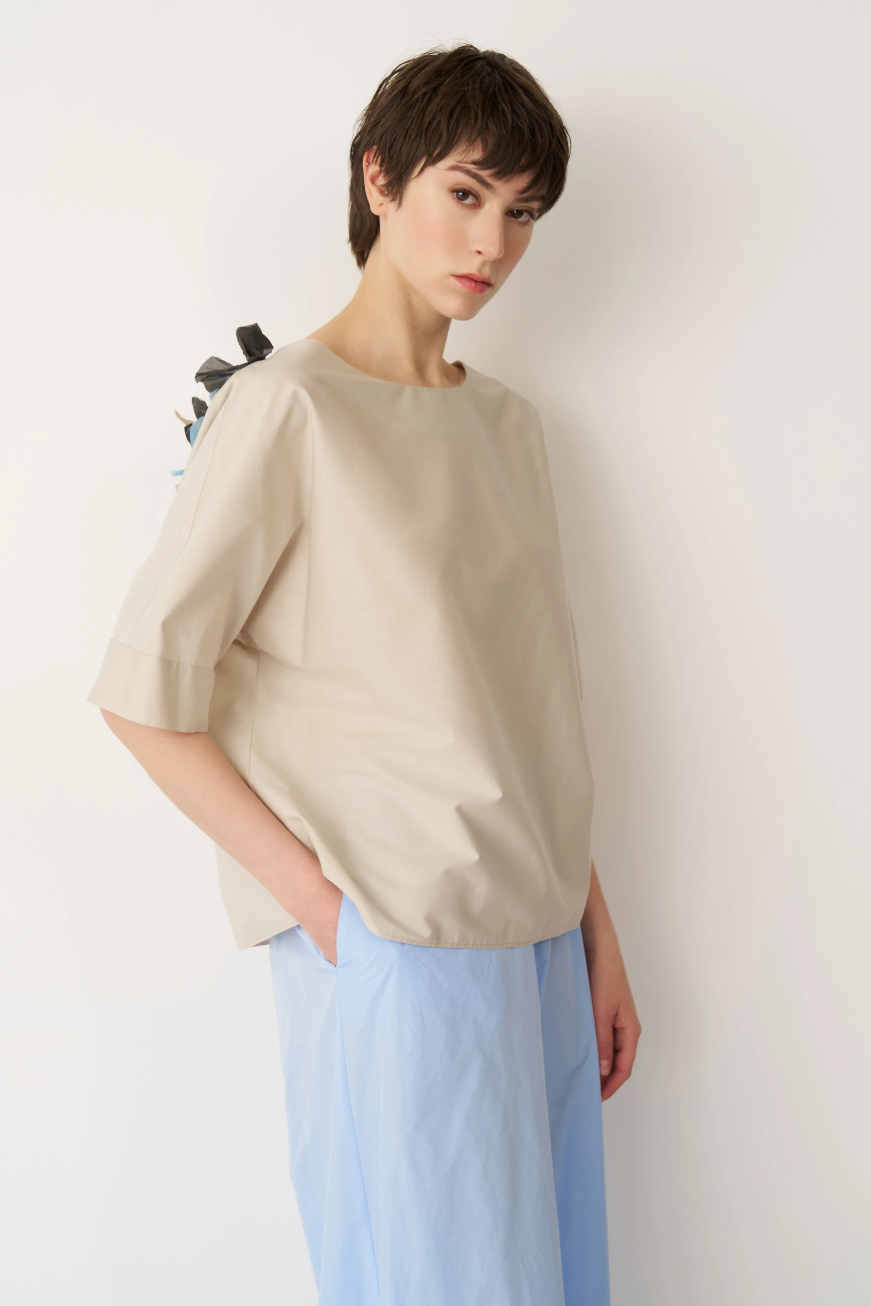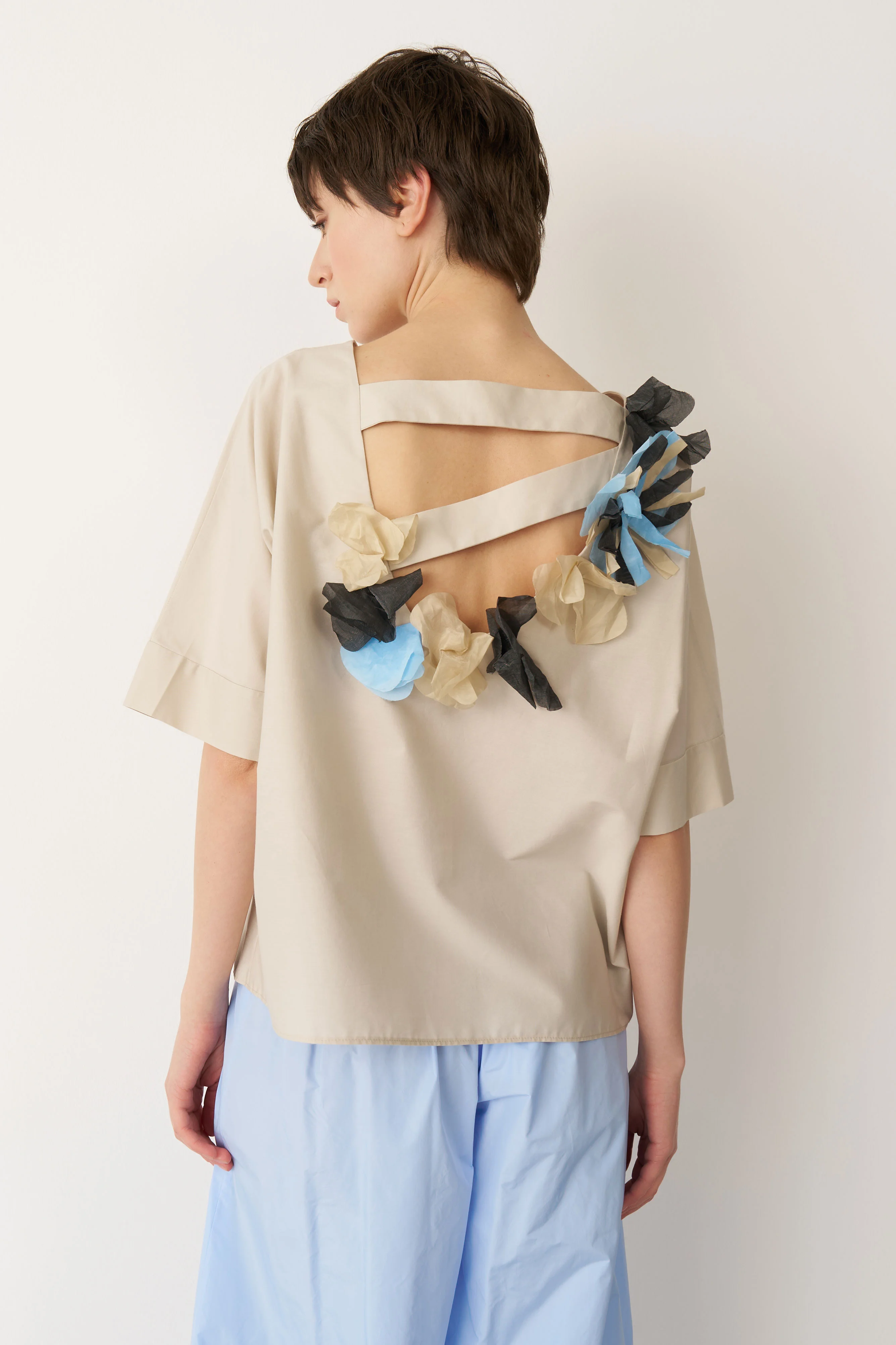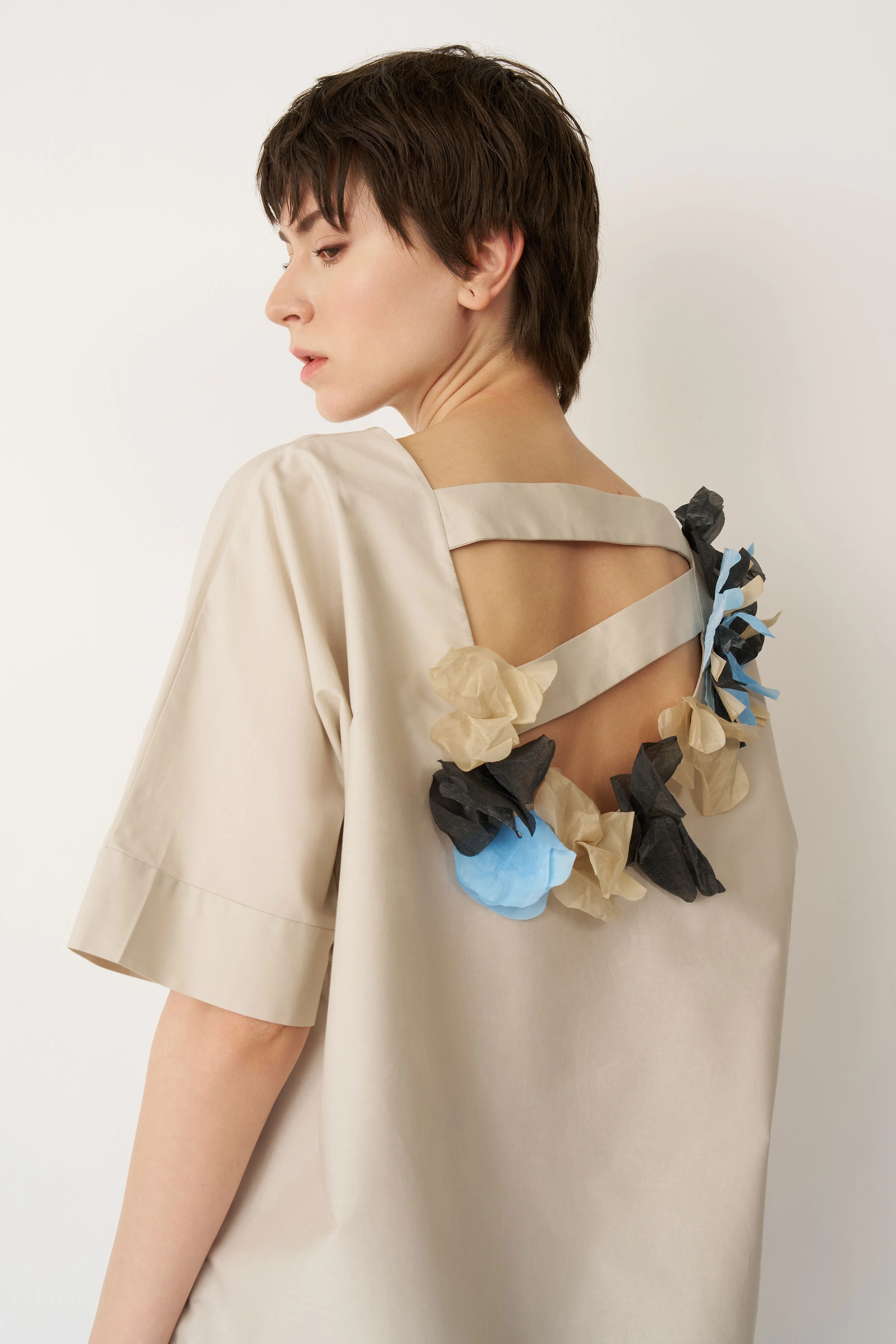 Bej Sırt Dekolteli Çiçek Detaylı Chrissi Bluz