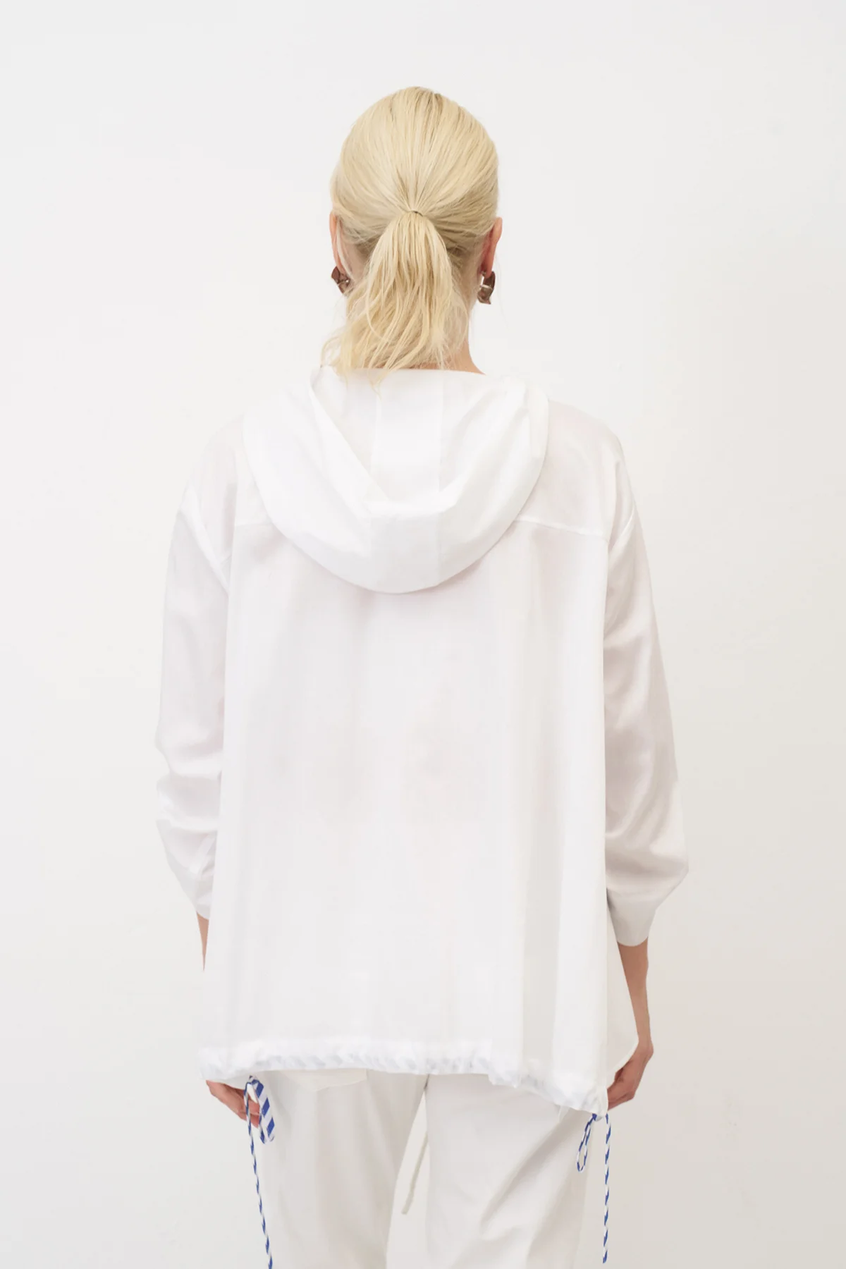 Beyaz Renkli Bantlı Poplin Kasos Bluz