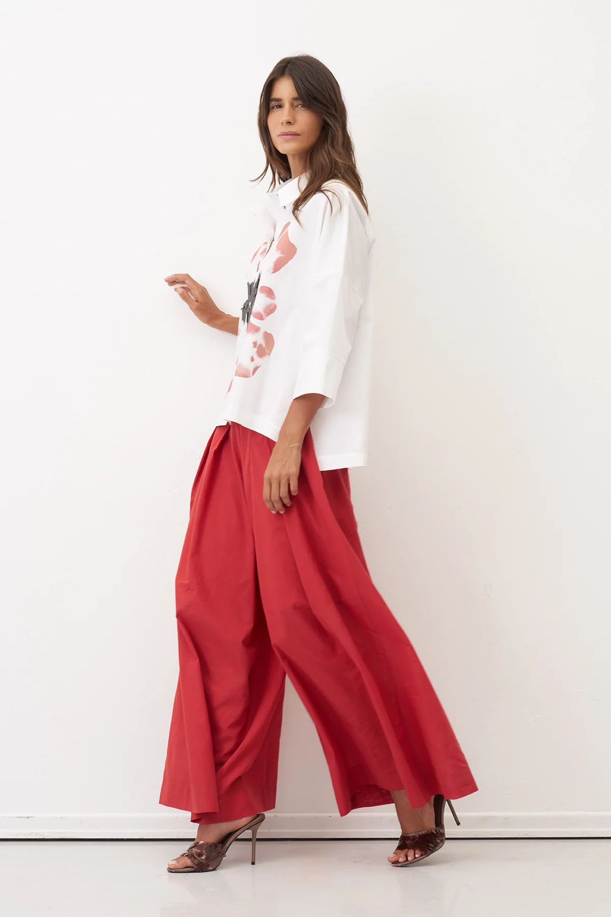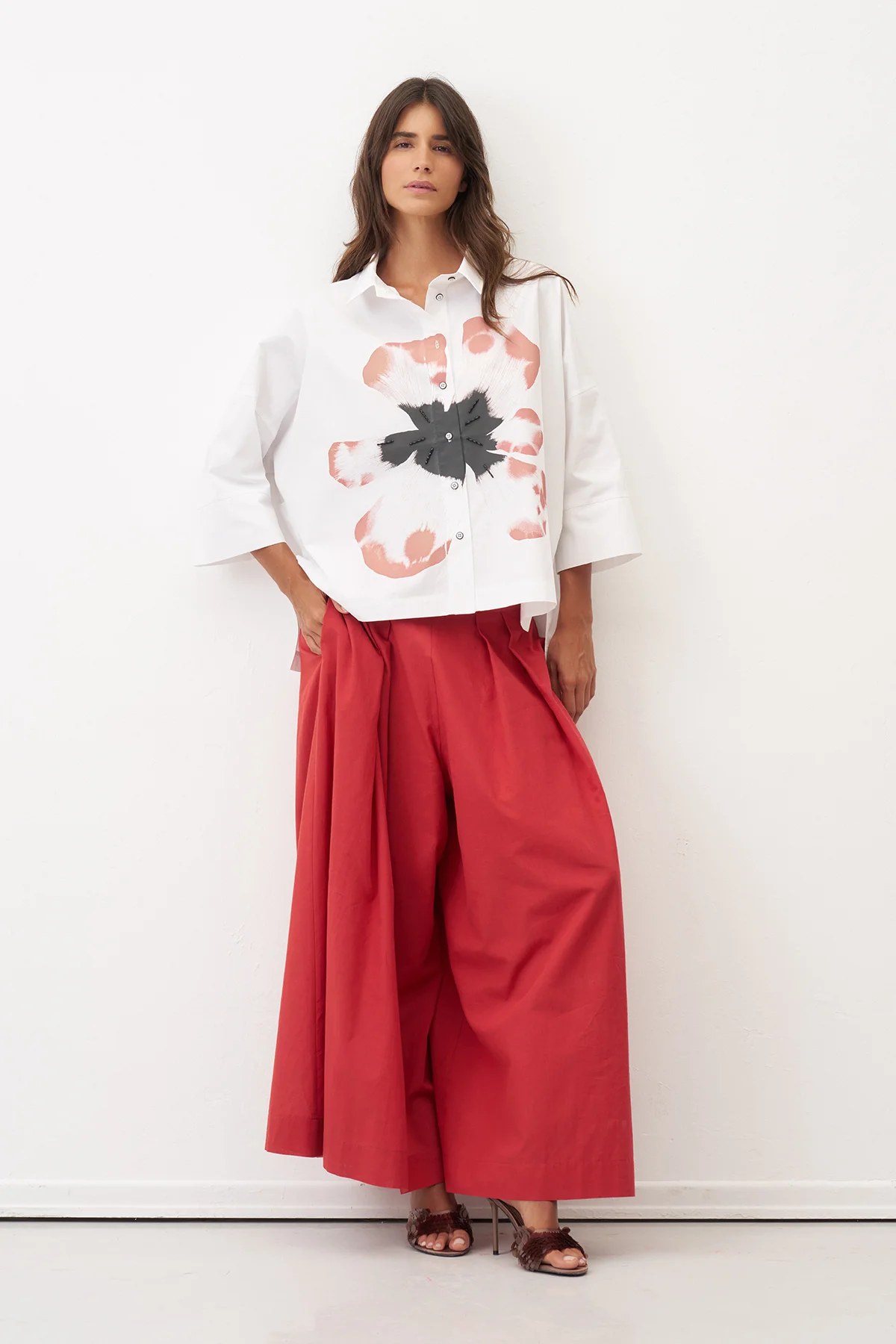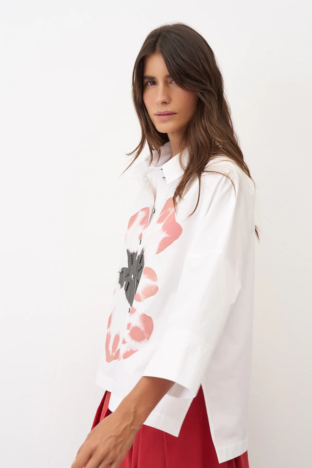 Beyaz Önü Büyük Çiçek Baskılı Gavdos Gömlek