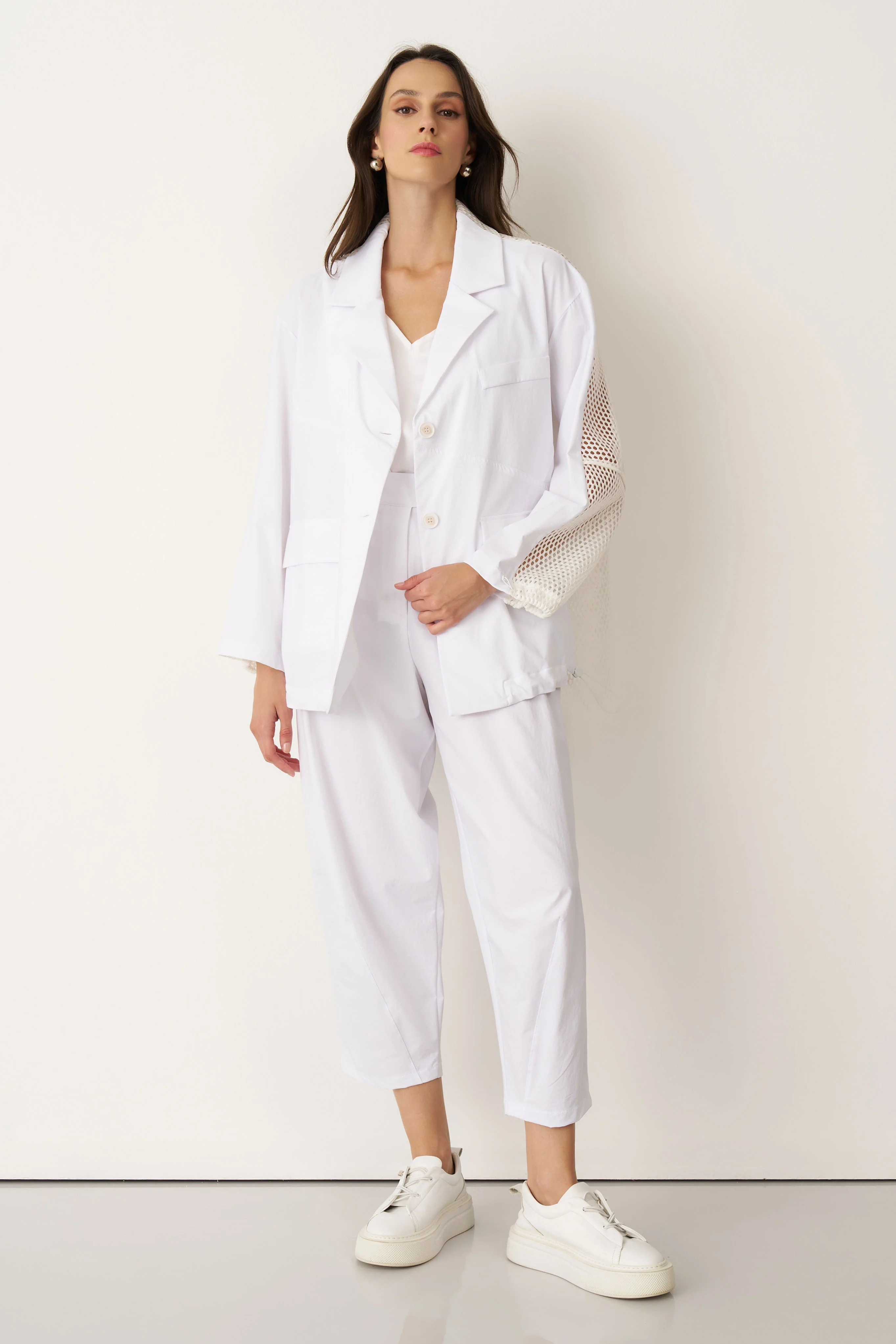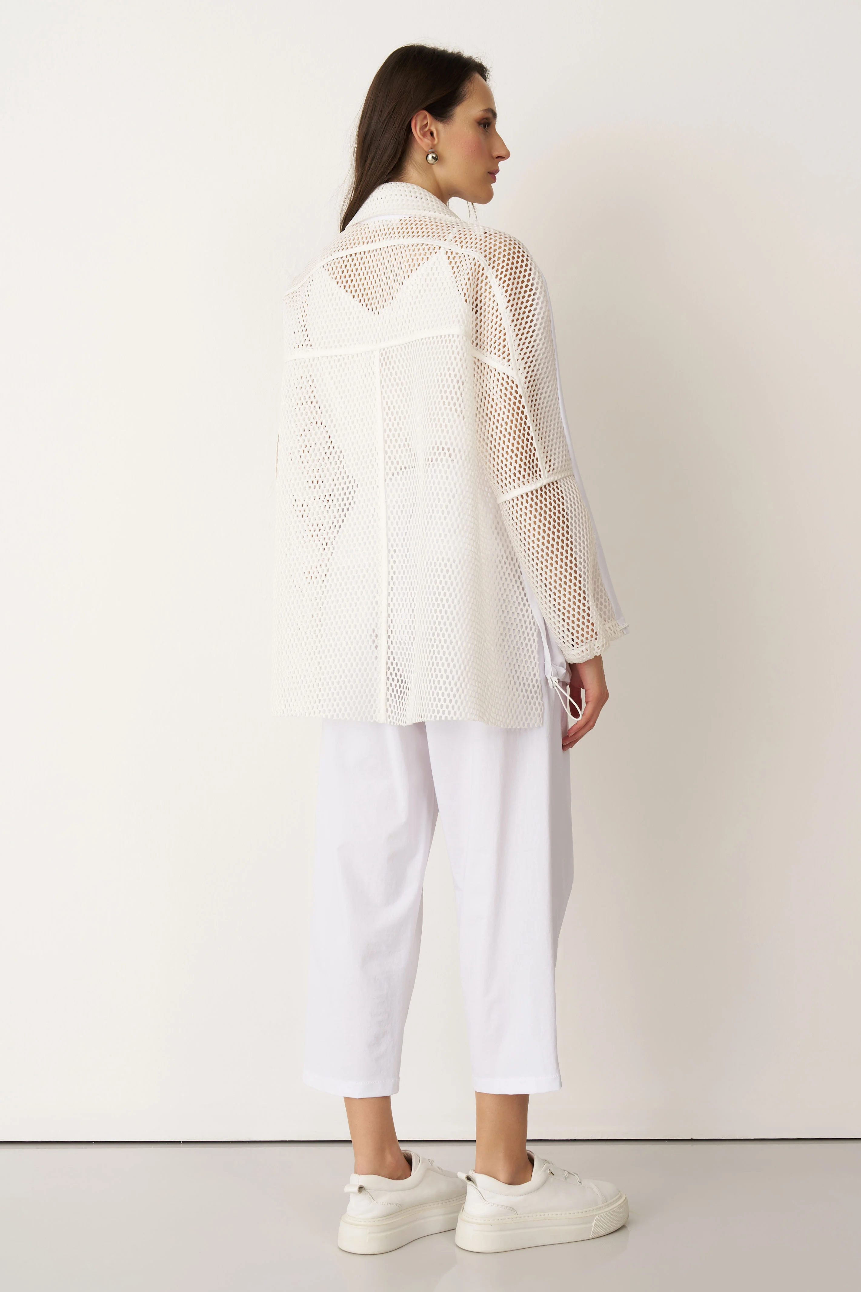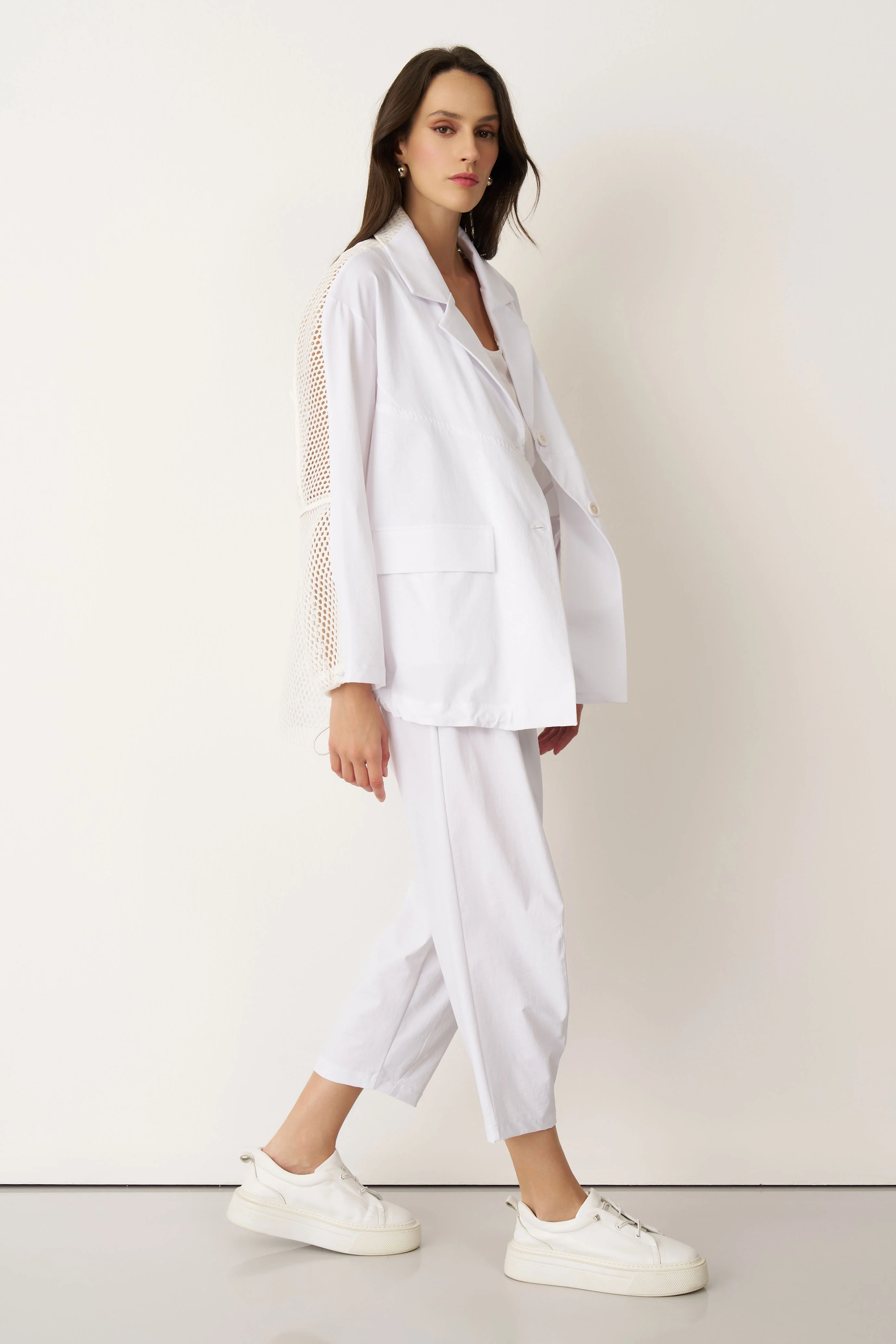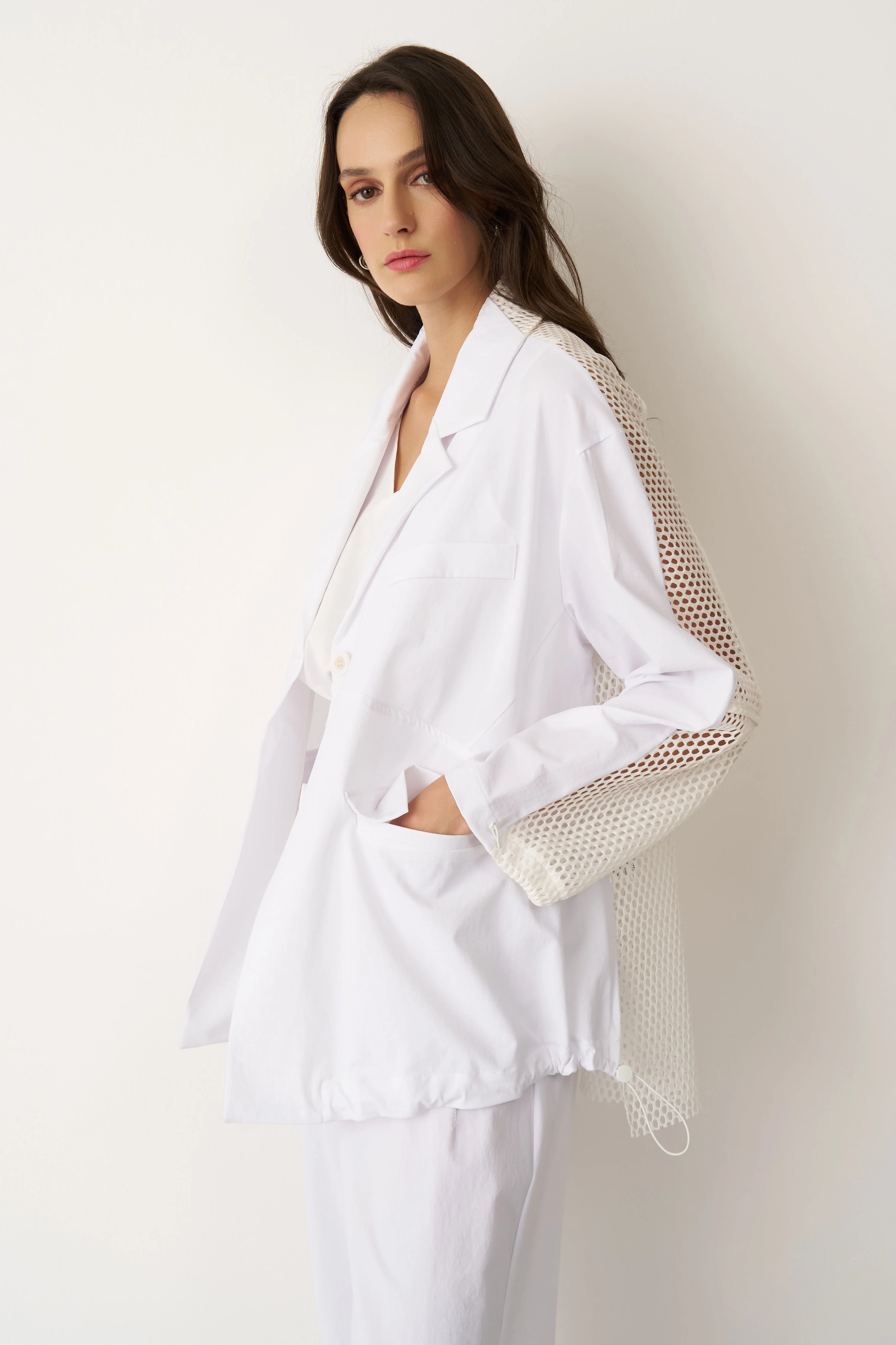Beyaz Sırtı Fileli Önü Kumaş Blazer Gyaros Ceket