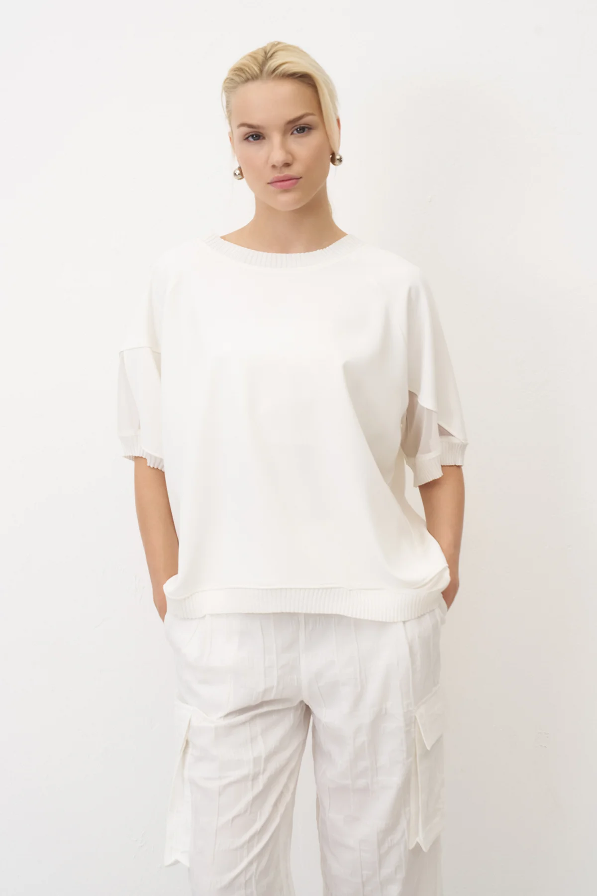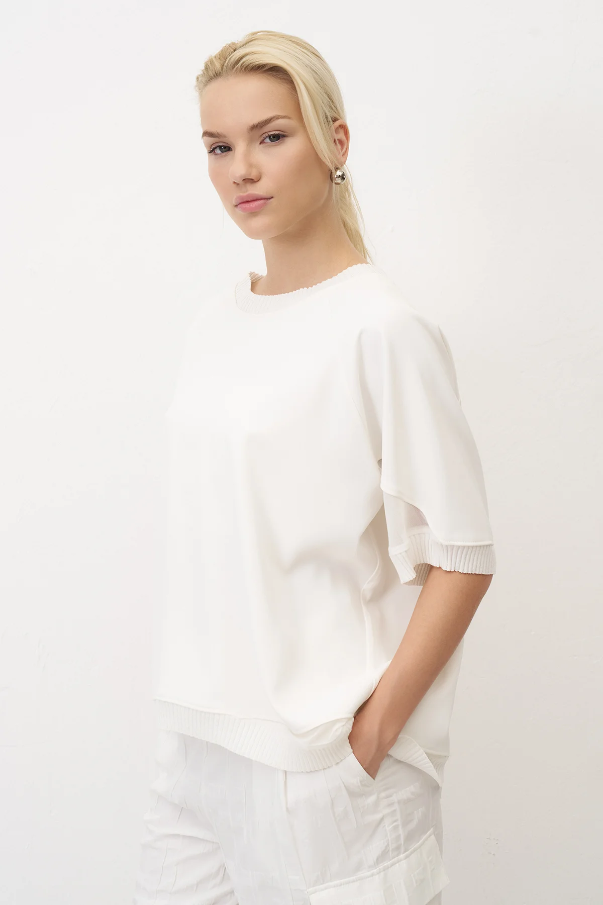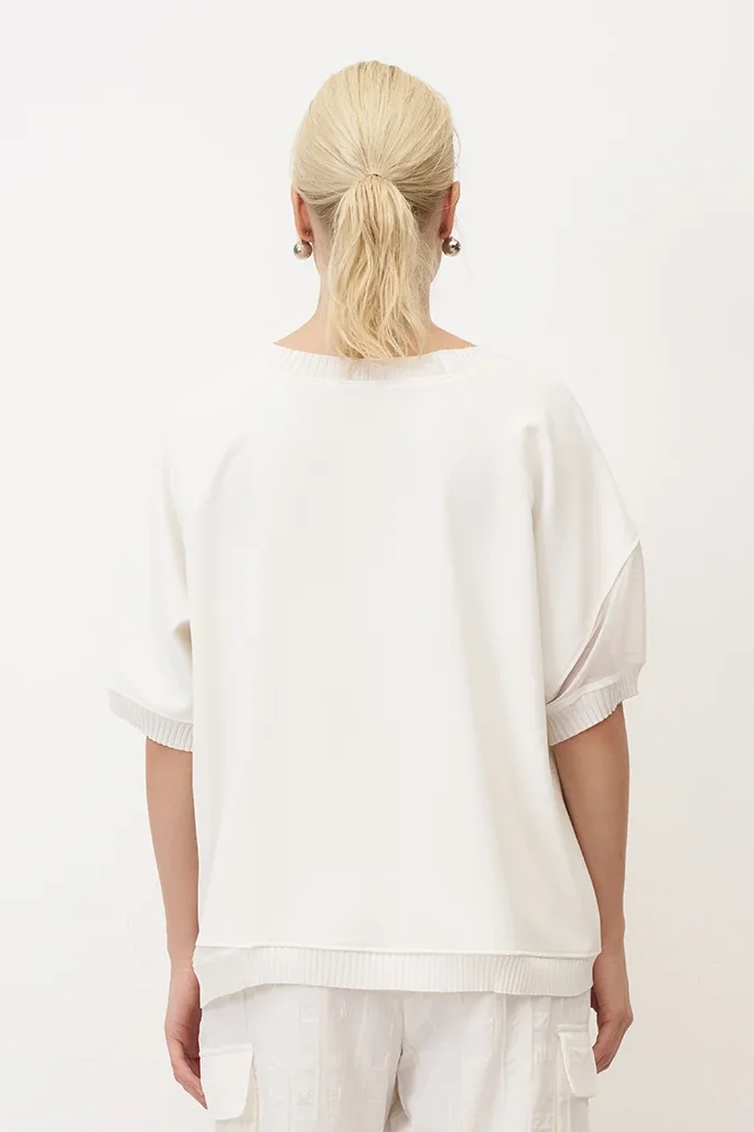 Beyaz Triko Bantlı Rahat Kesim Sifnos Bluz