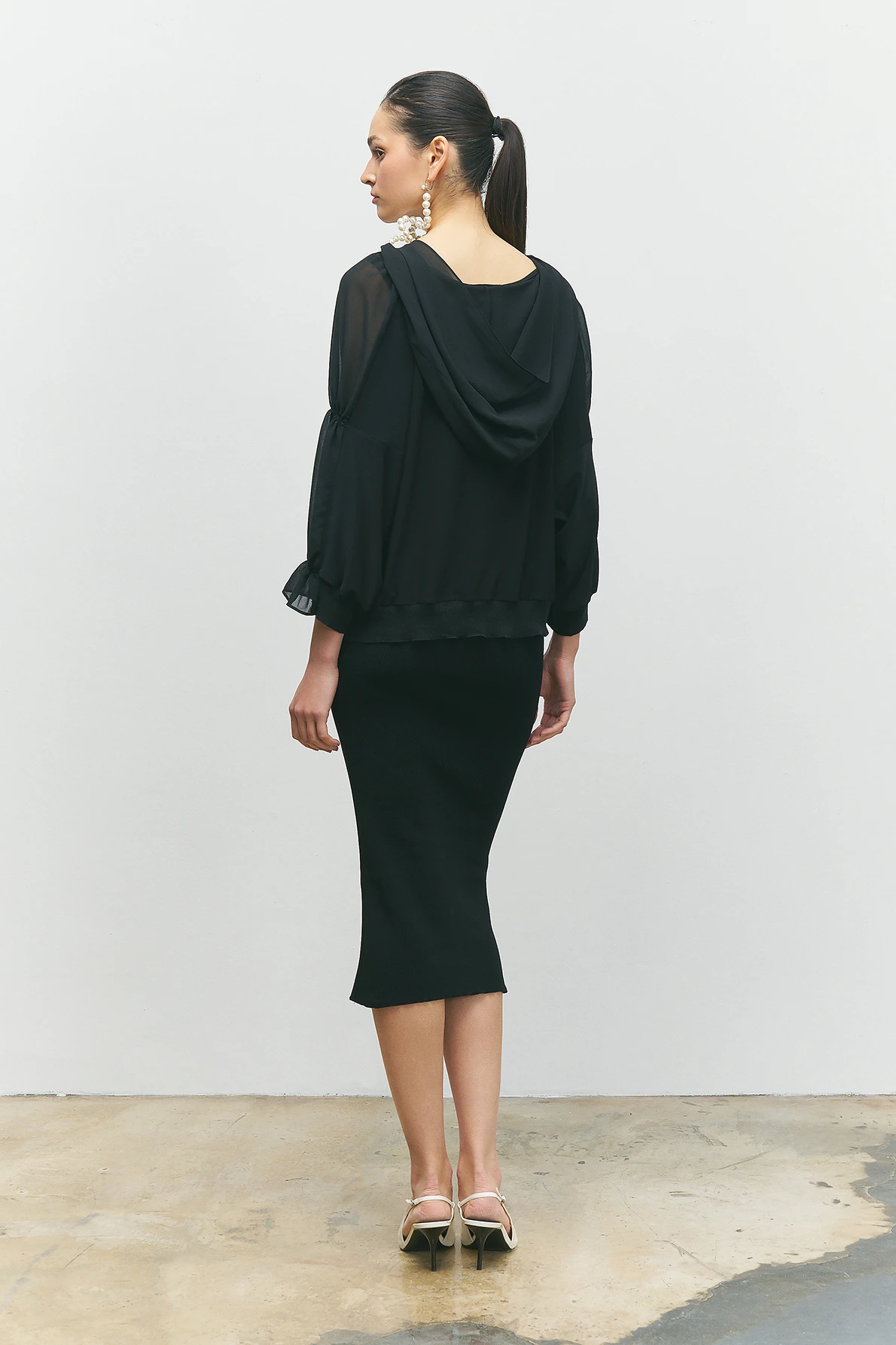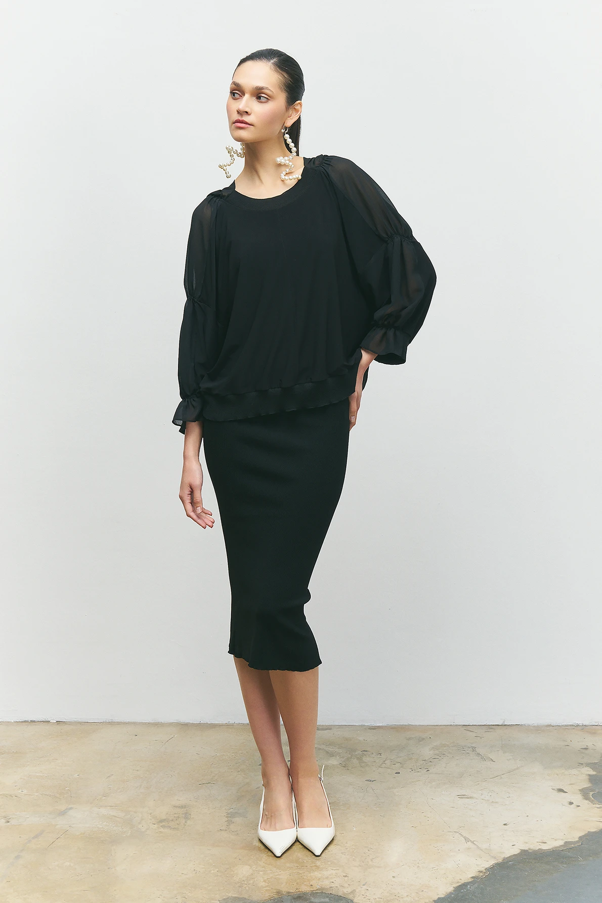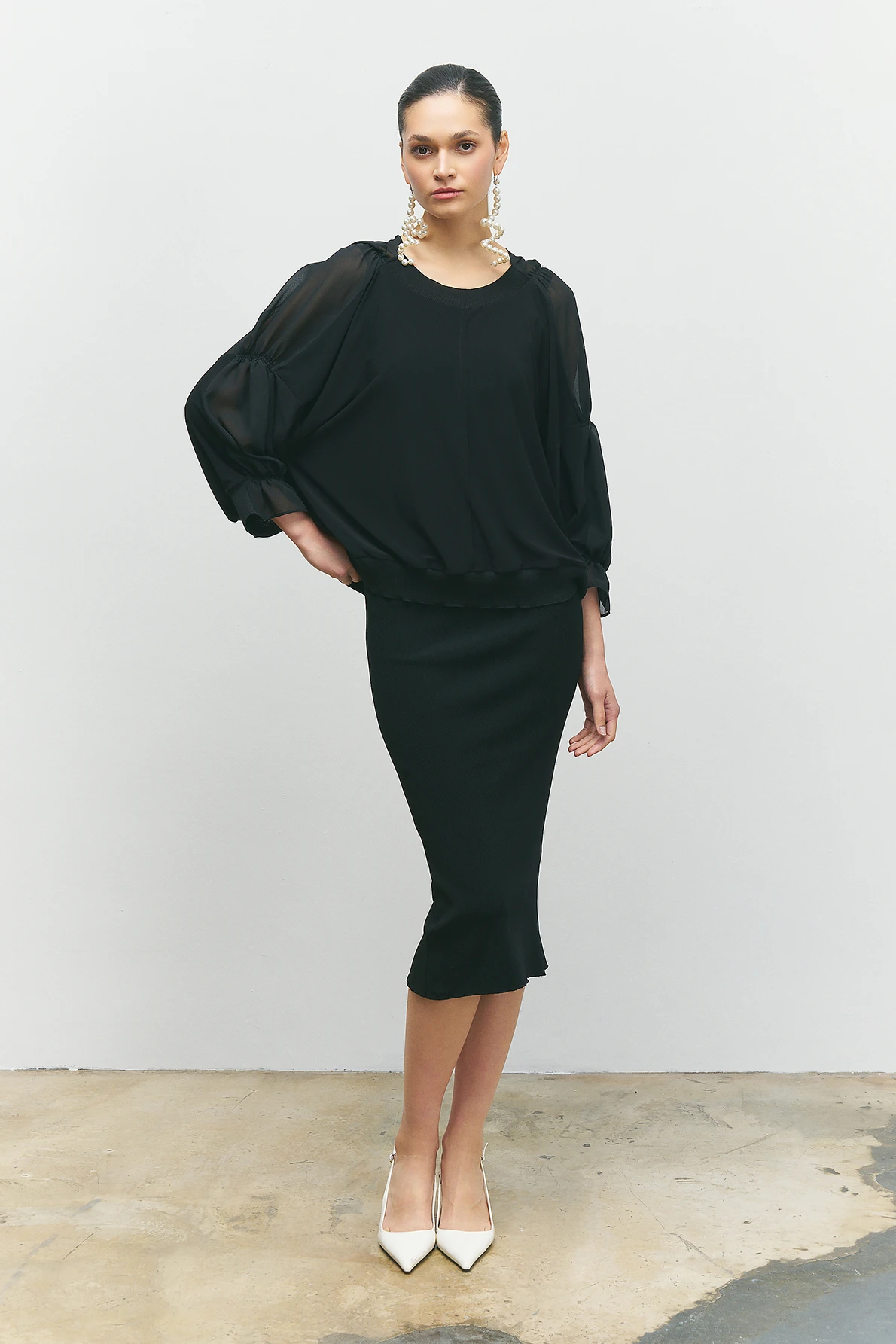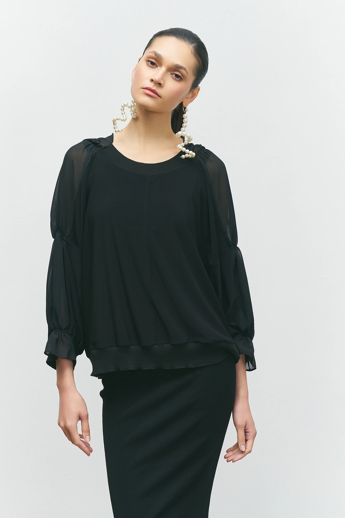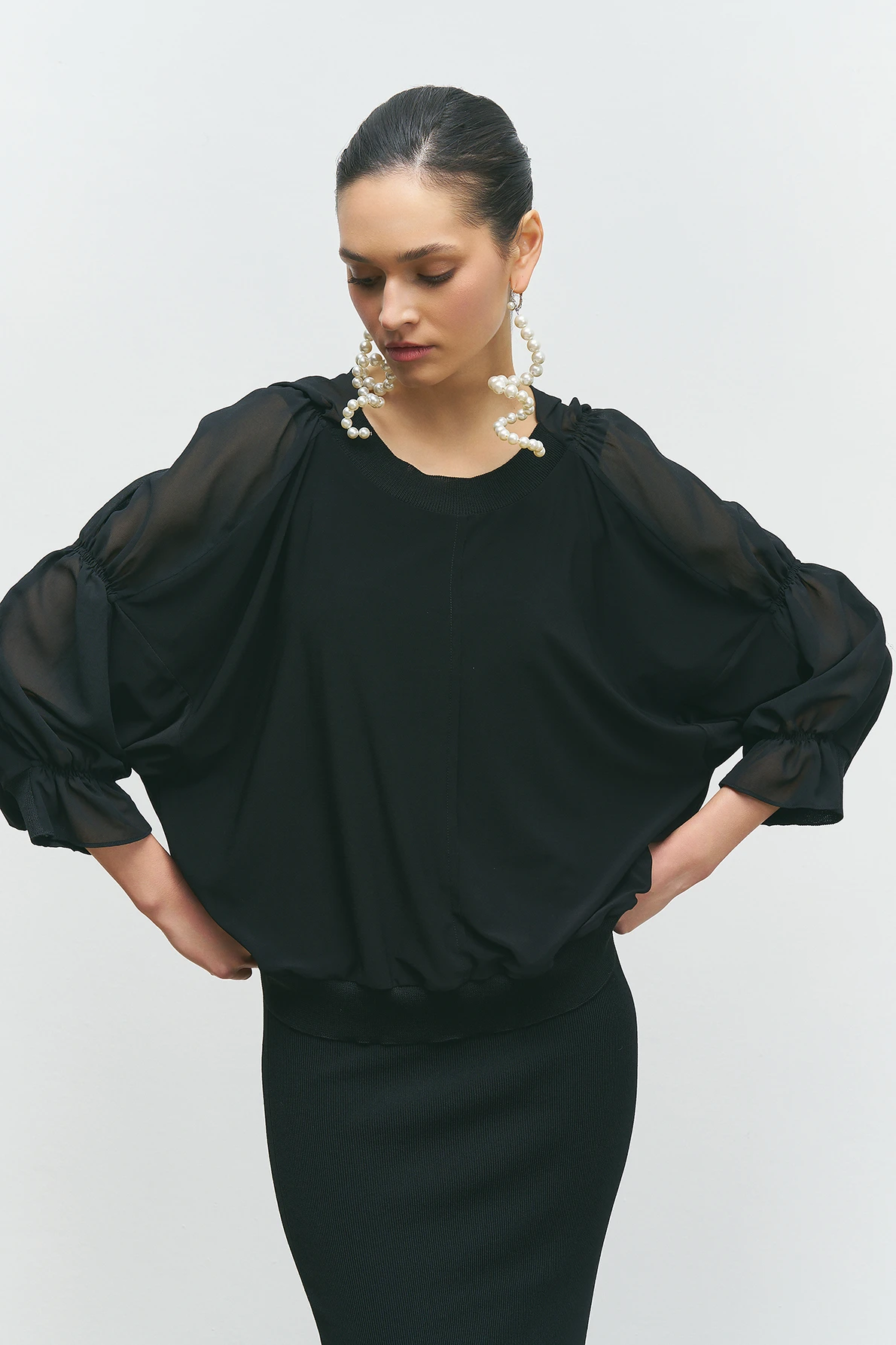 Kolları Büzgülü Bluz - Siyah