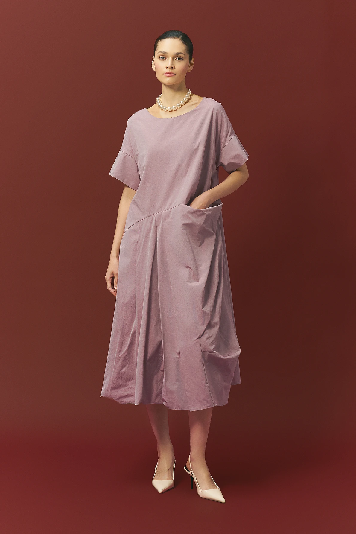 Cepli Tafta Elbise - Kırmızı