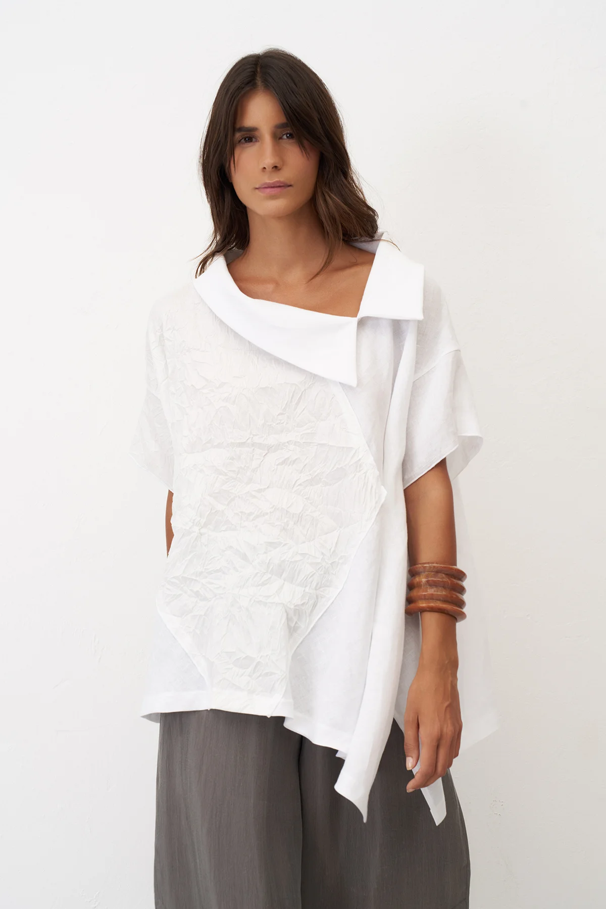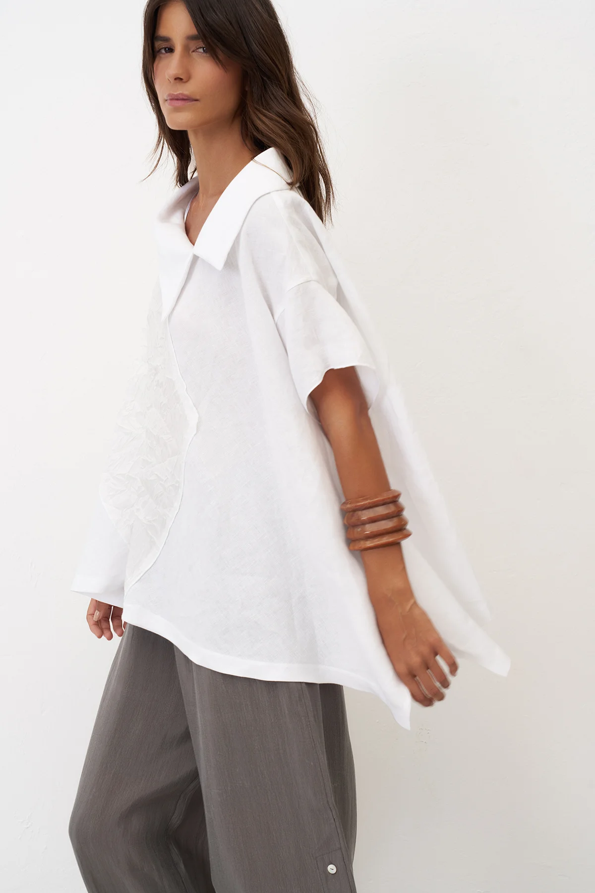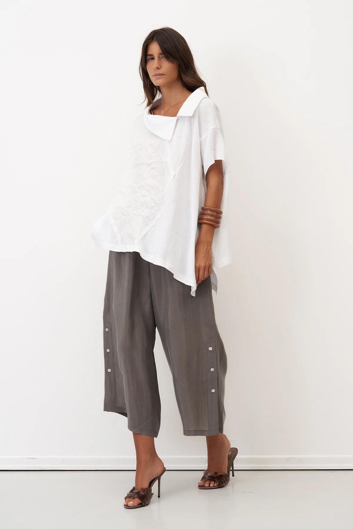 Gri Yanları Düğmeli Geniş Kesim Mykonos Pantolon
