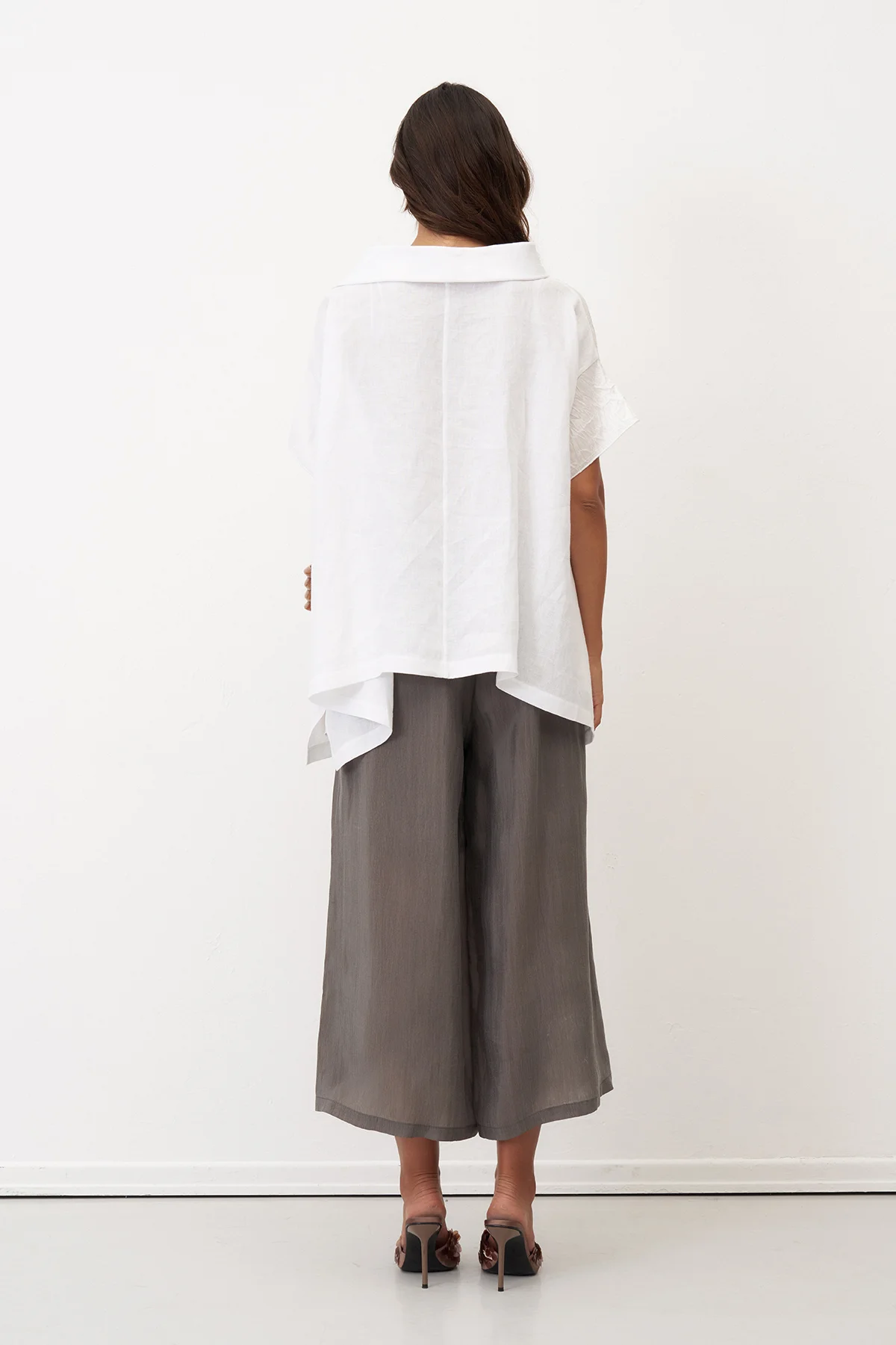 Gri Yanları Düğmeli Geniş Kesim Kısa Paça Mykonos Pantolon