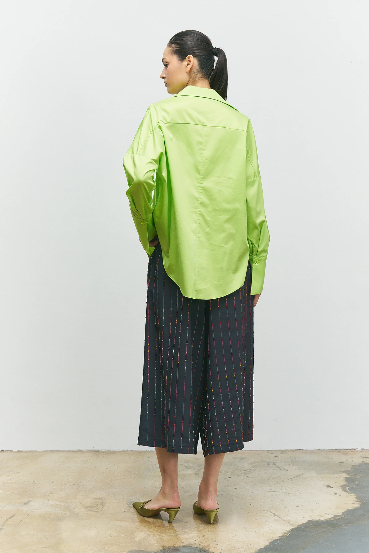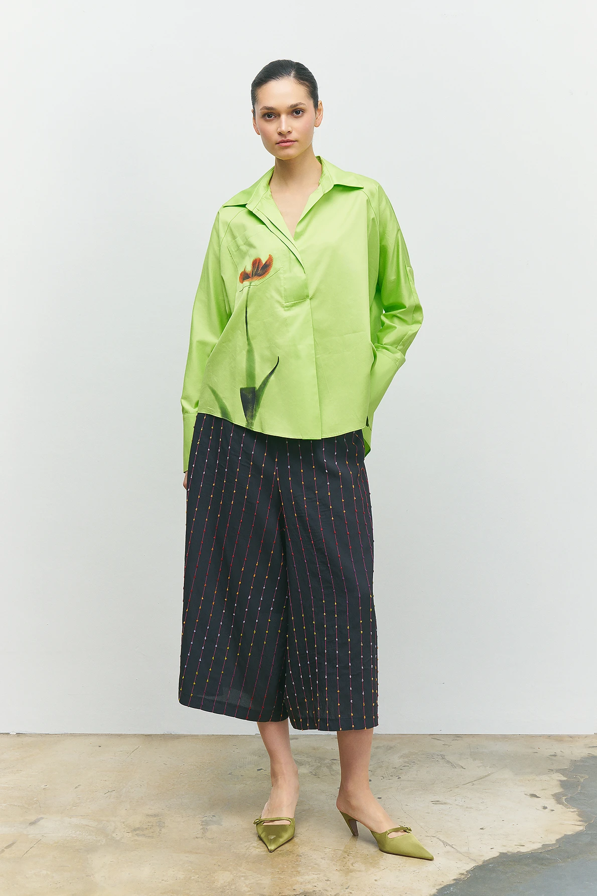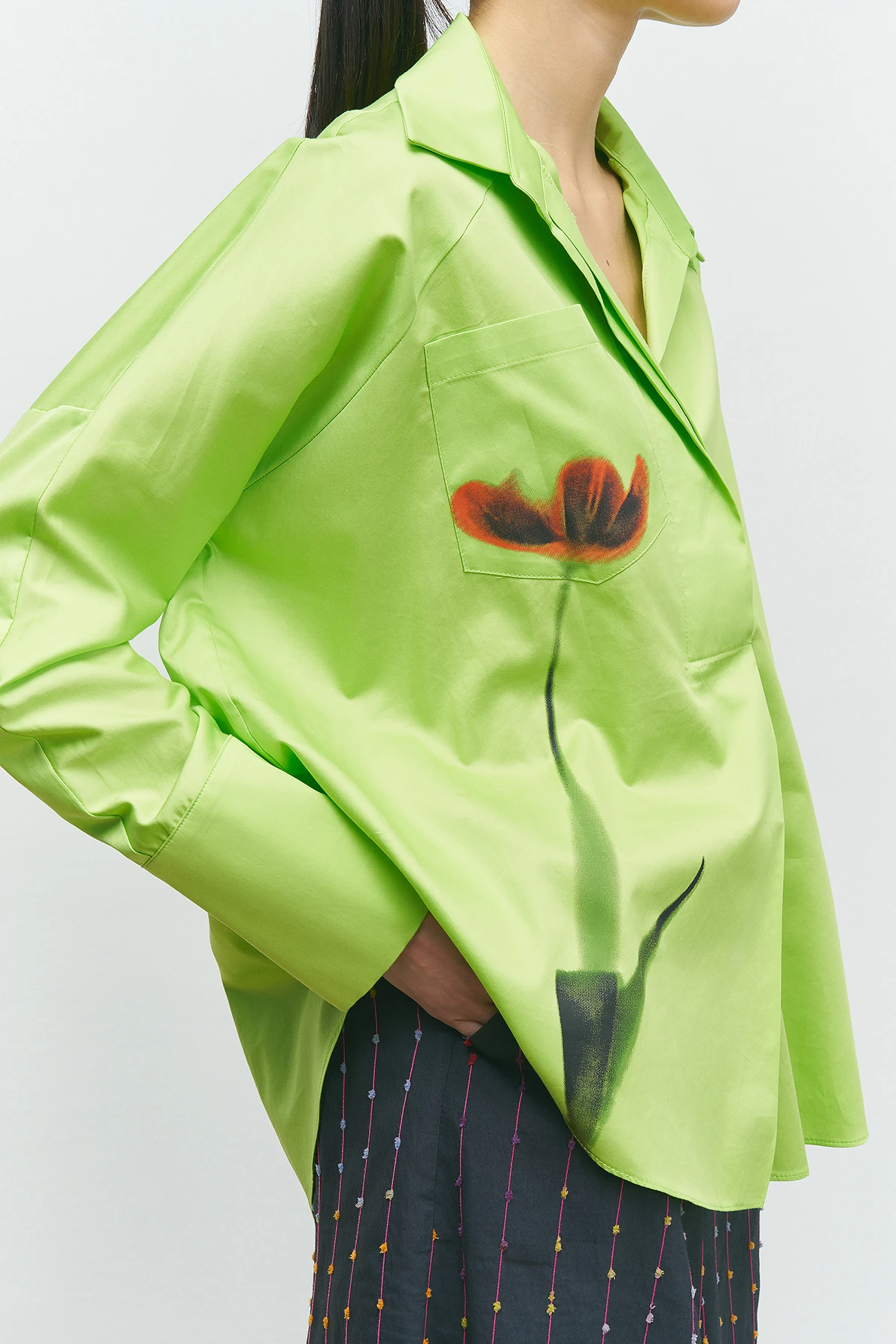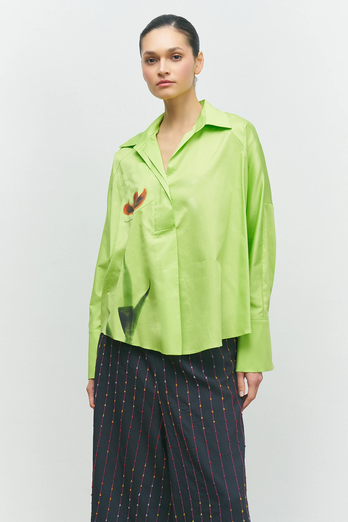 Çiçek Baskılı Gömlek - Fıstık Yeşili