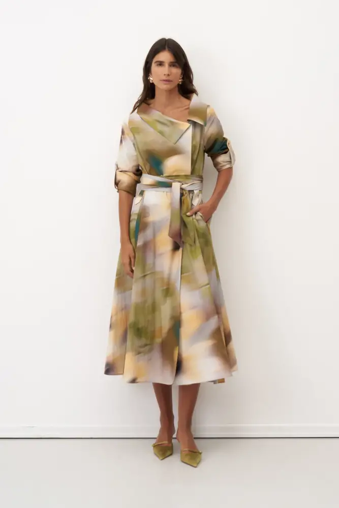 Desenli Asimetrik Yaka Desenli Ikaria Elbise