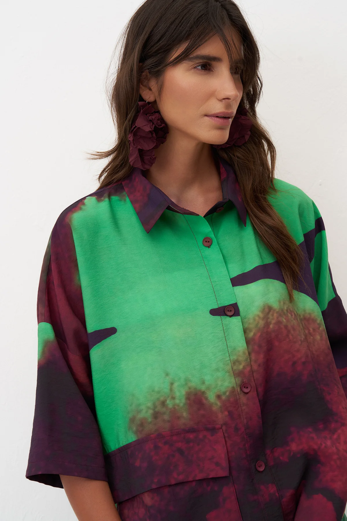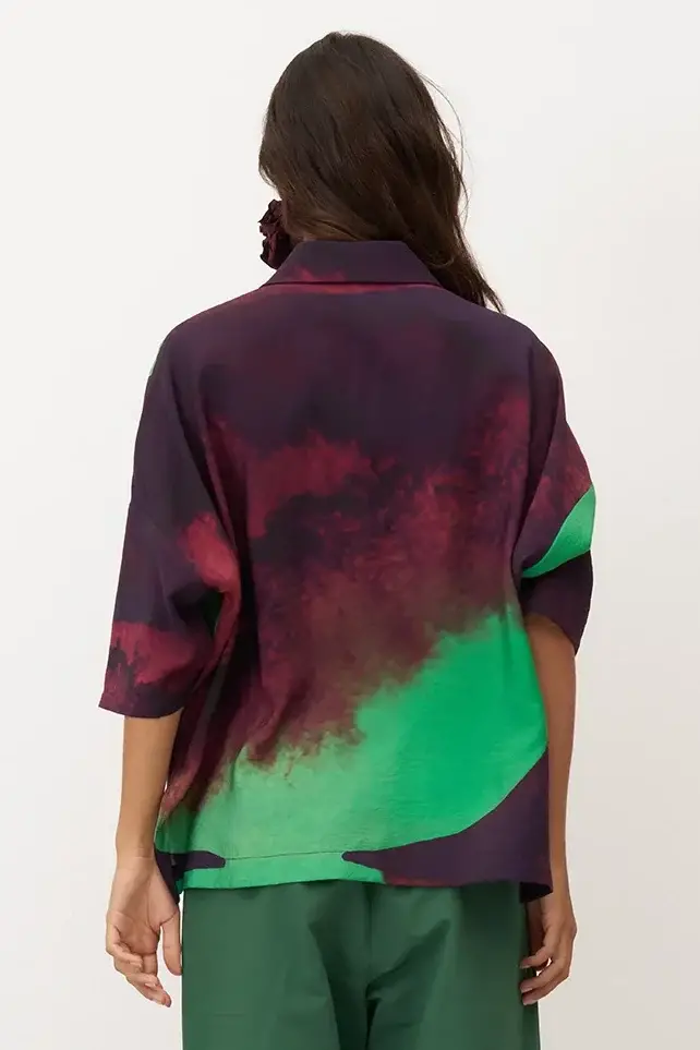 Desenli Baskılı Önü Düğmeli Santorini Gömlek
