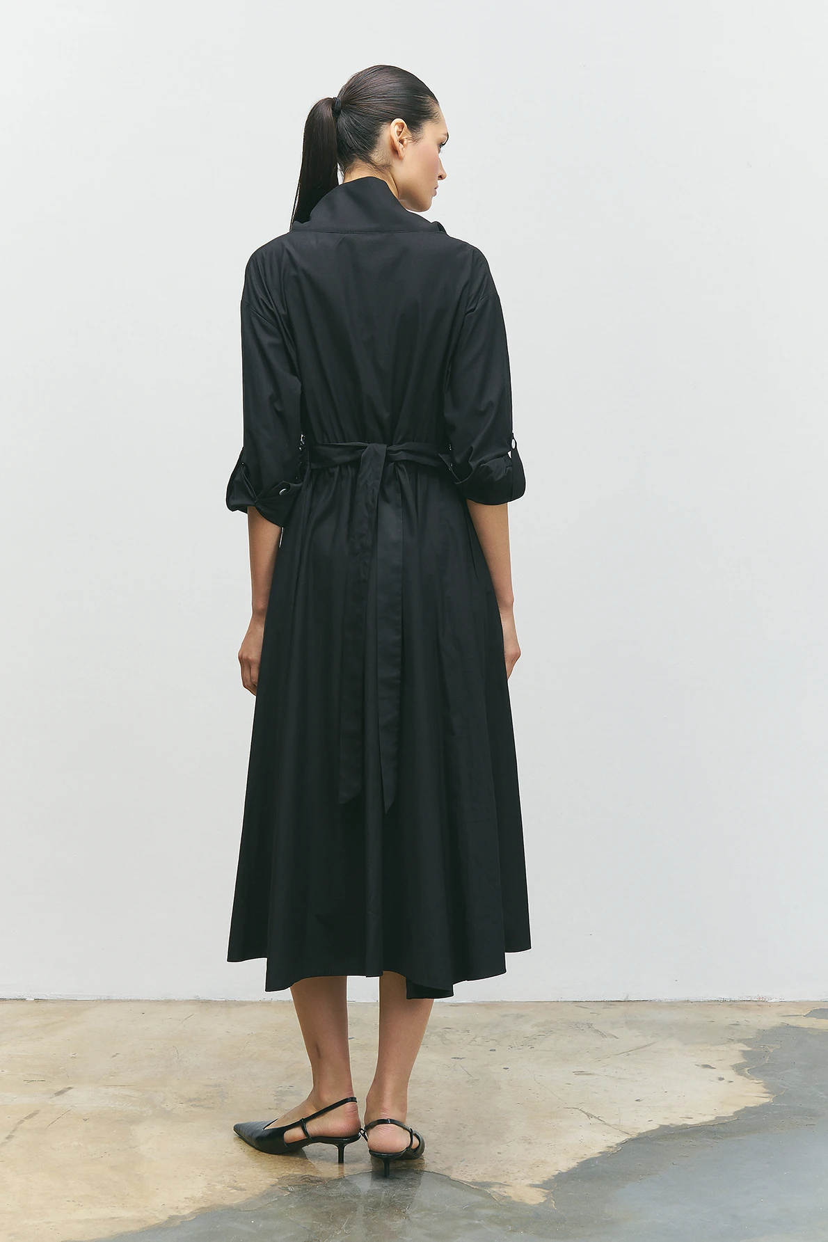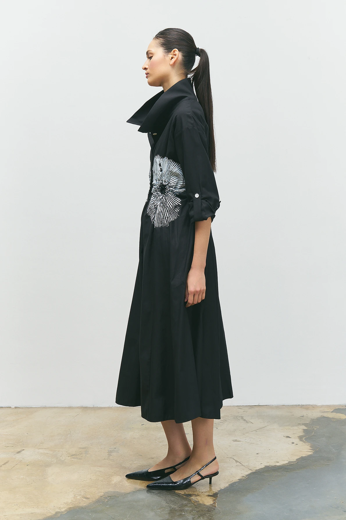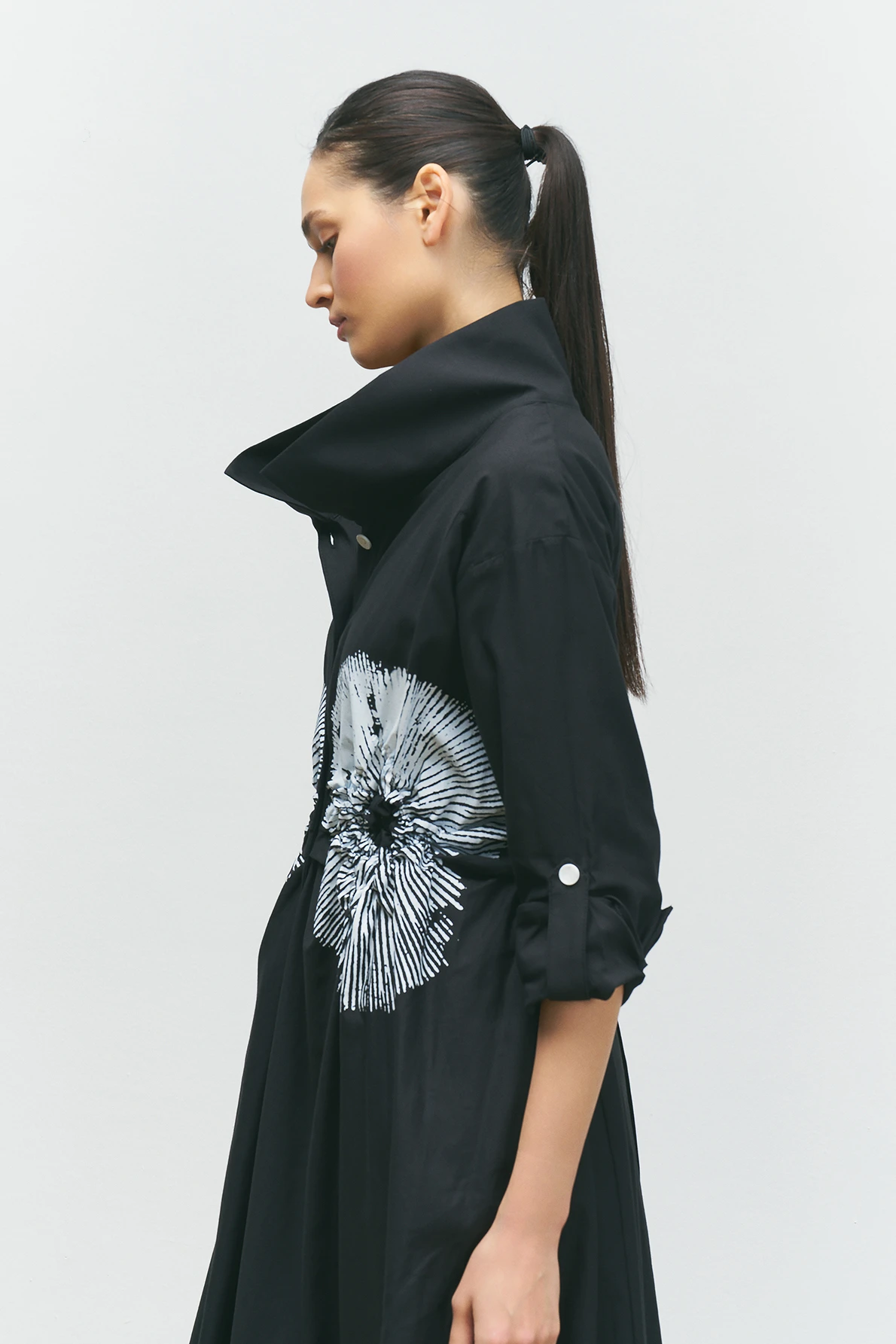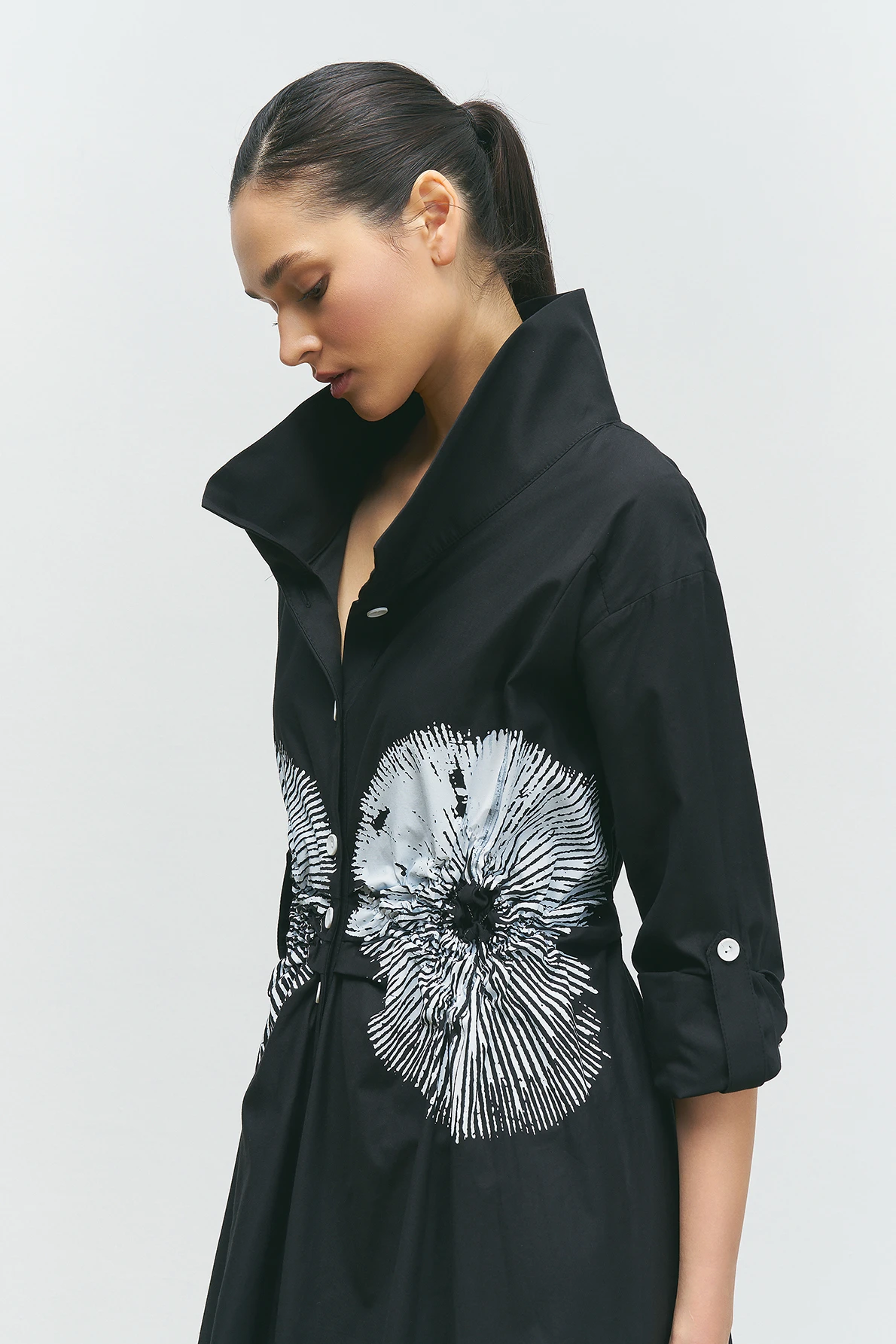 Önü Düğmeli Baskılı Elbise - Siyah