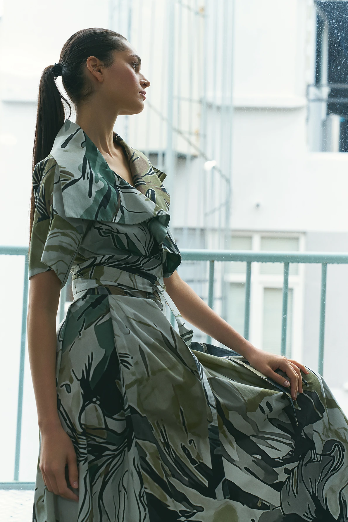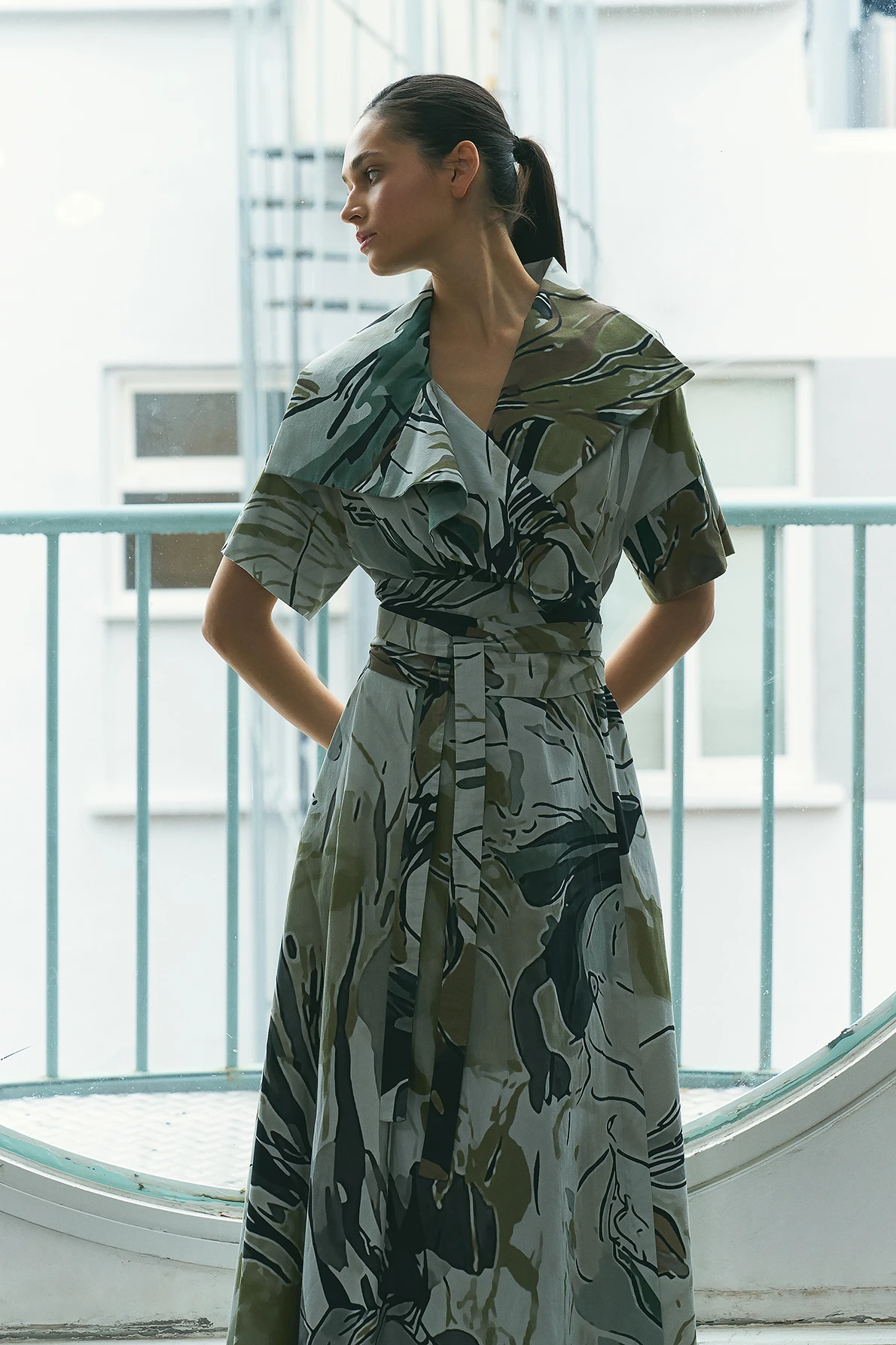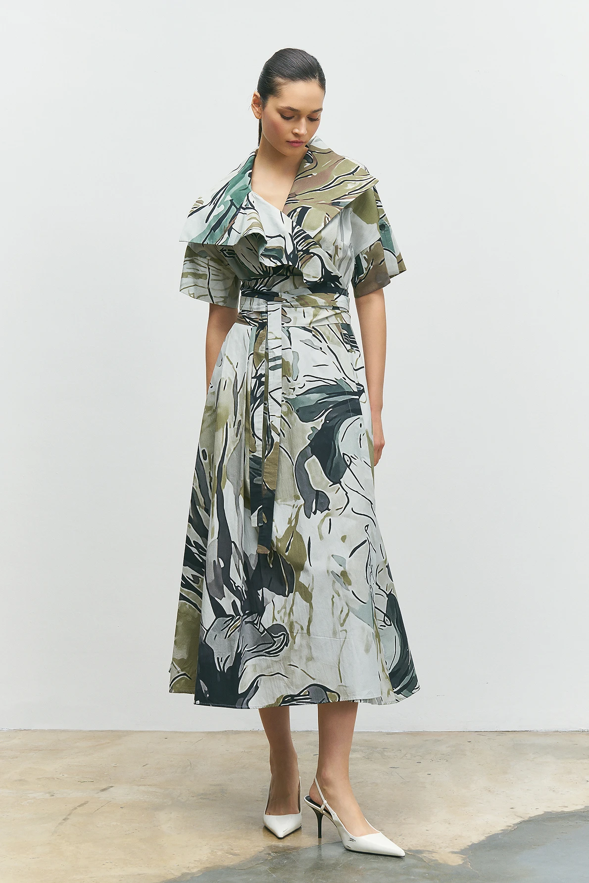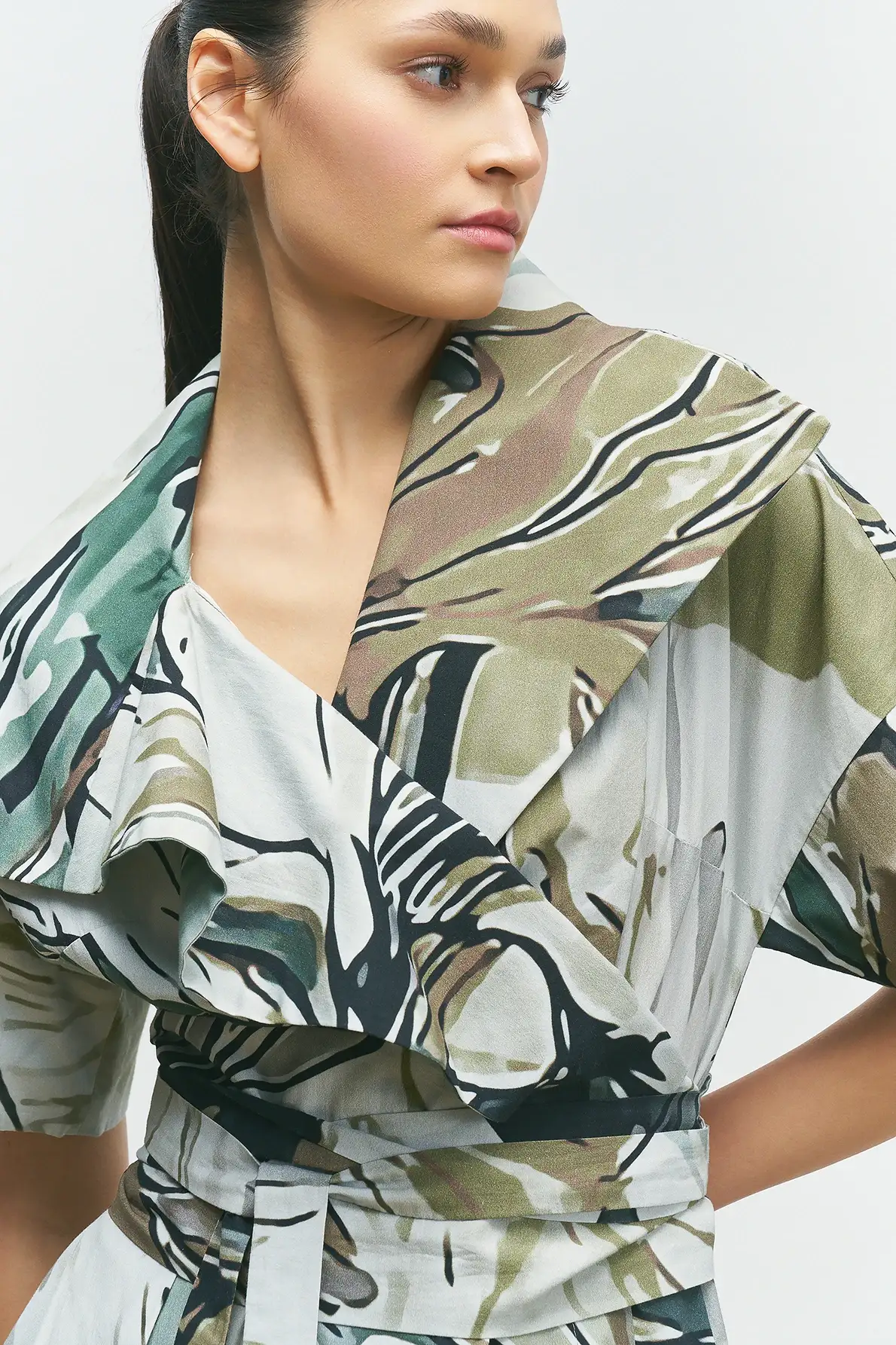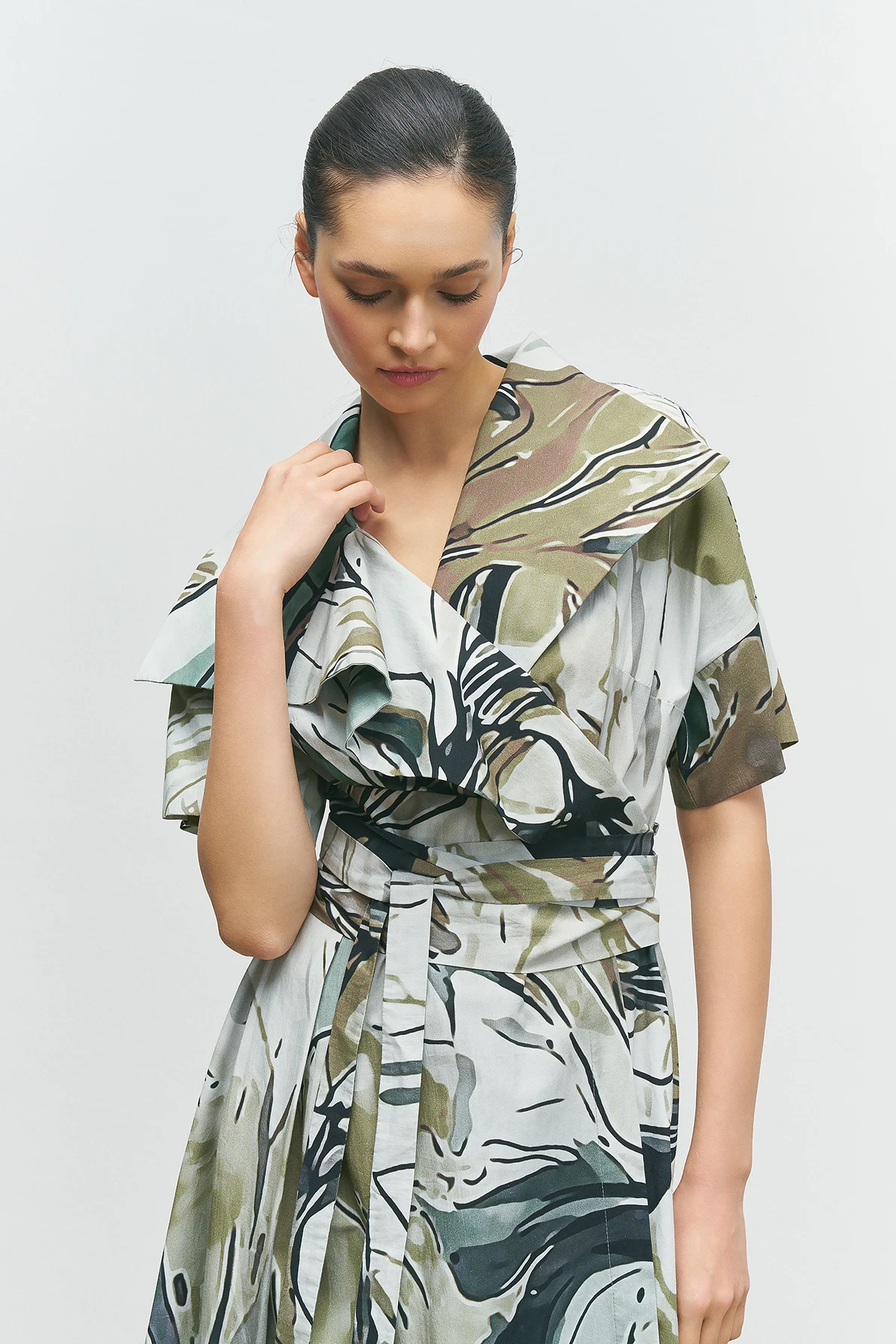Pastel Desenli Kruvaze Elbise
