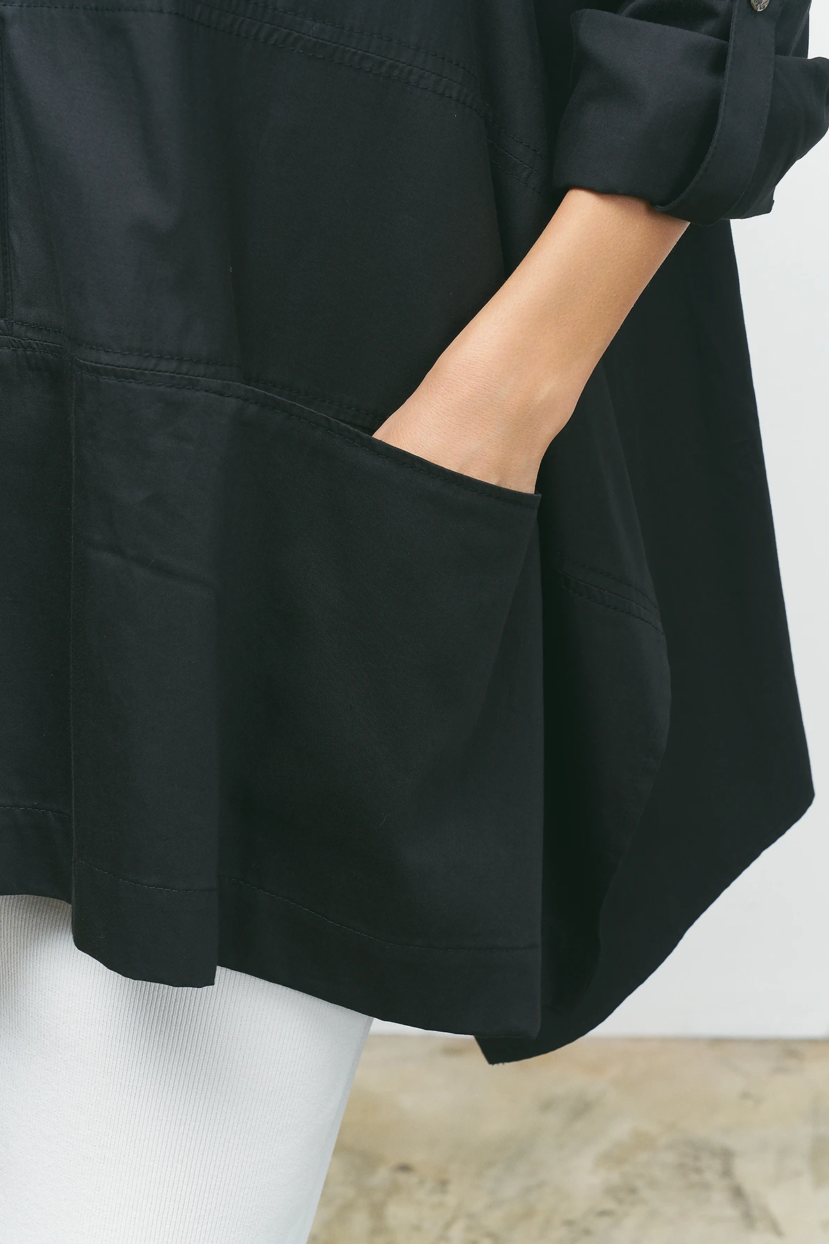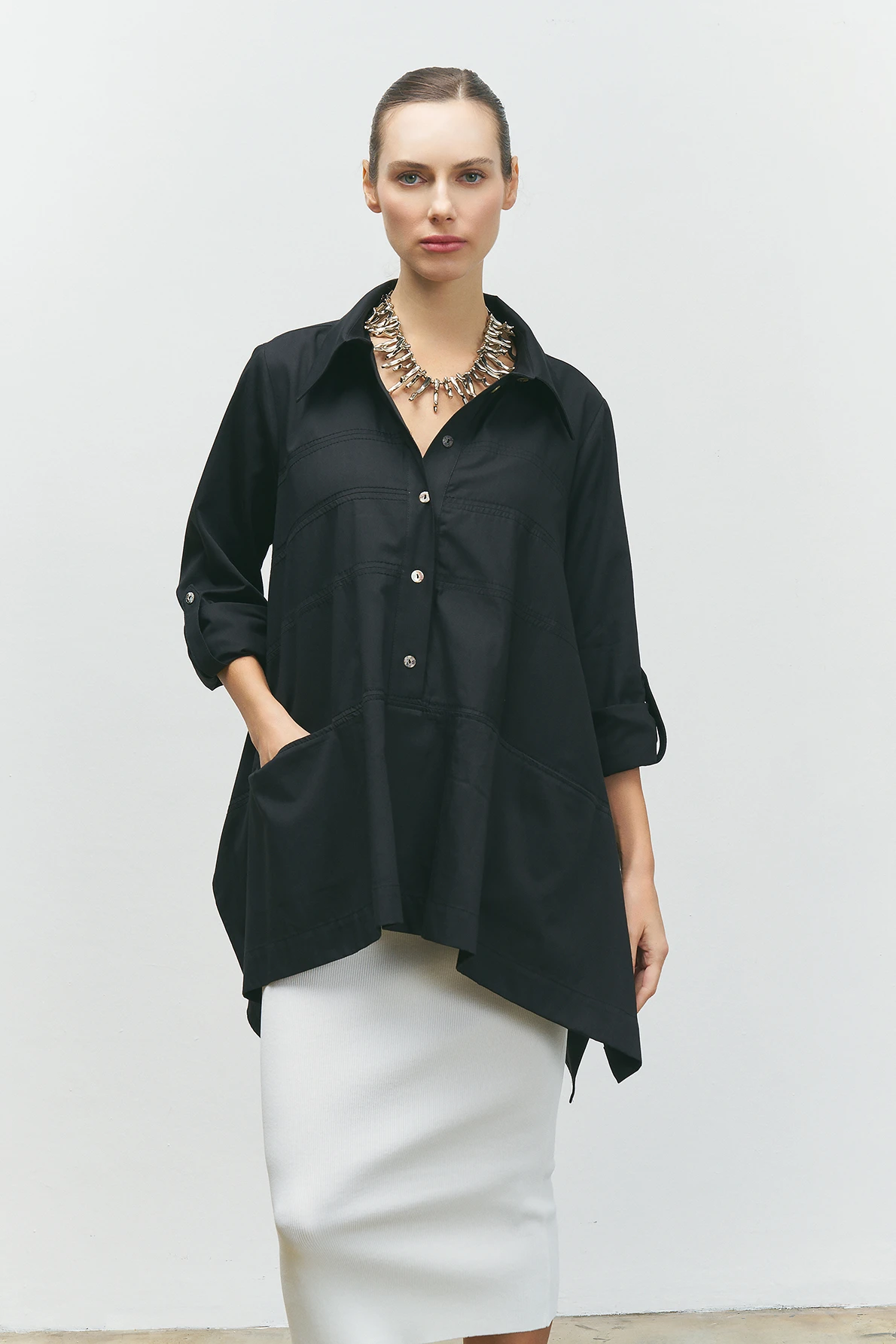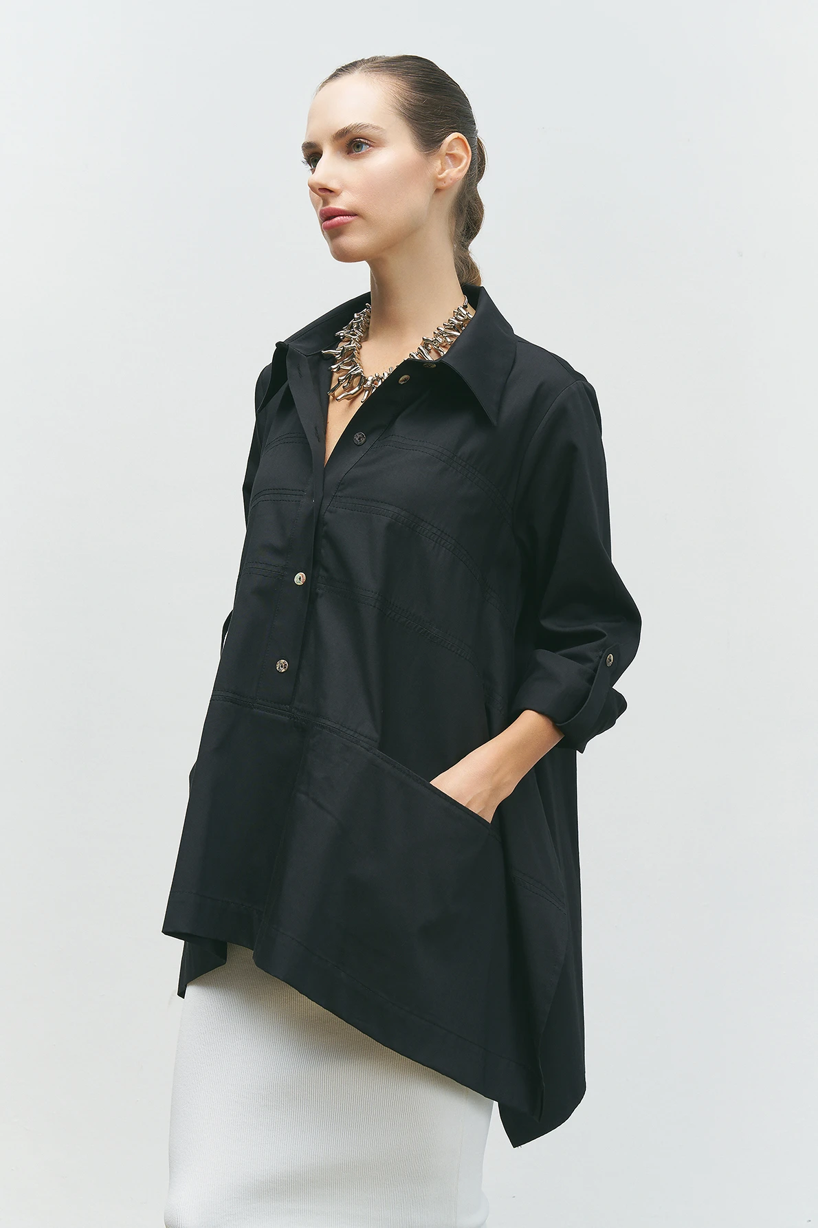 Önü Şerit Dikişli Cepli Gömlek - Siyah