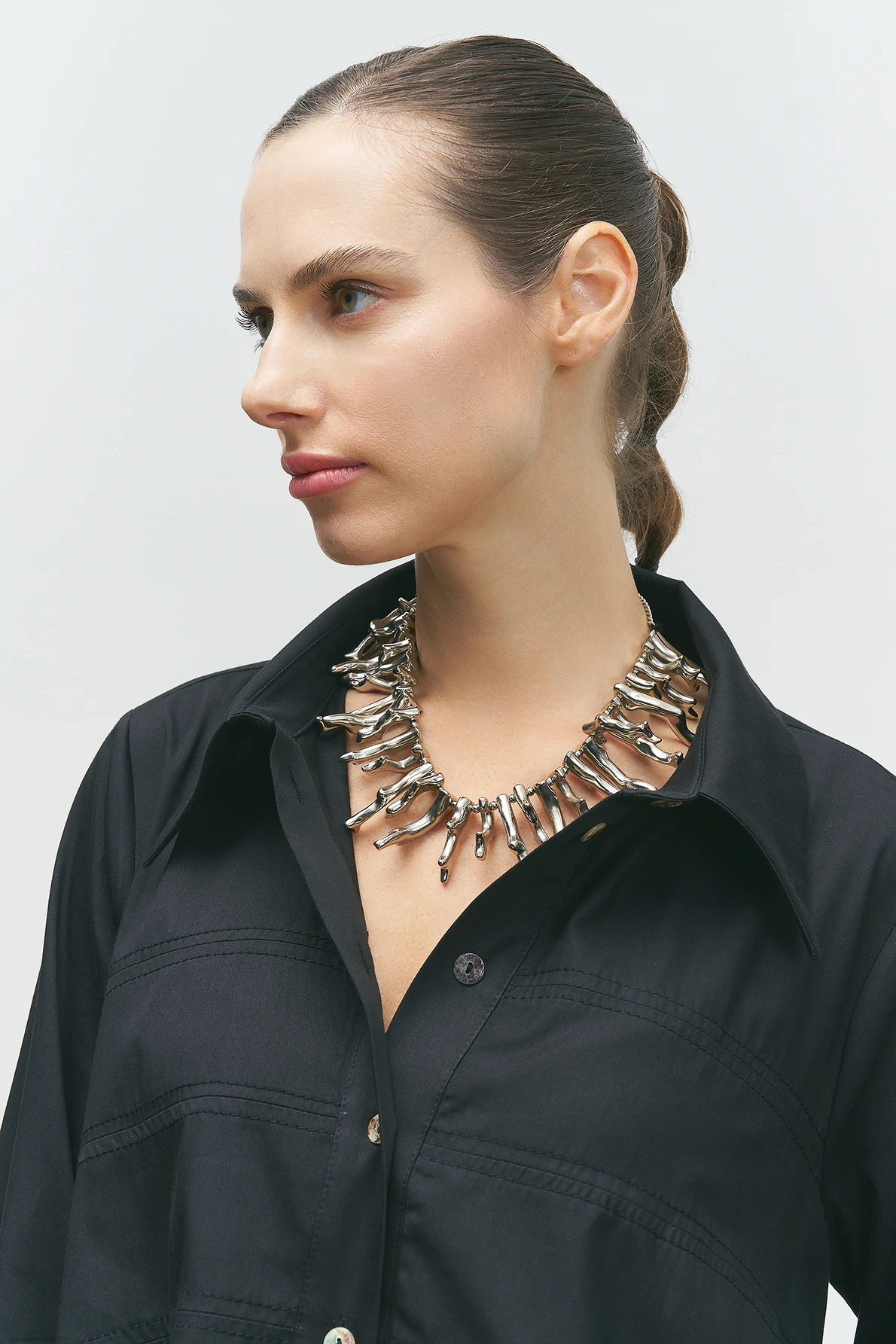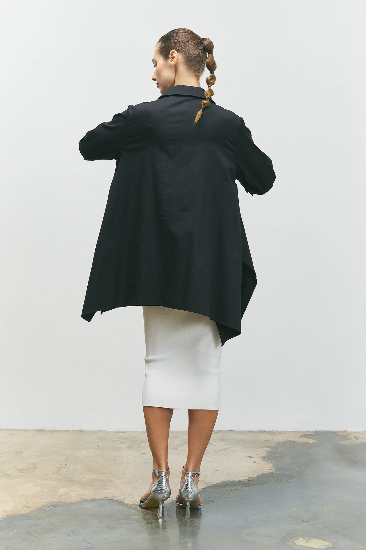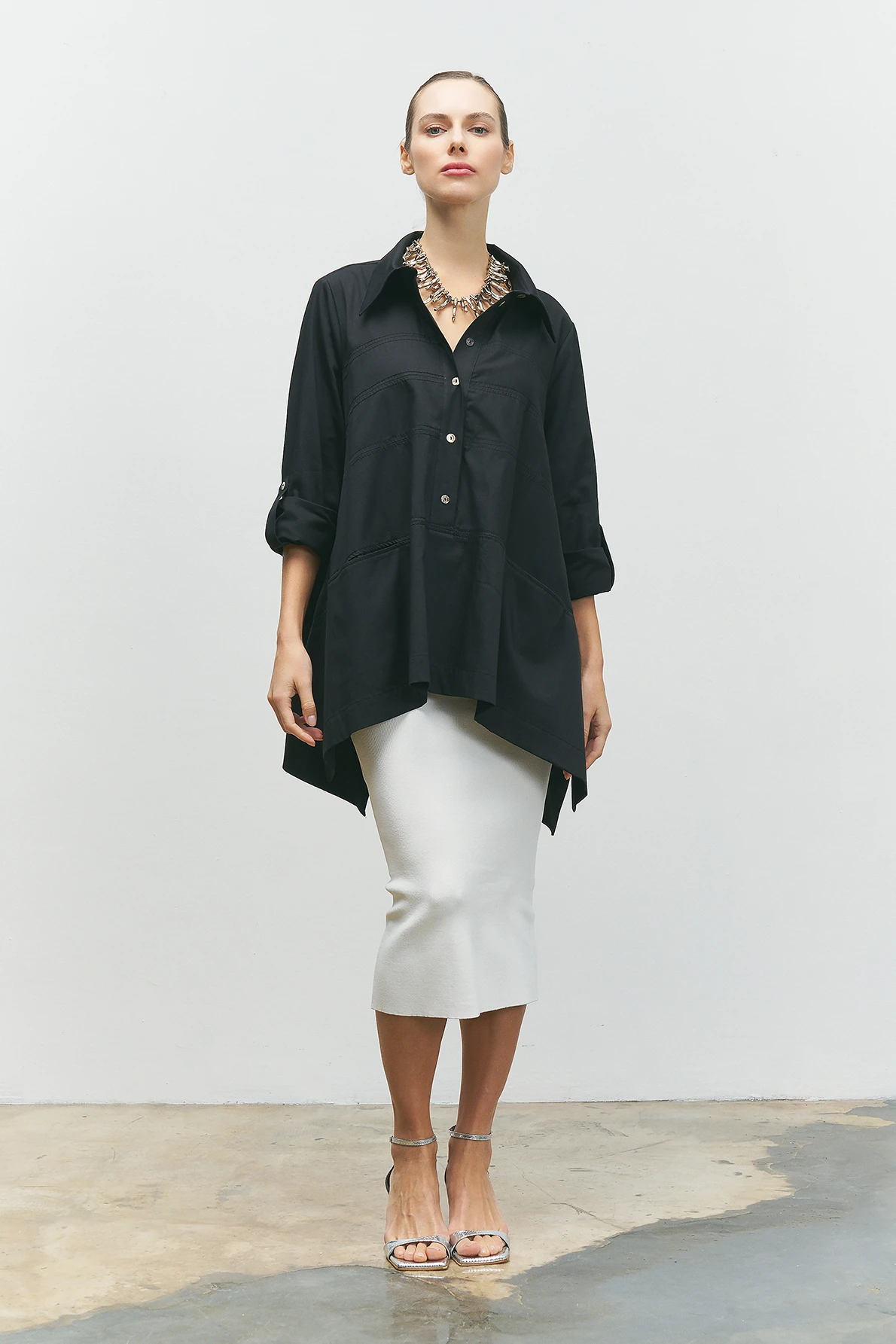 Önü Şerit Dikişli Cepli Gömlek - Siyah