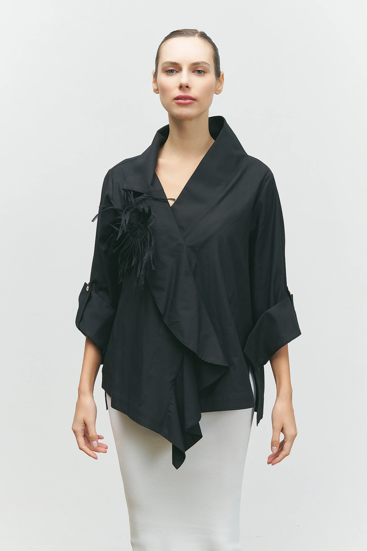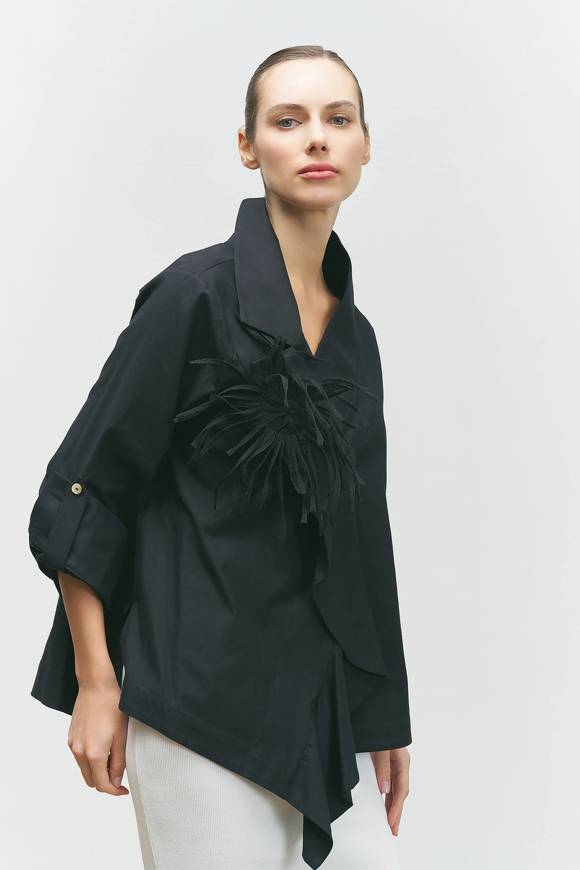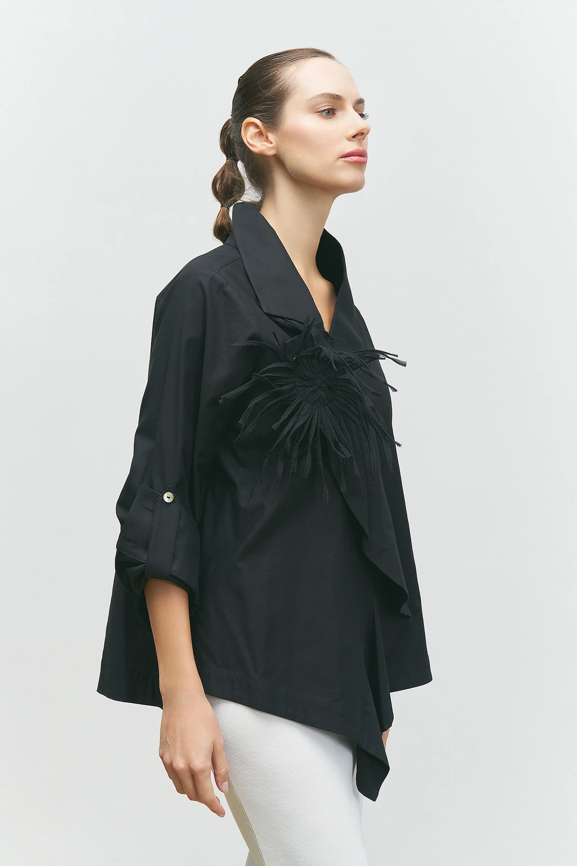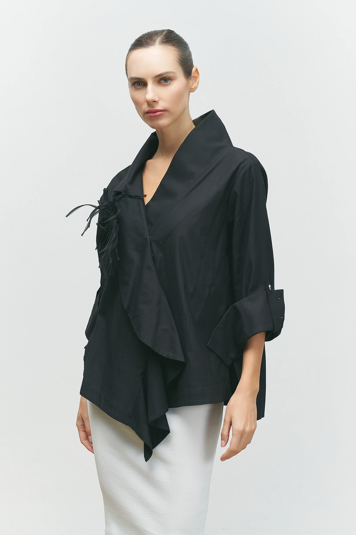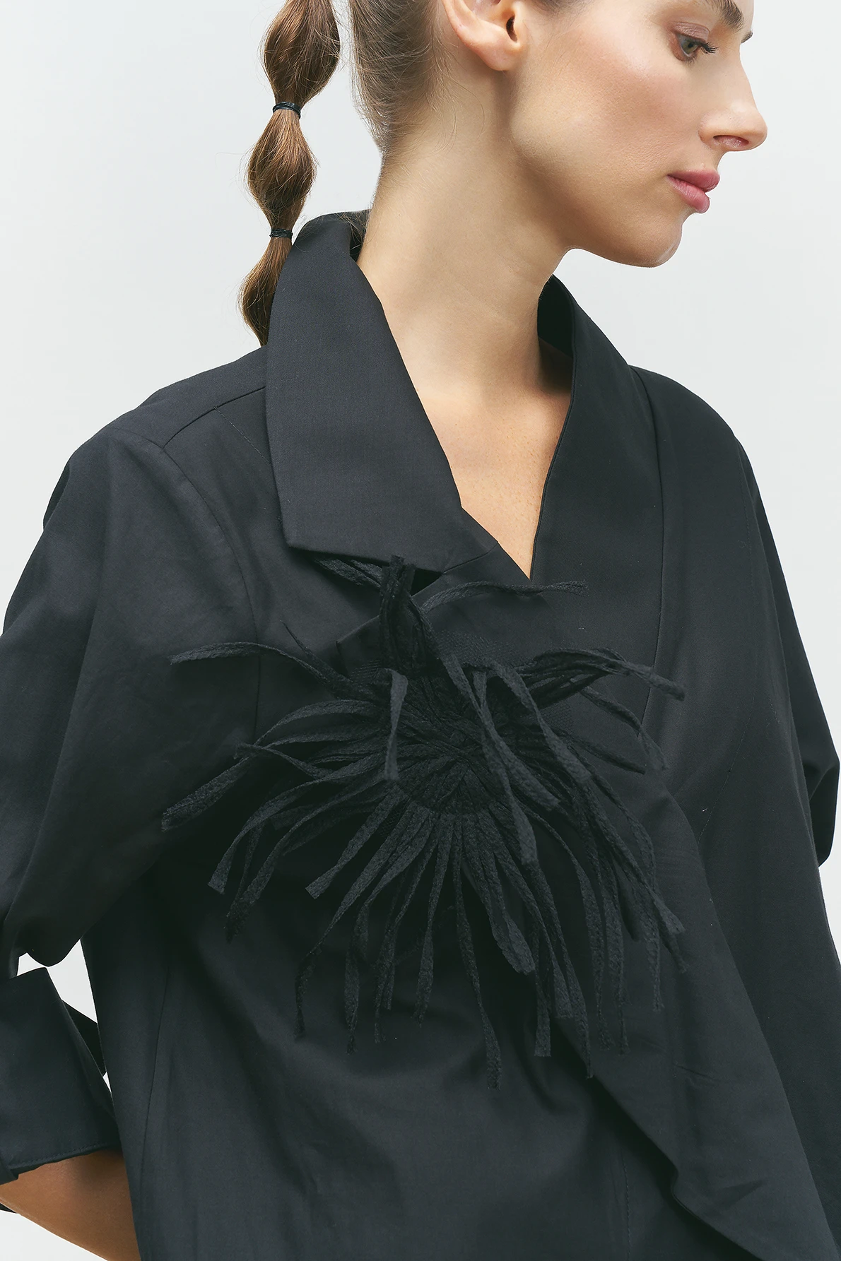 Yakası Süs Detaylı Gömlek - Siyah