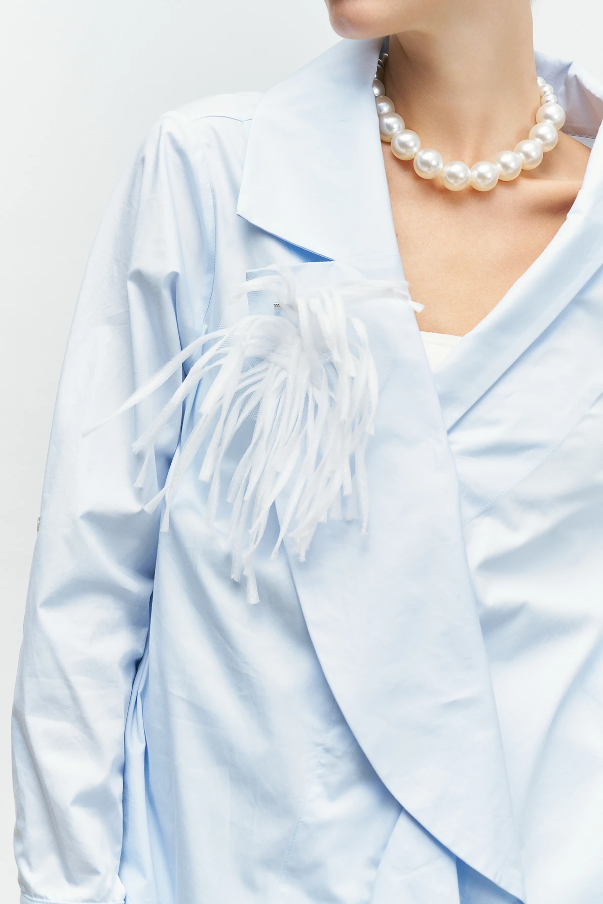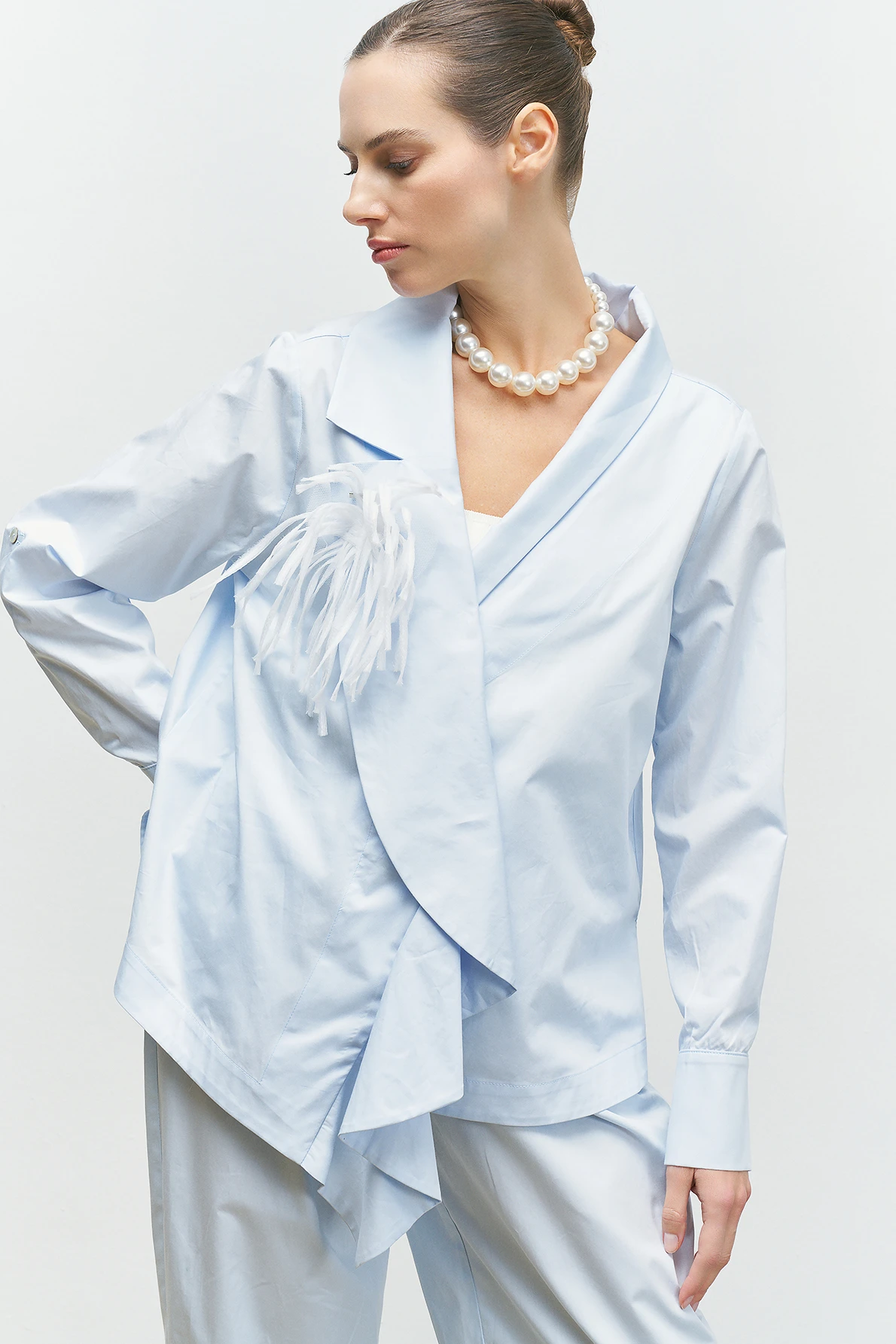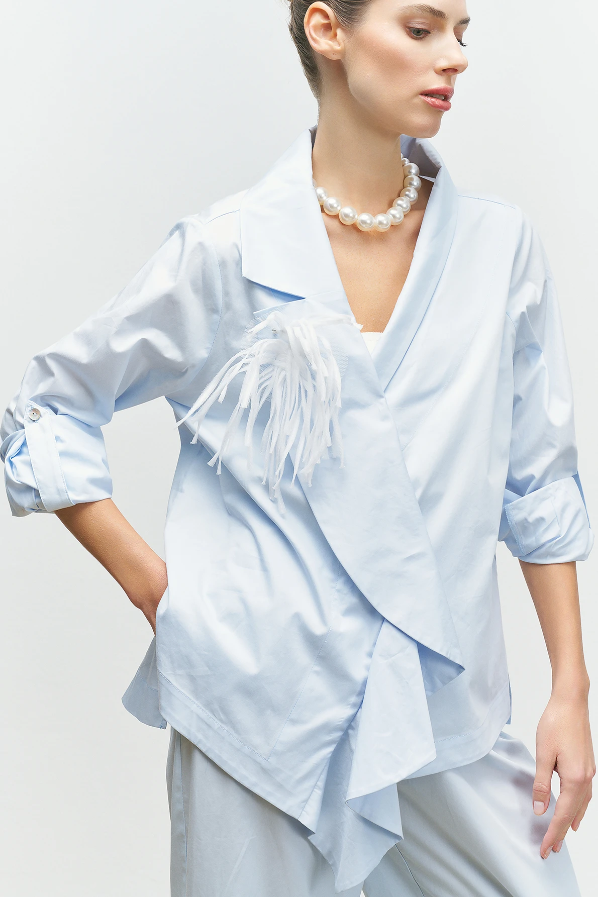 Yakası Süs Detaylı Gömlek - Buz Mavi