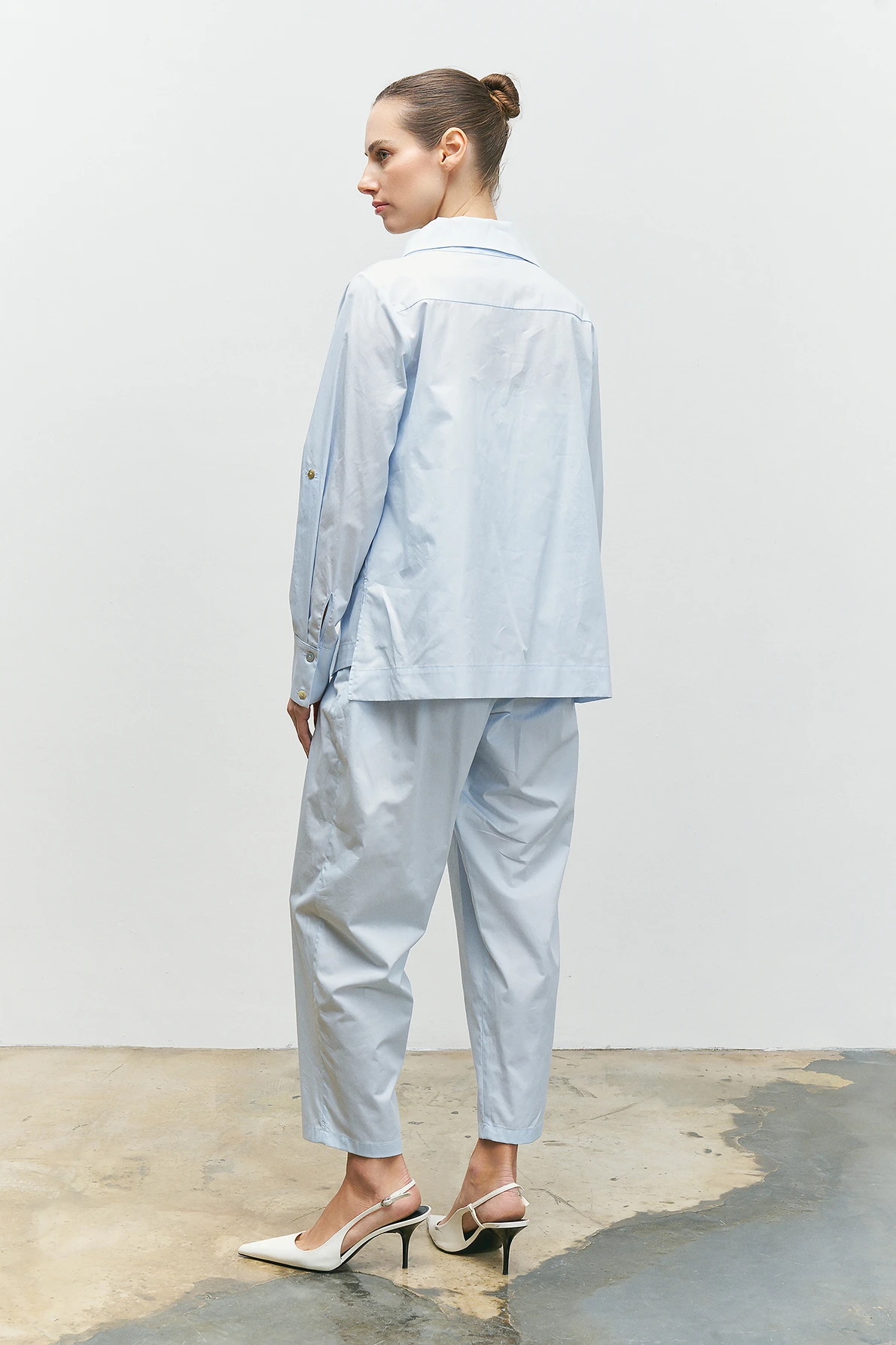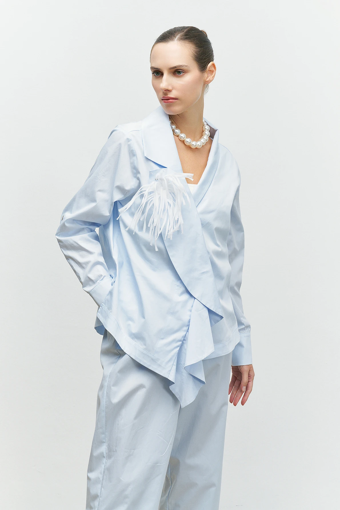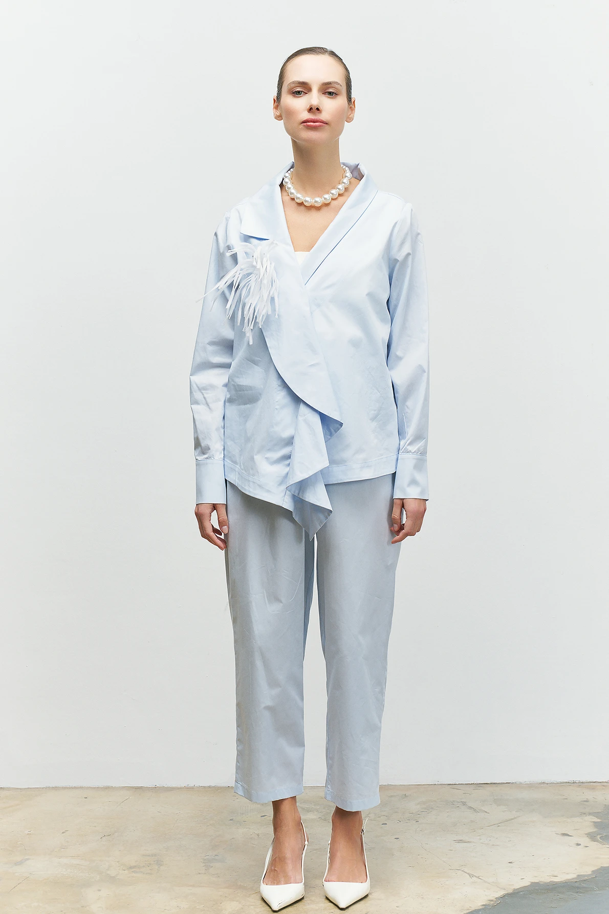 Yakası Süs Detaylı Gömlek - Buz Mavi