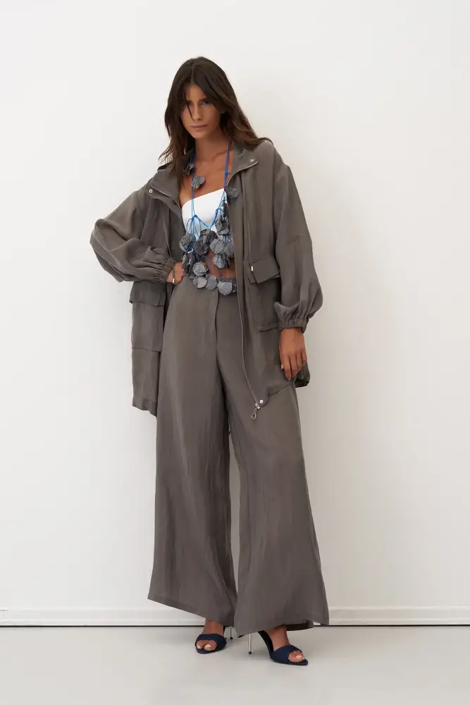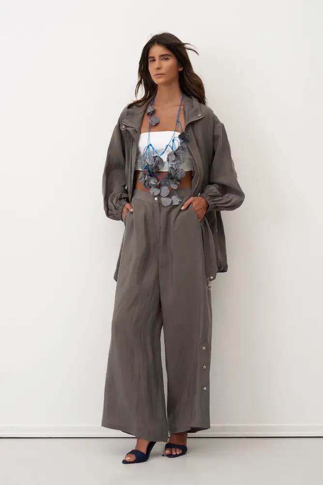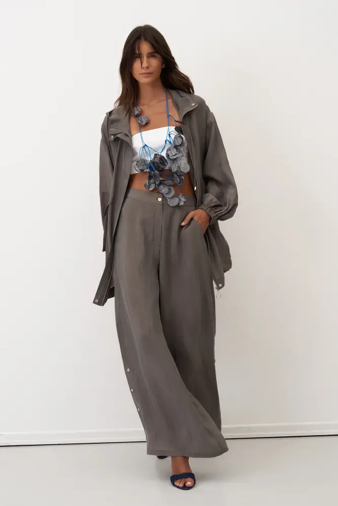Gri Yanları Düğmeli Geniş Kesim Mykonos Pantolon