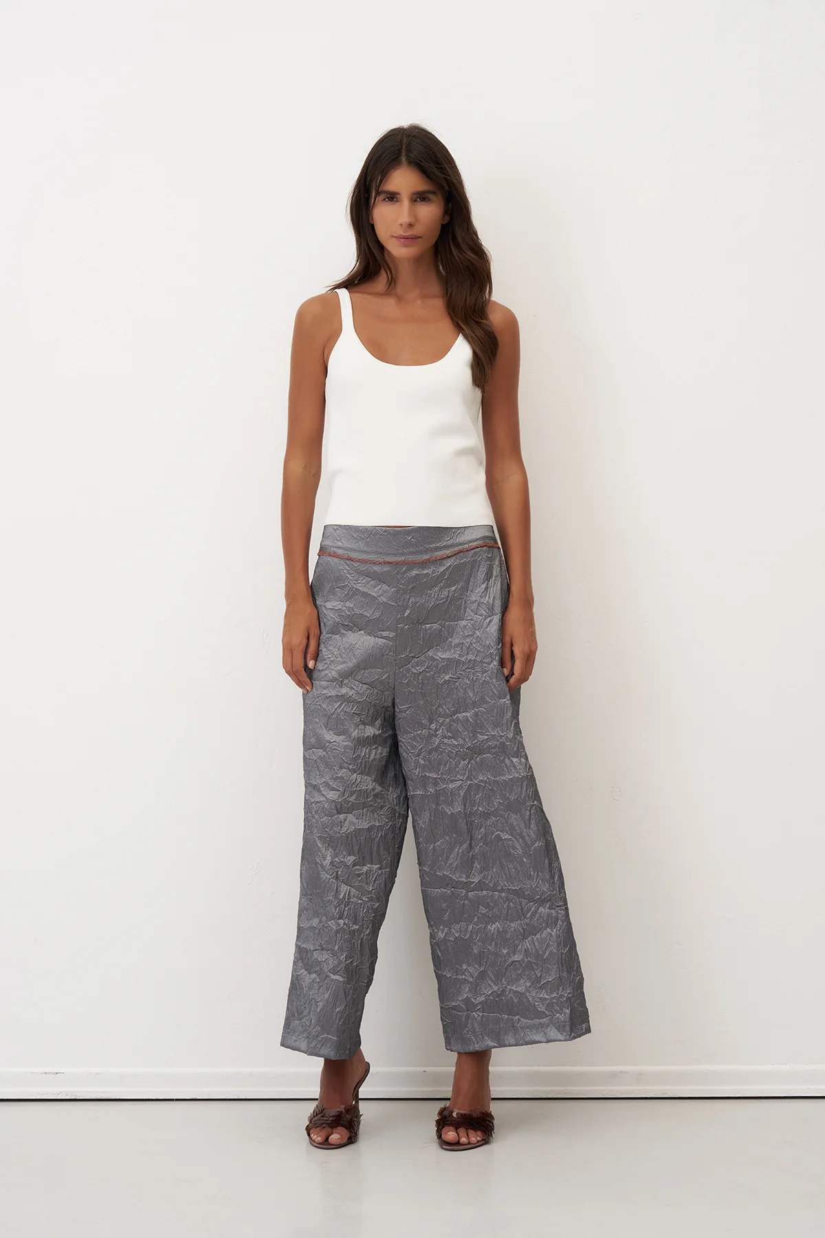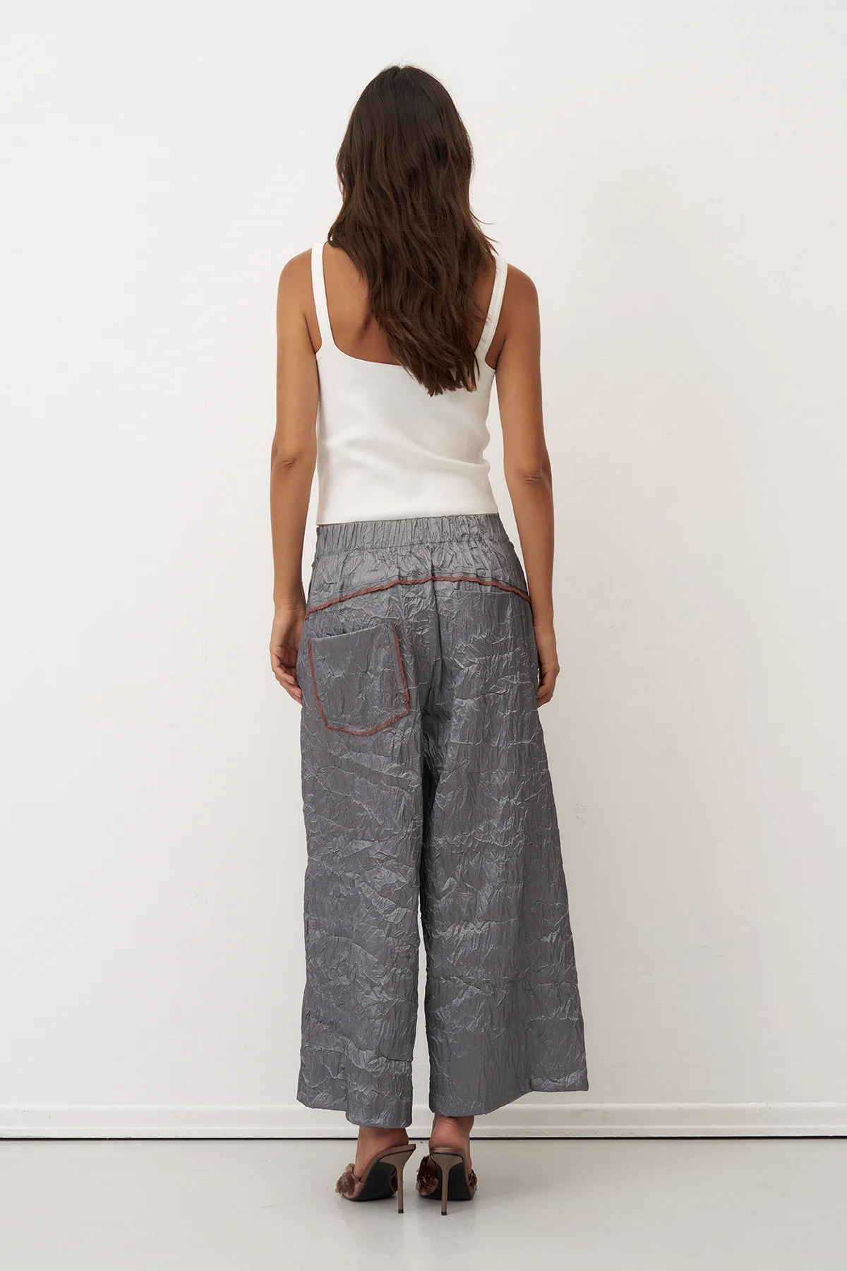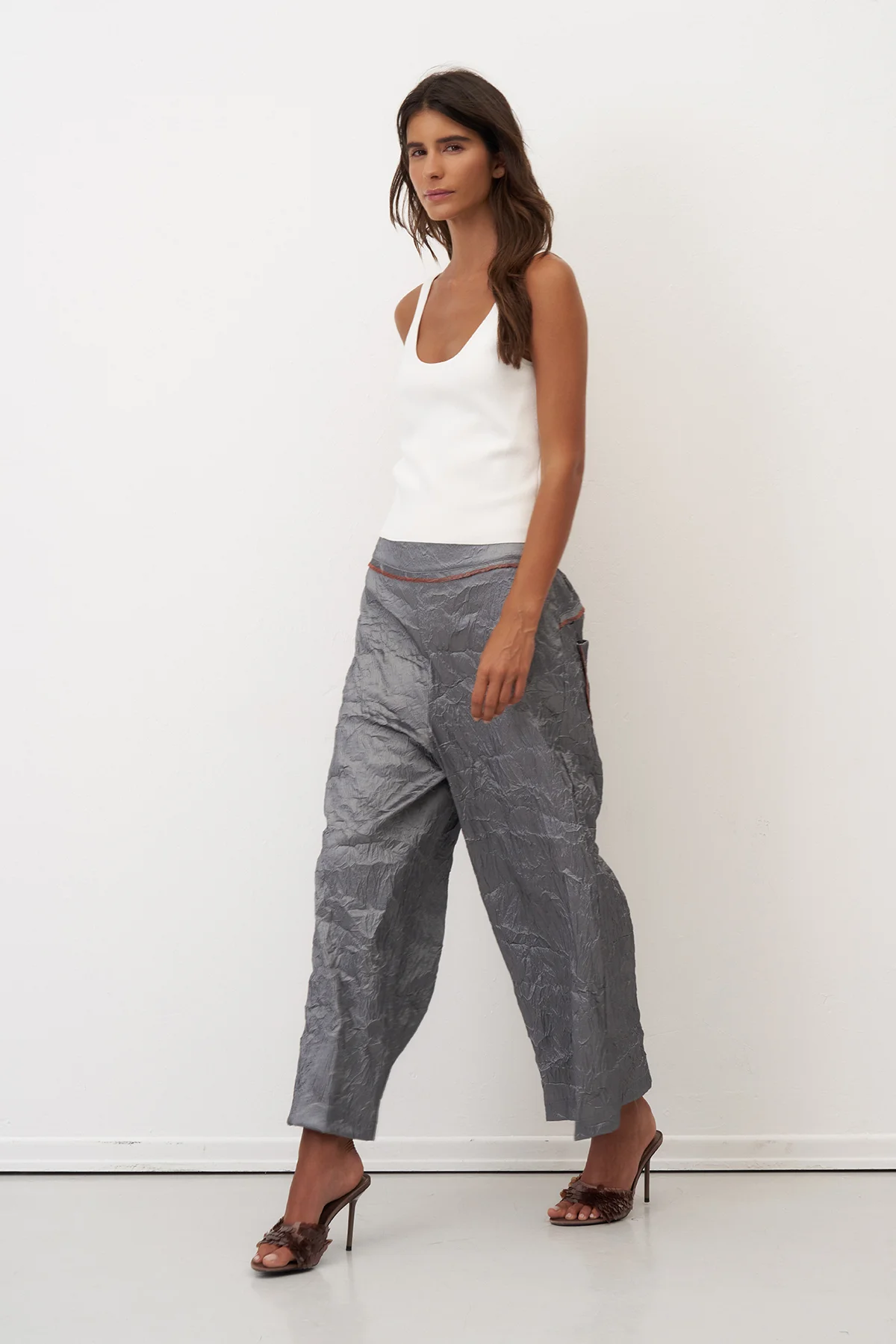 Gri Kırışık Renkli Dikişli Vido Pantolon
