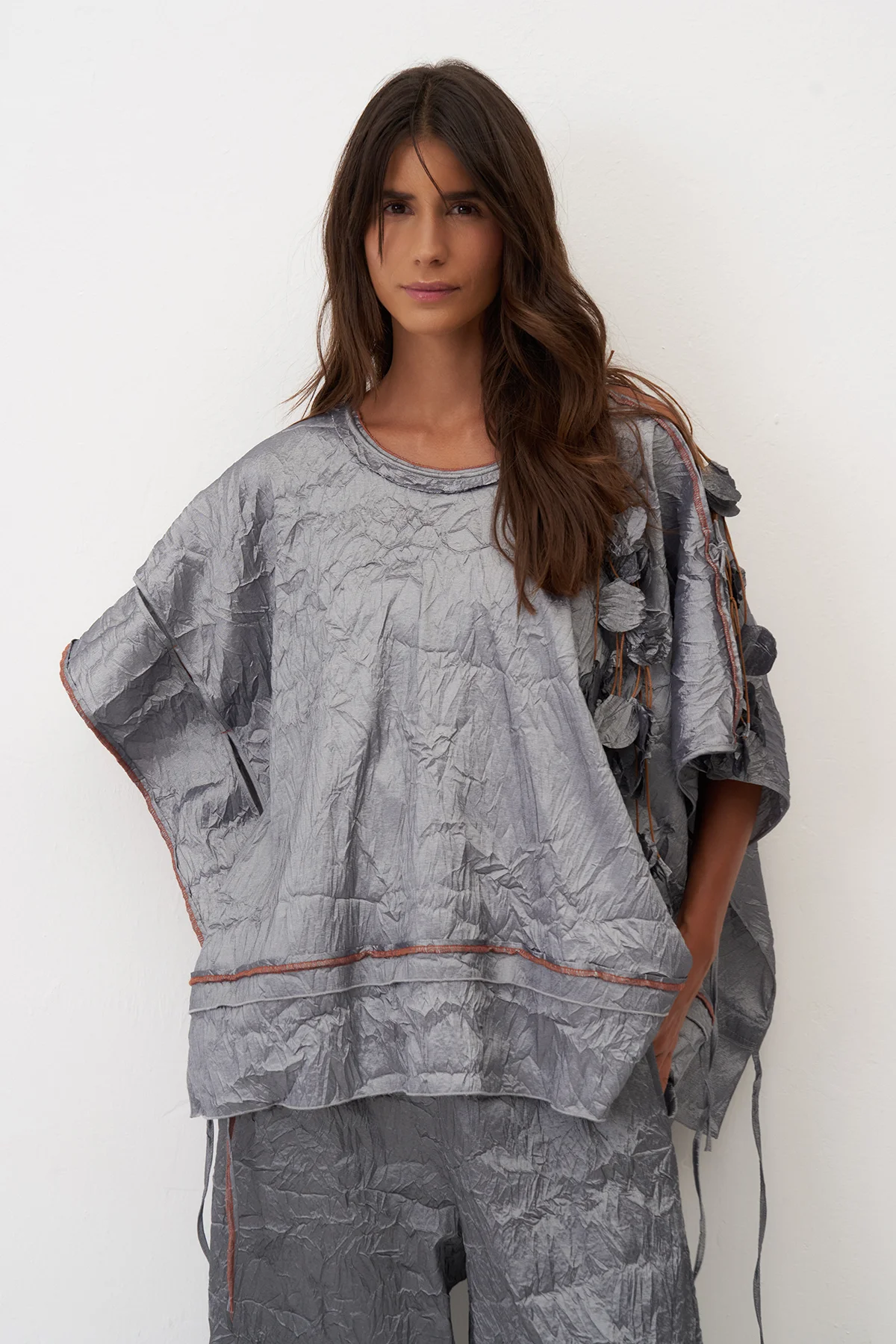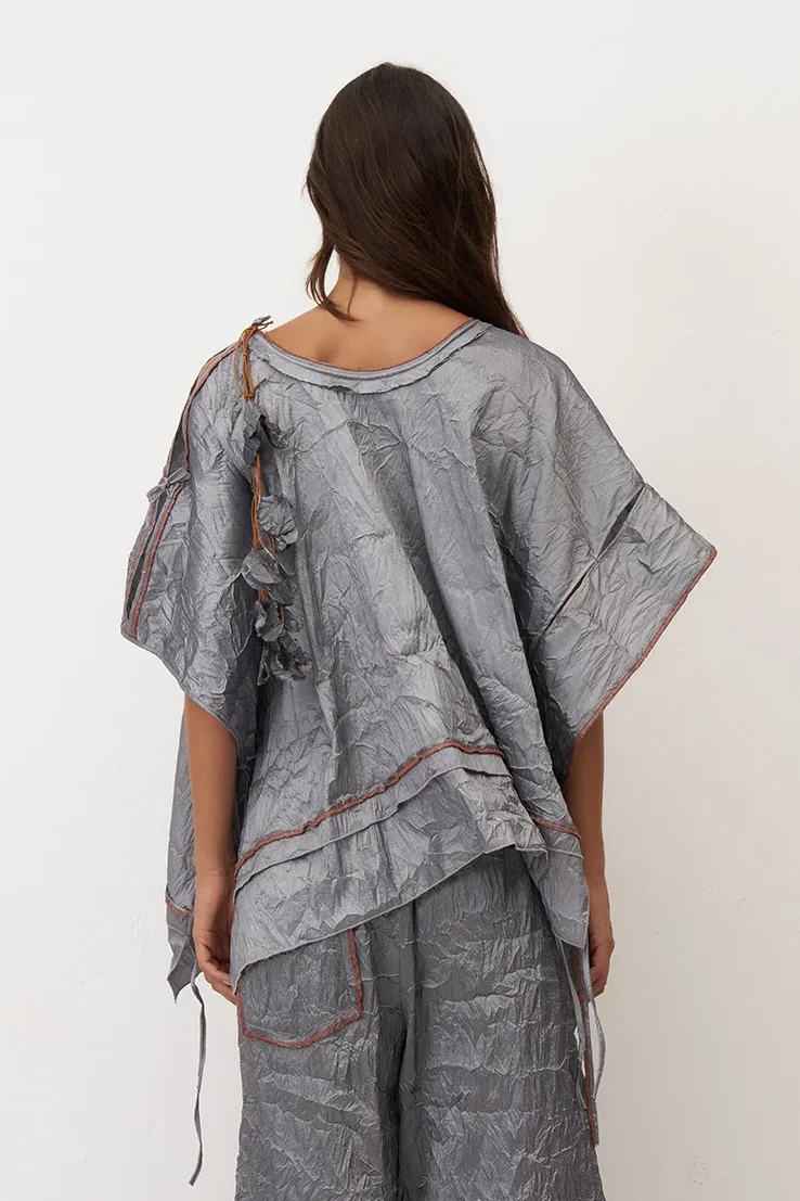 Gri Omuzu Kolyeli Kırışık Vido Bluz