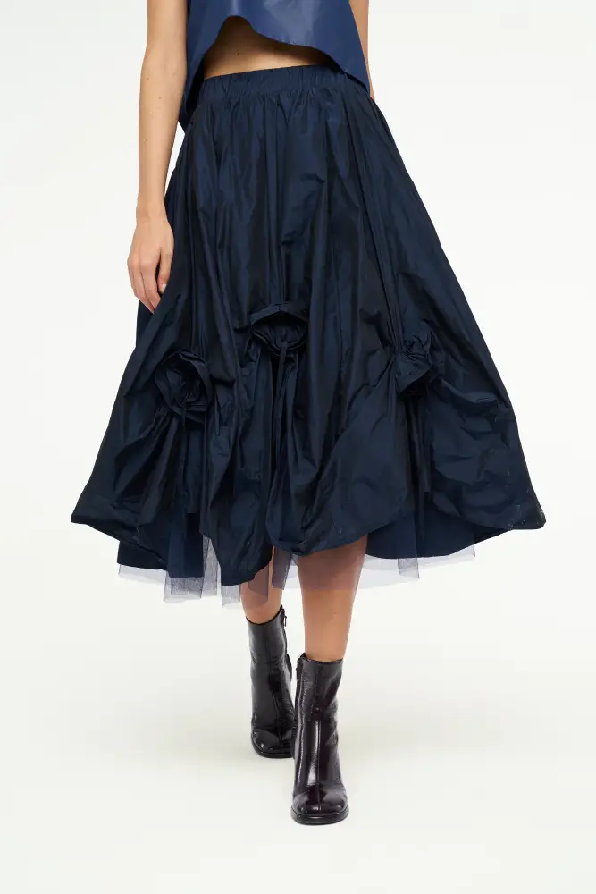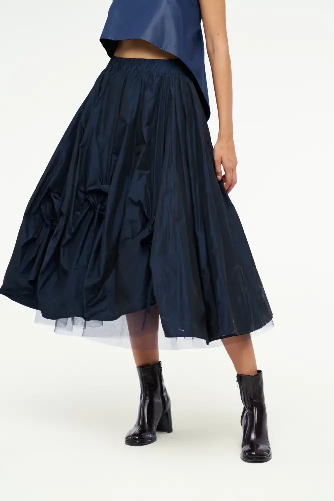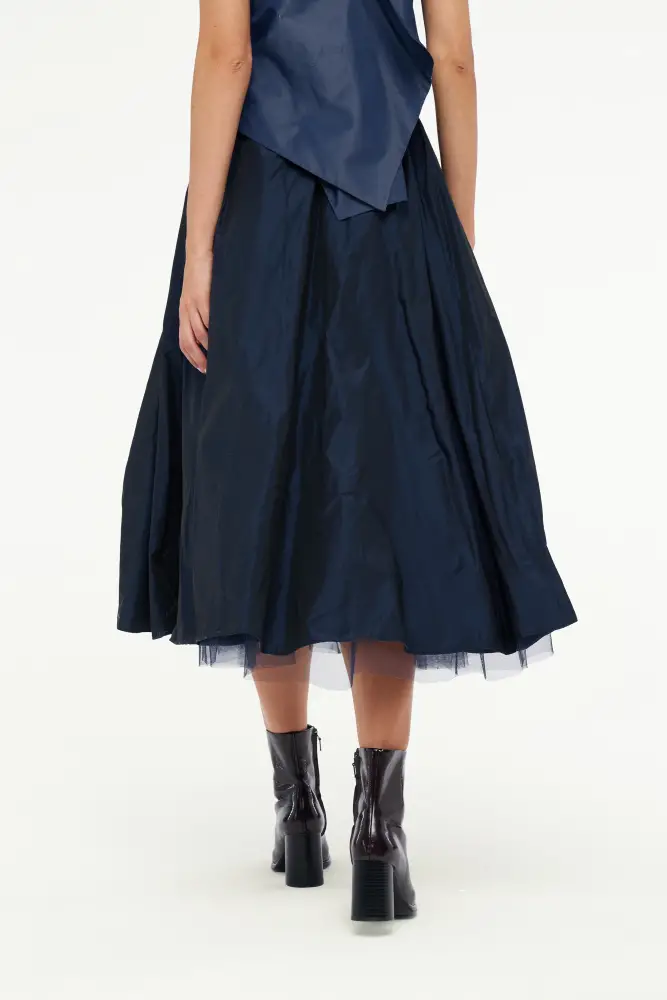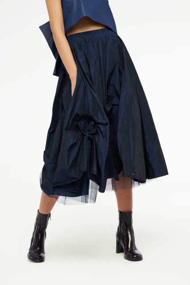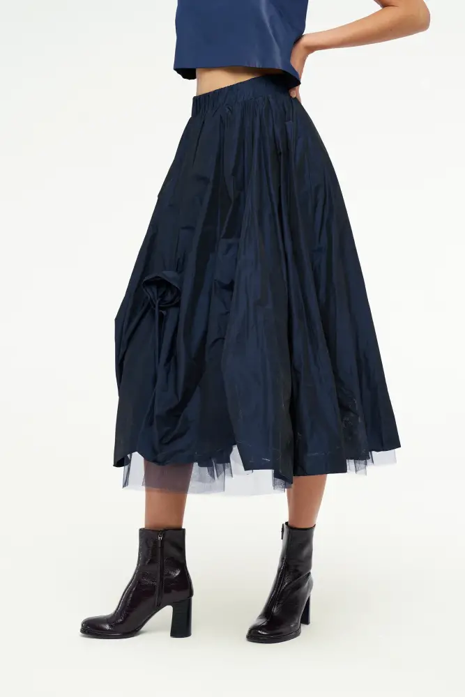 Gül Motifli Tafta Etek - Lacivert