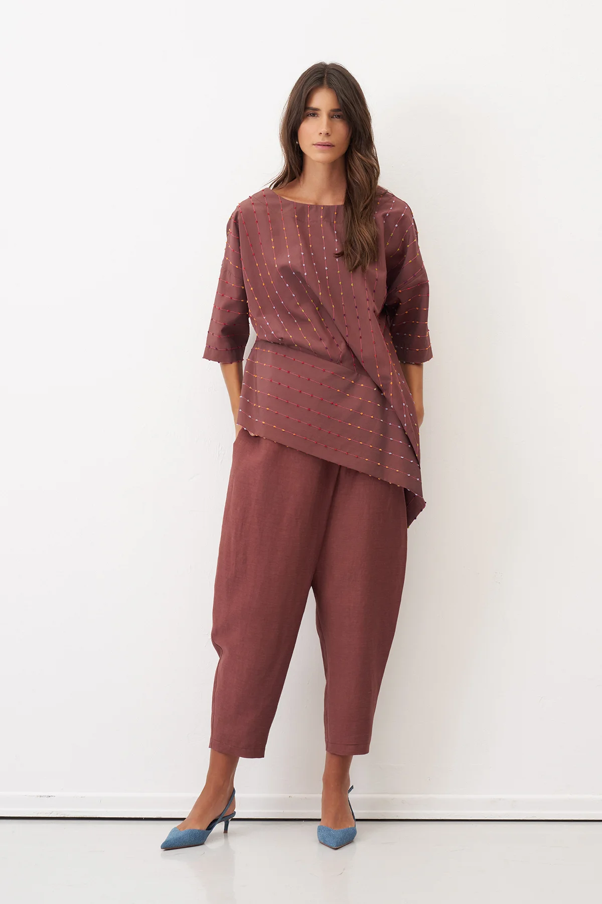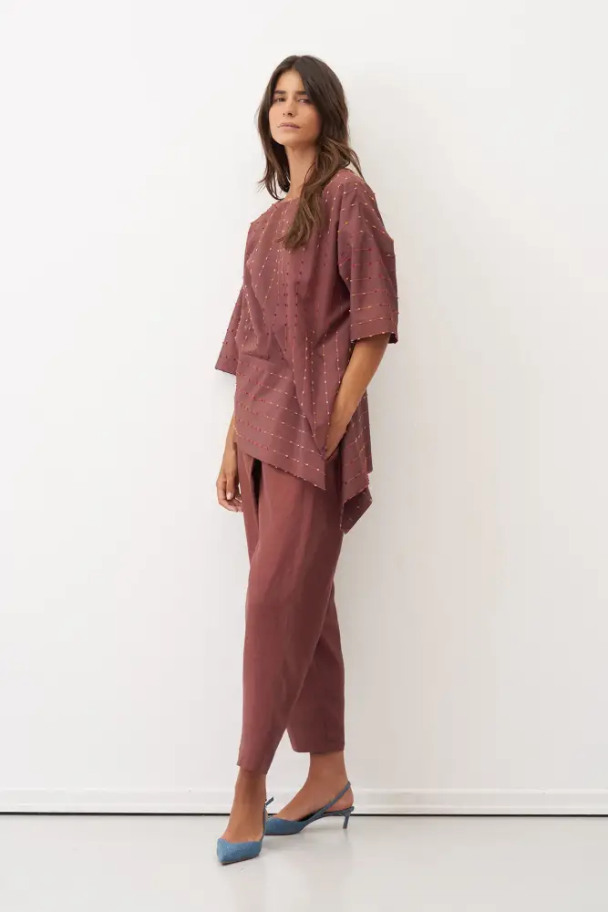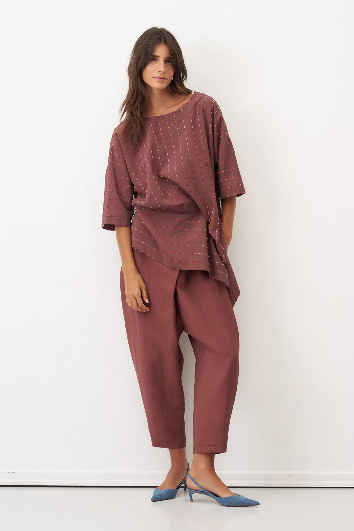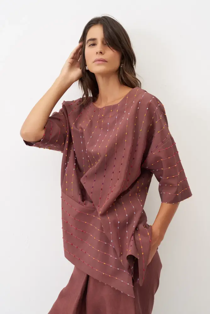 Kahverengi Renkli Dokulu Asimetrik Patmos Bluz