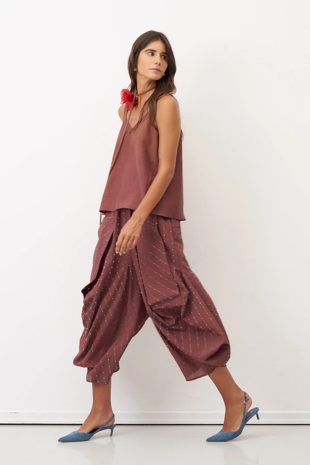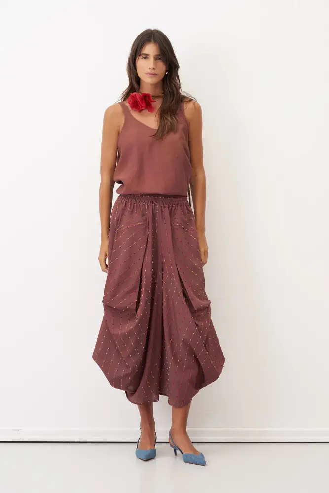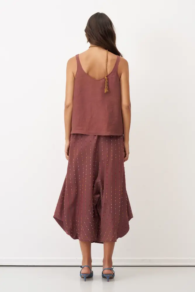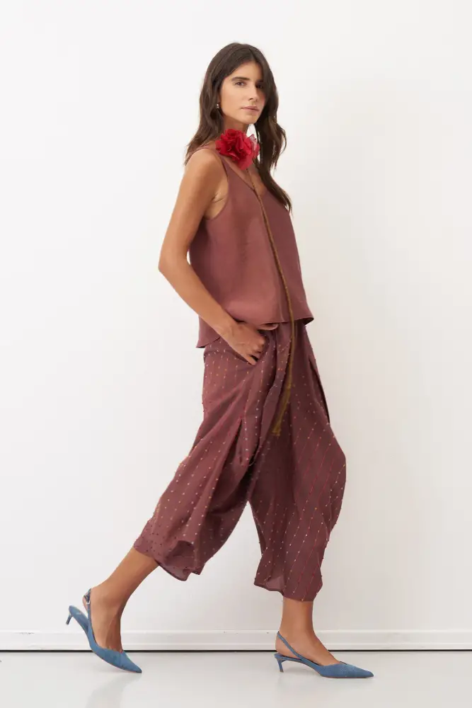 Kahverengi Renkli Dokulu Şalvar Tipi Patmos Pantolon