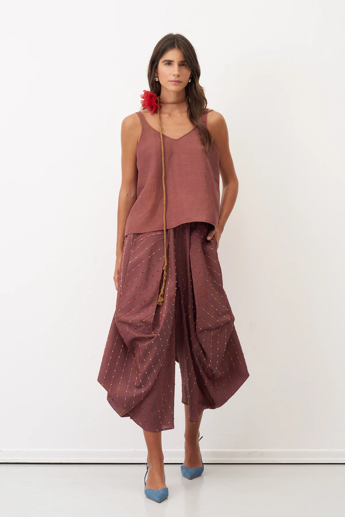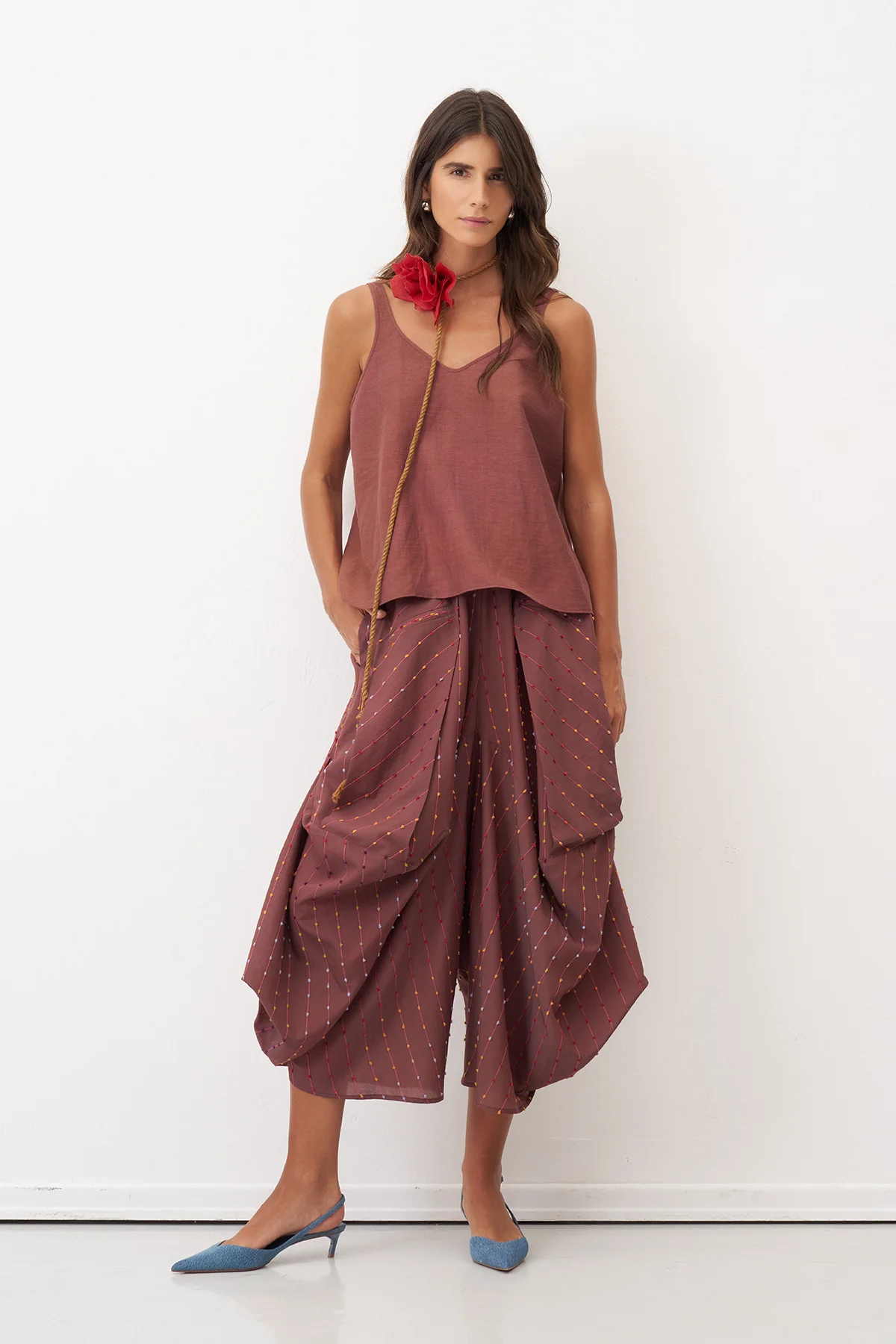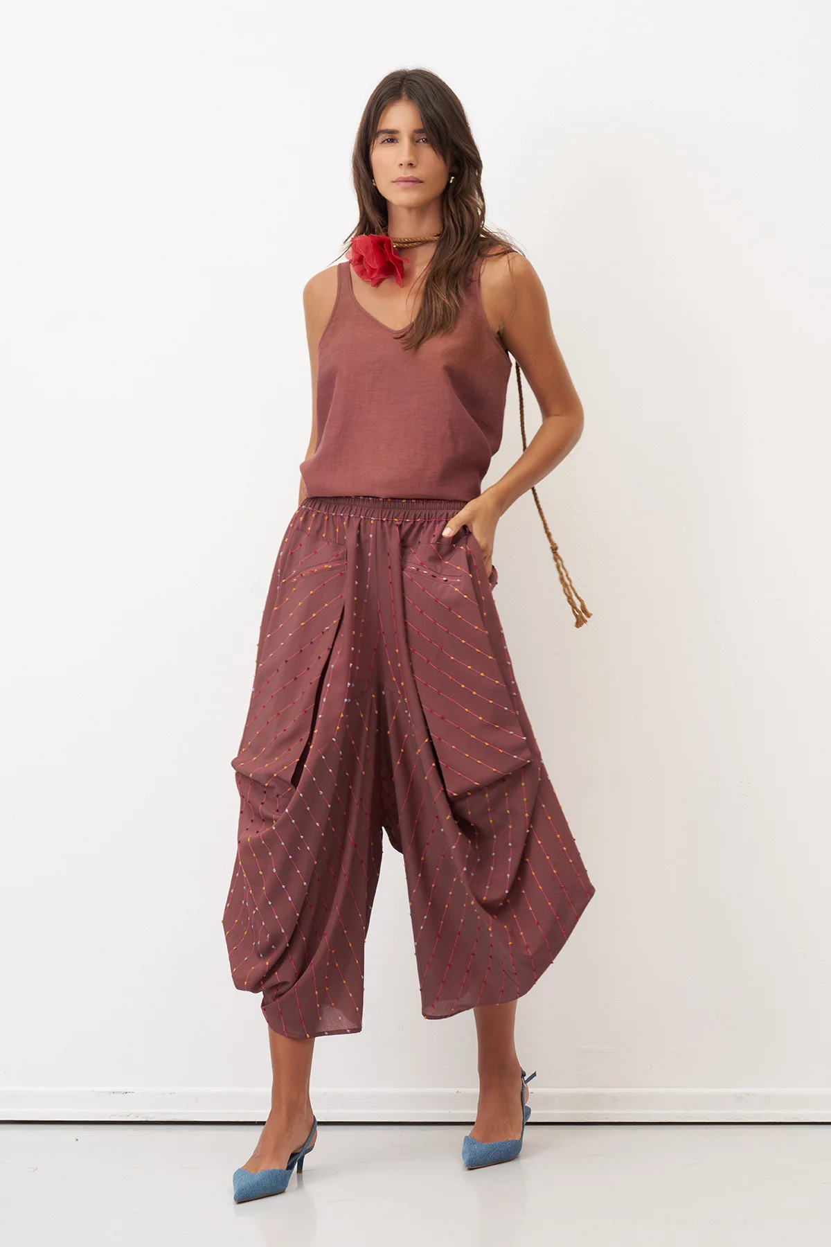 Kahverengi Renkli Dokulu Şalvar Tipi Patmos Pantolon