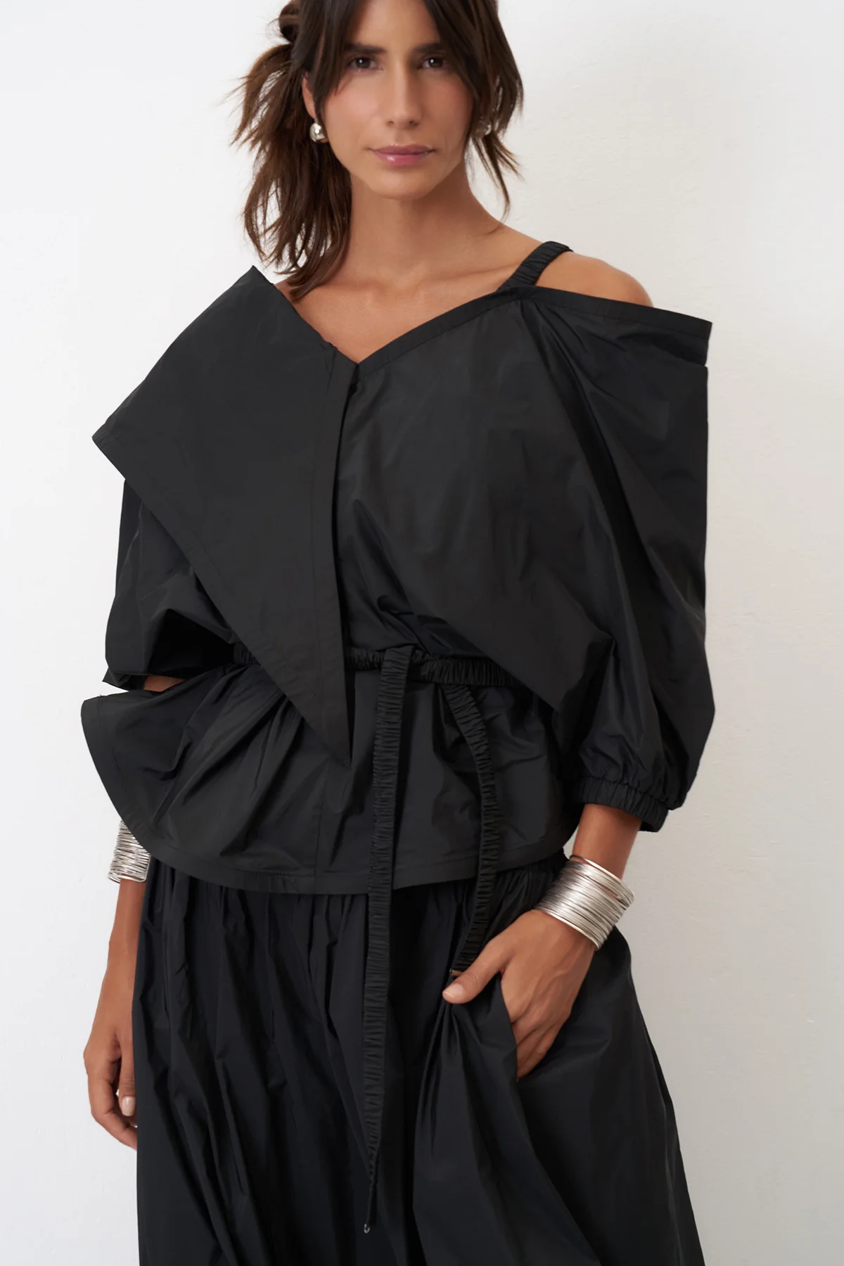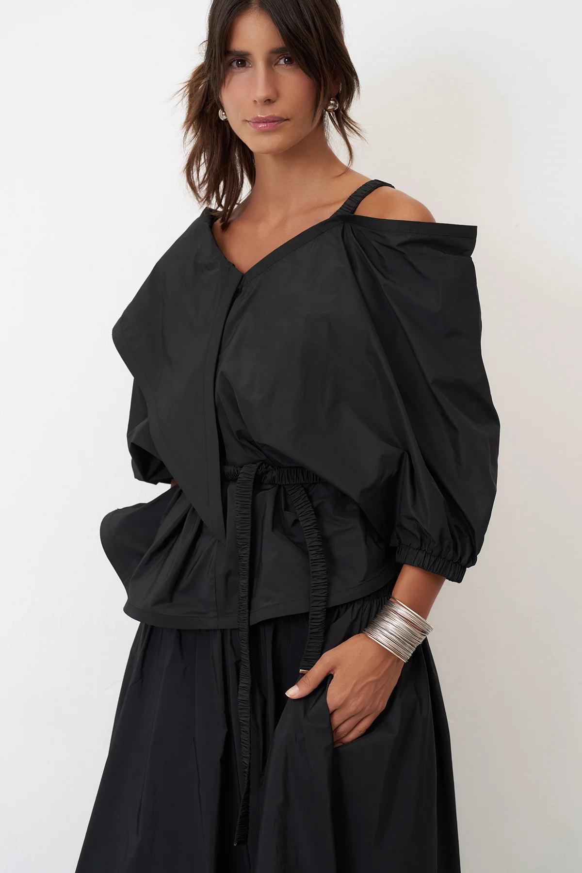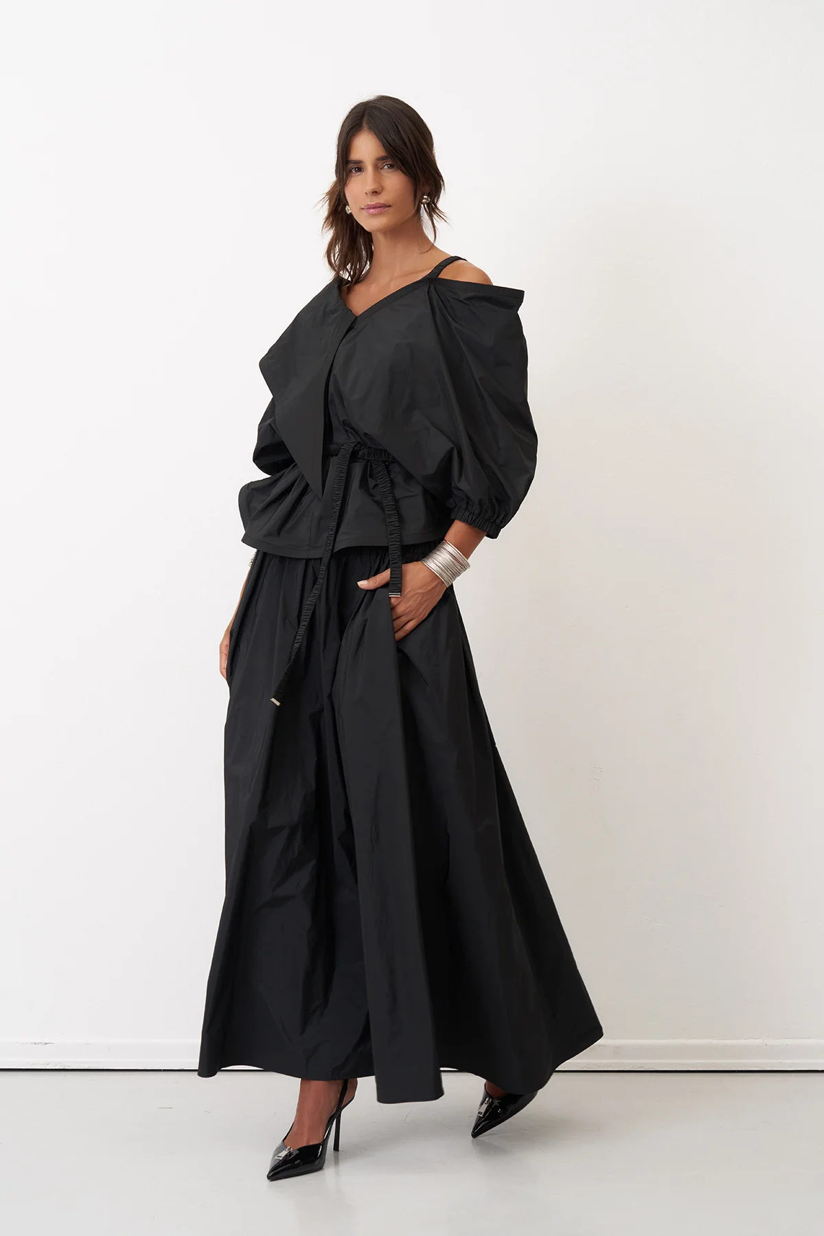 Siyah Dokulu Kumaş Kısa Paça Venetiko Bol Pantolon