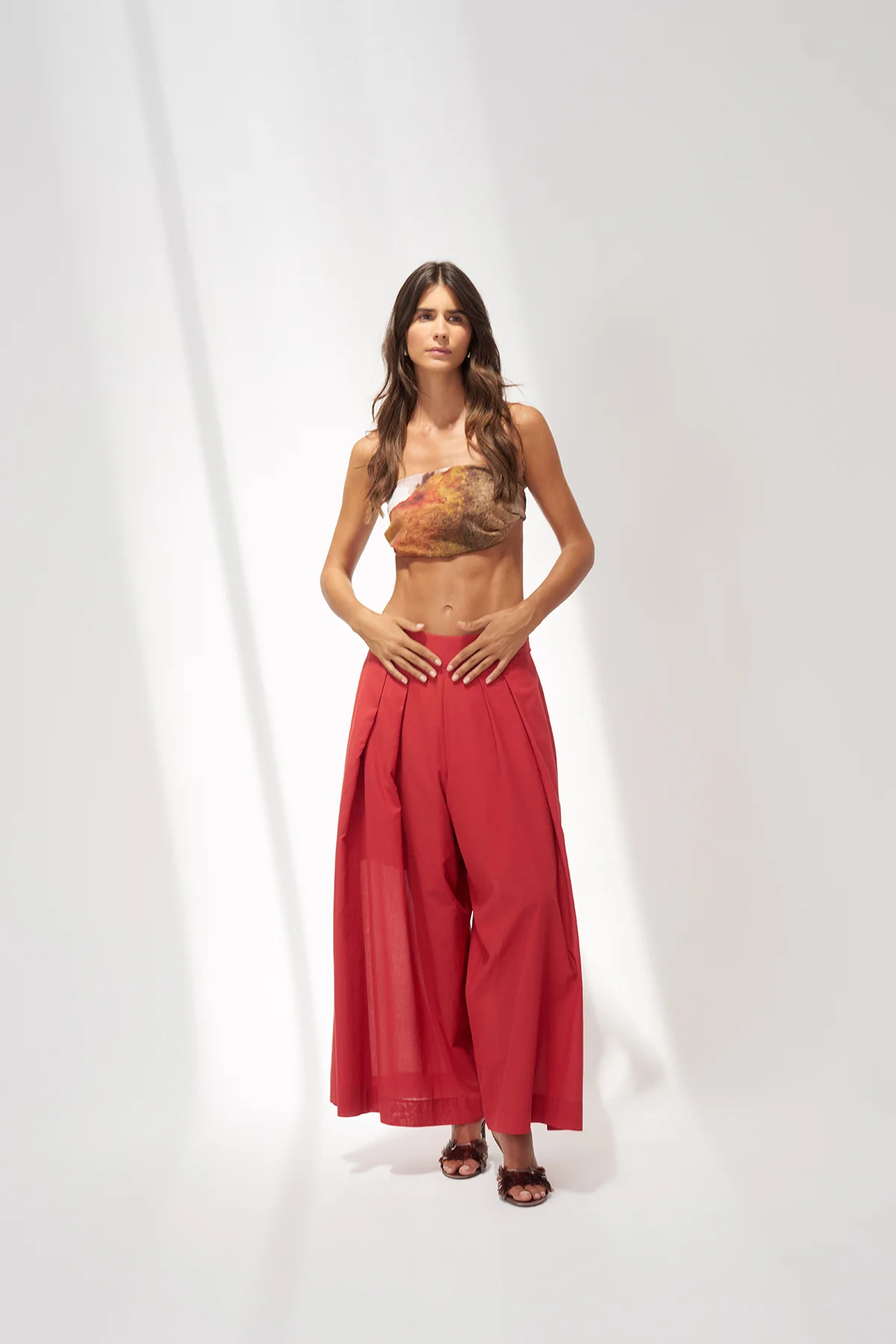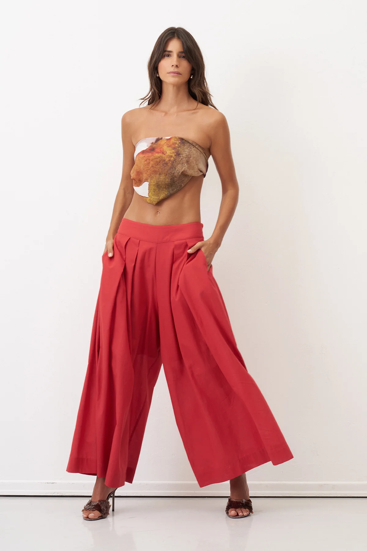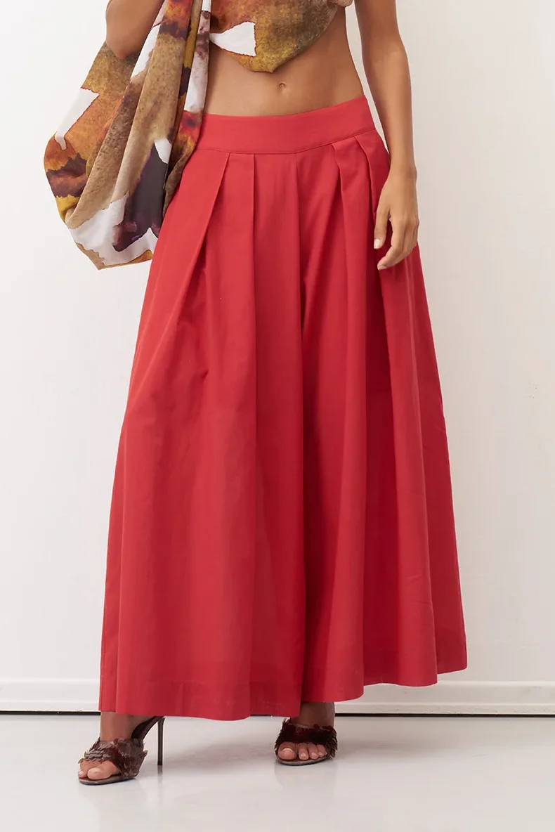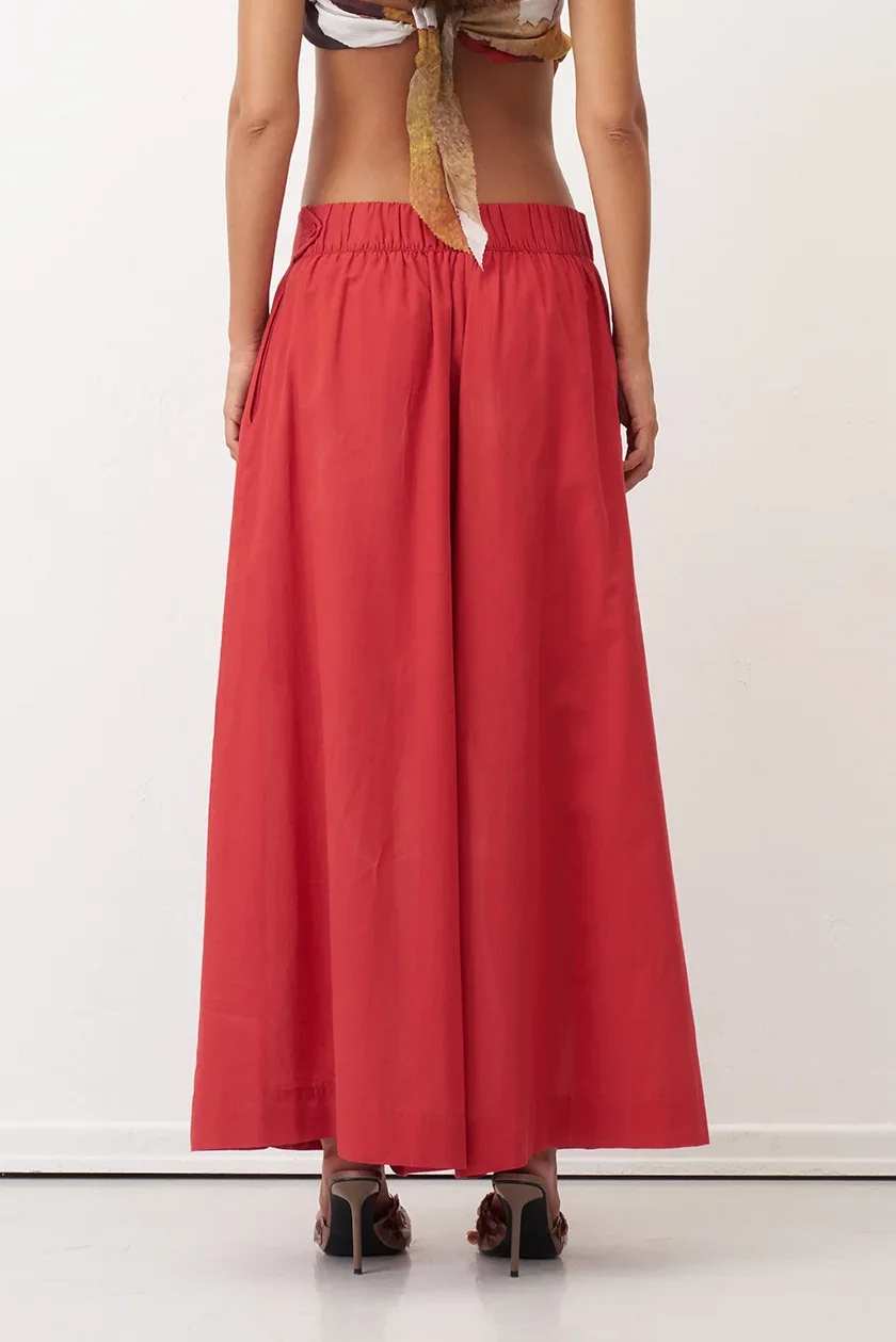 Kırmızı Bol Kesim Astarlı Uzun Daskalio Pantolon
