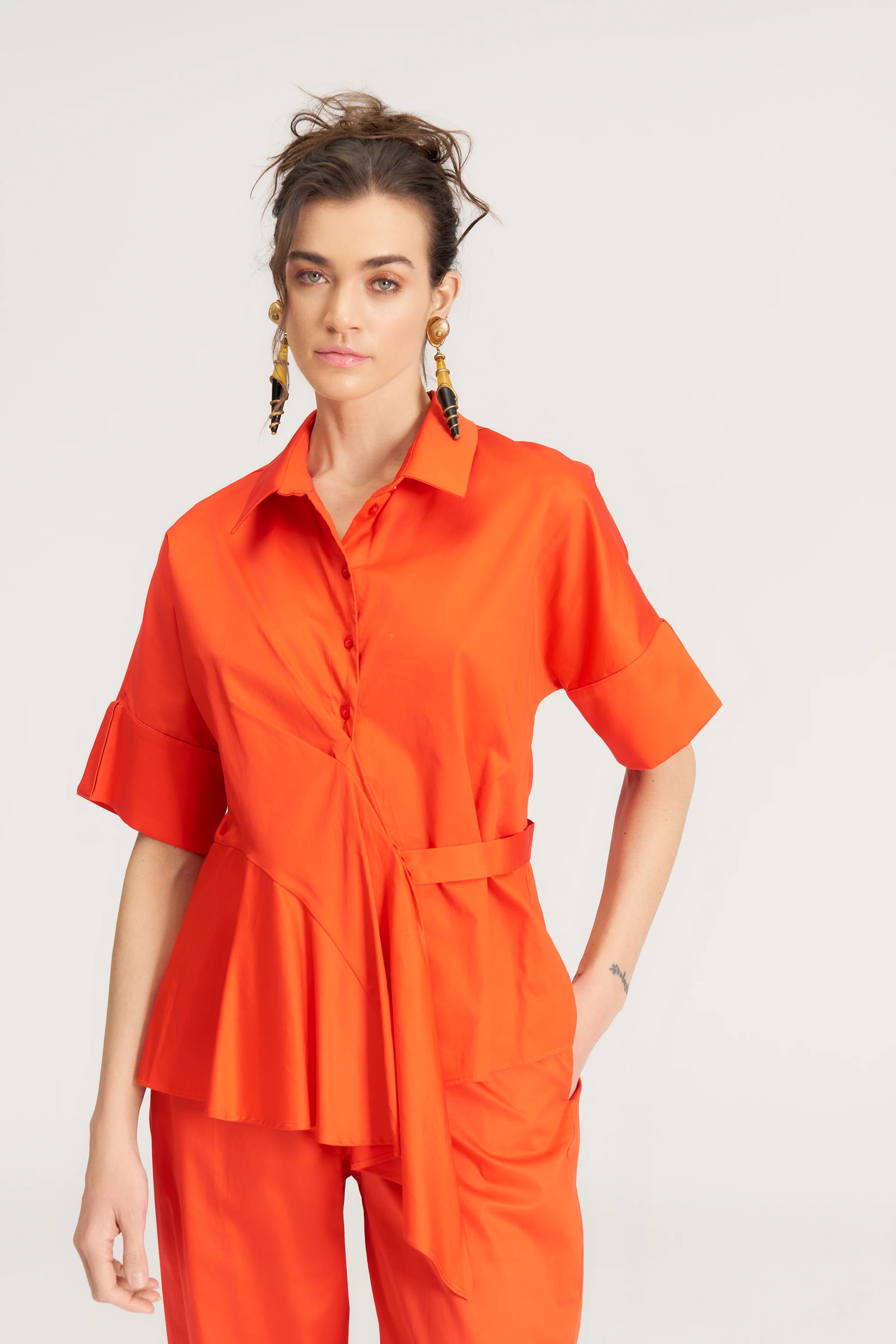 Kısa Kollu Anvelop Gömlek - Scarlet