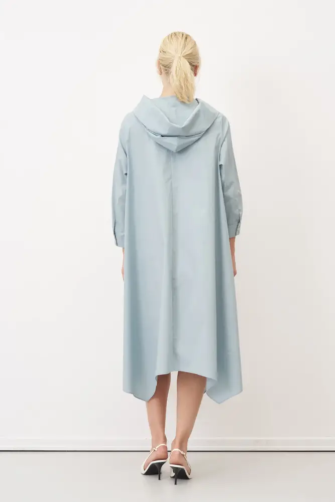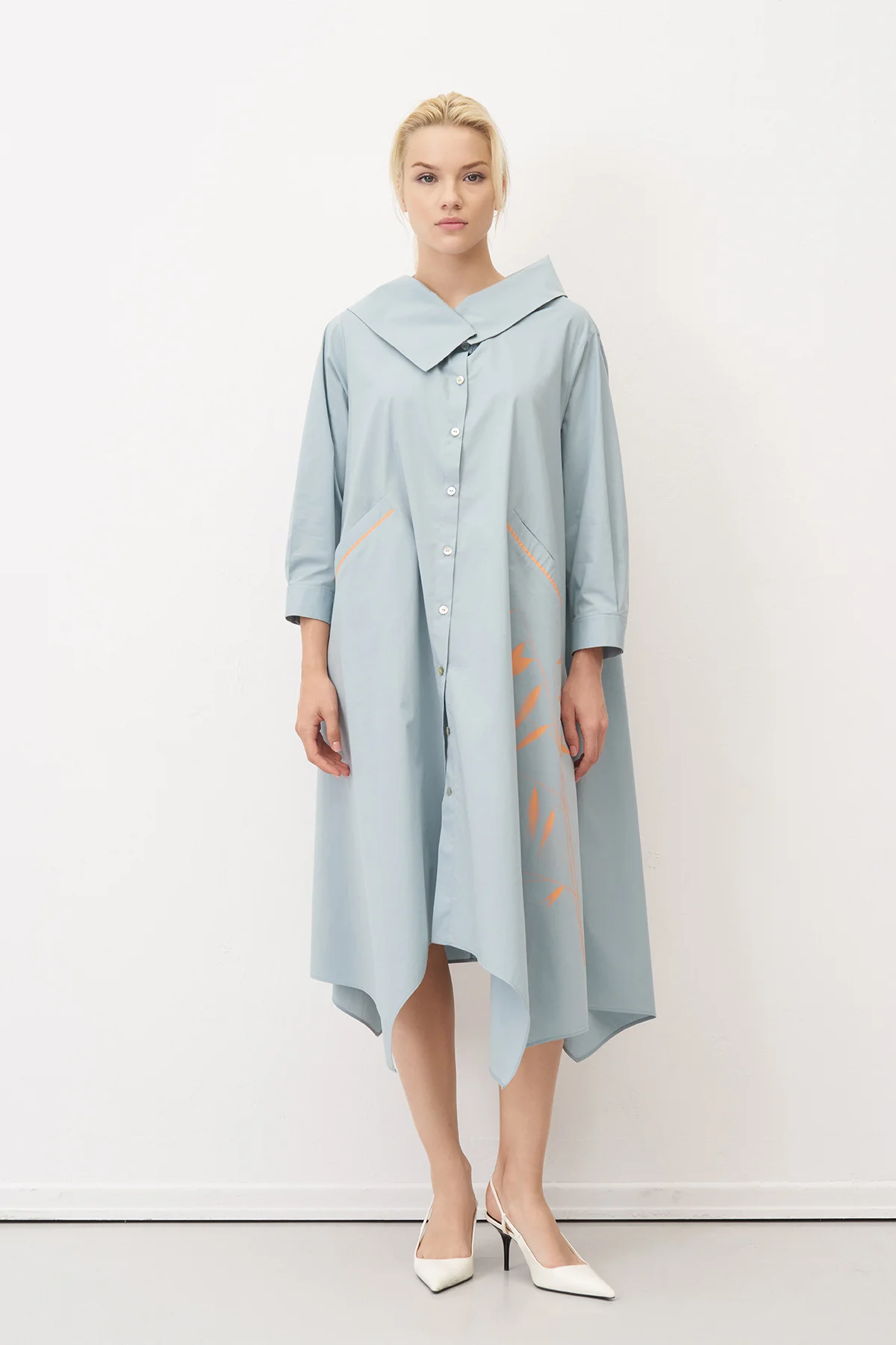 Mavi Bir Yanı Baskılı Büyük Yaka Symi Elbise