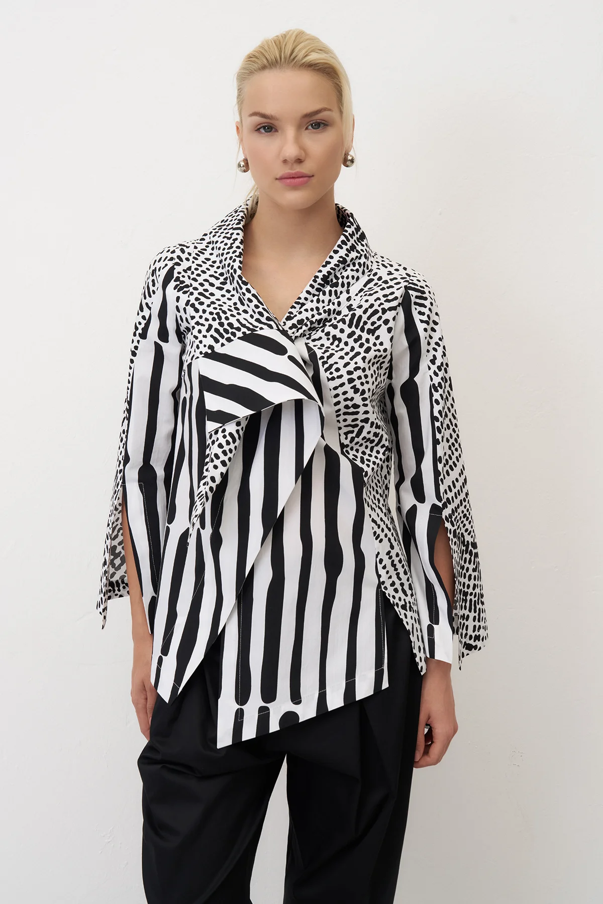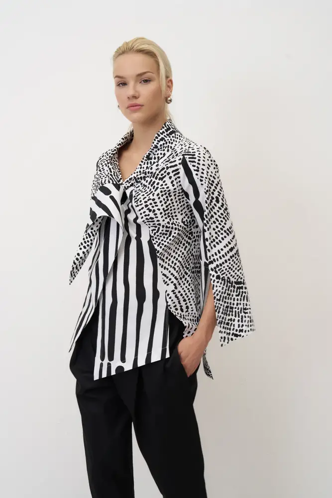 Noktalı Desenli Baskılı Kolları Yırtmaçlı Neraki Gömlek
