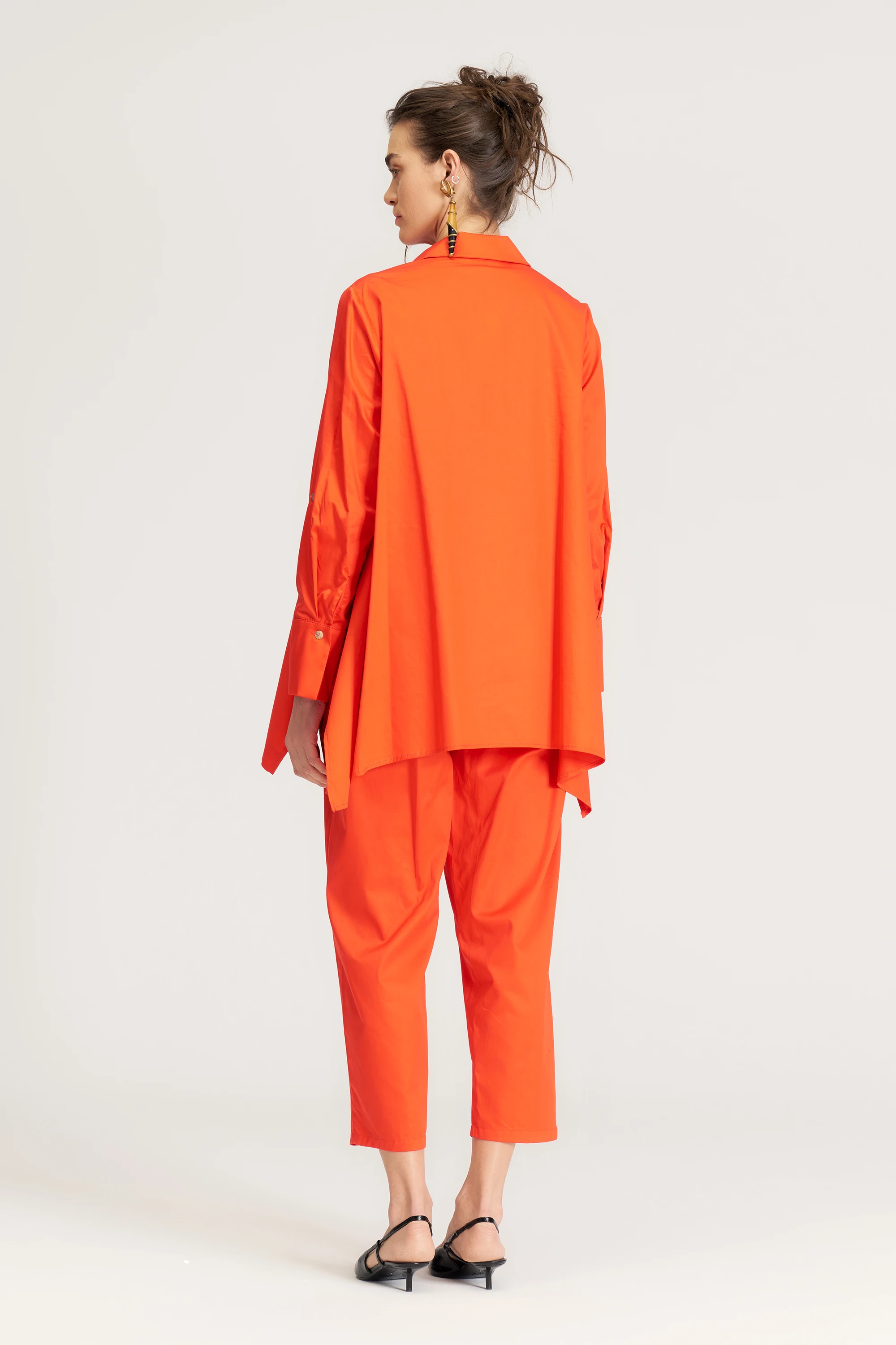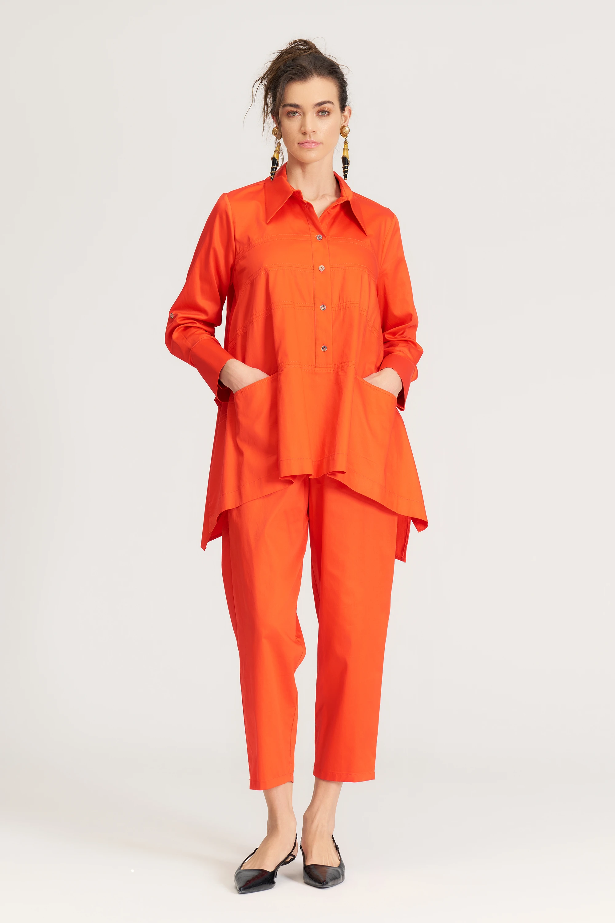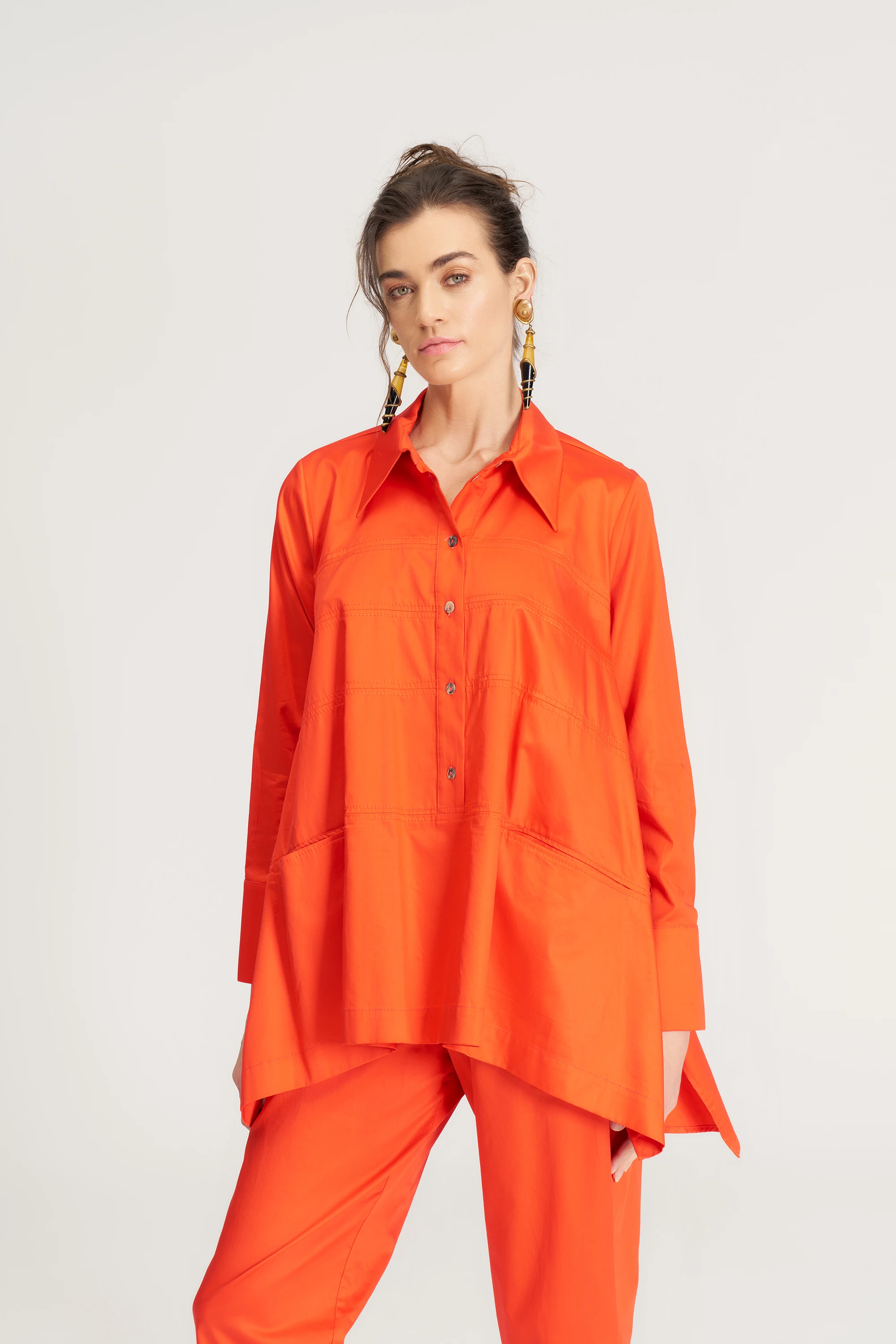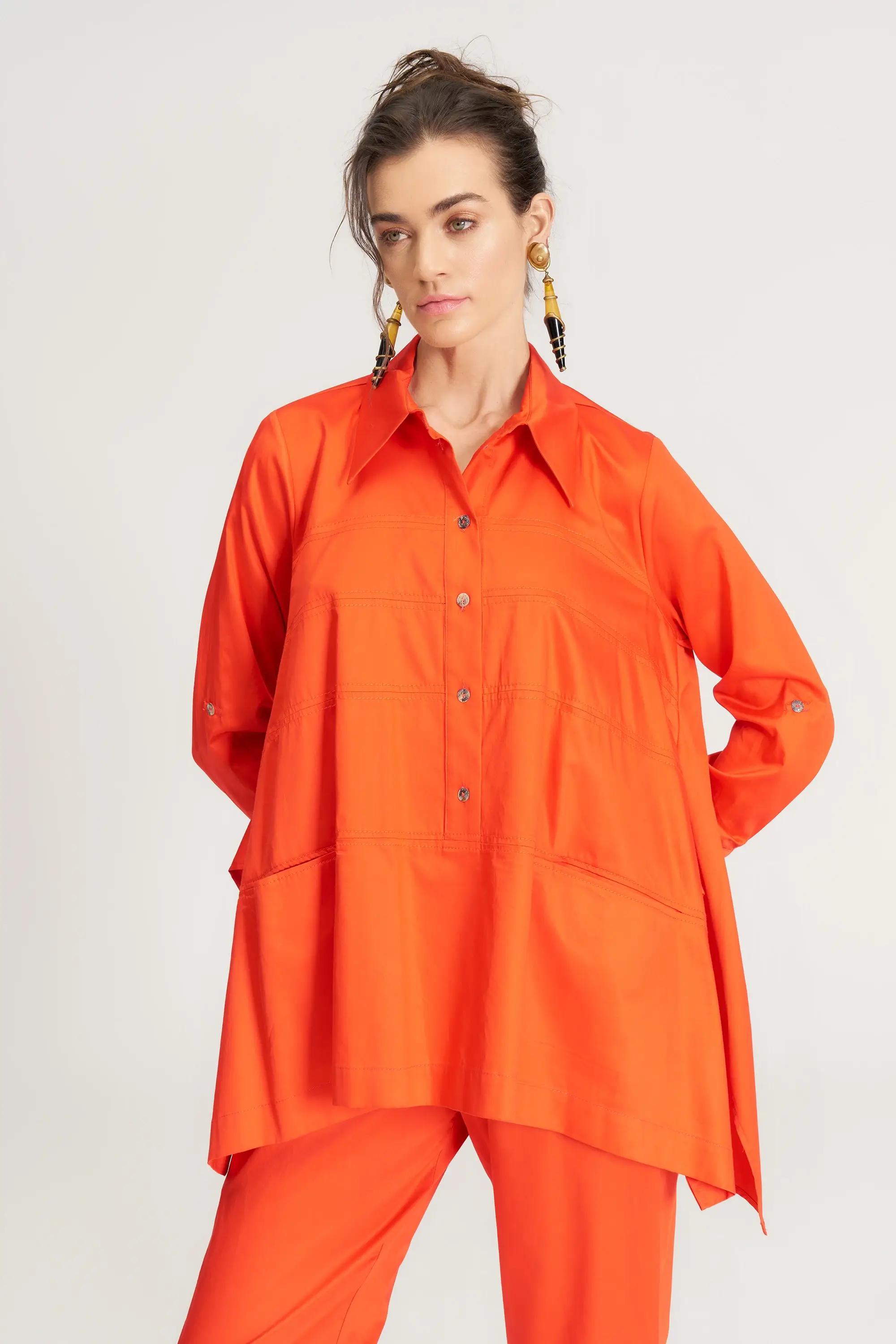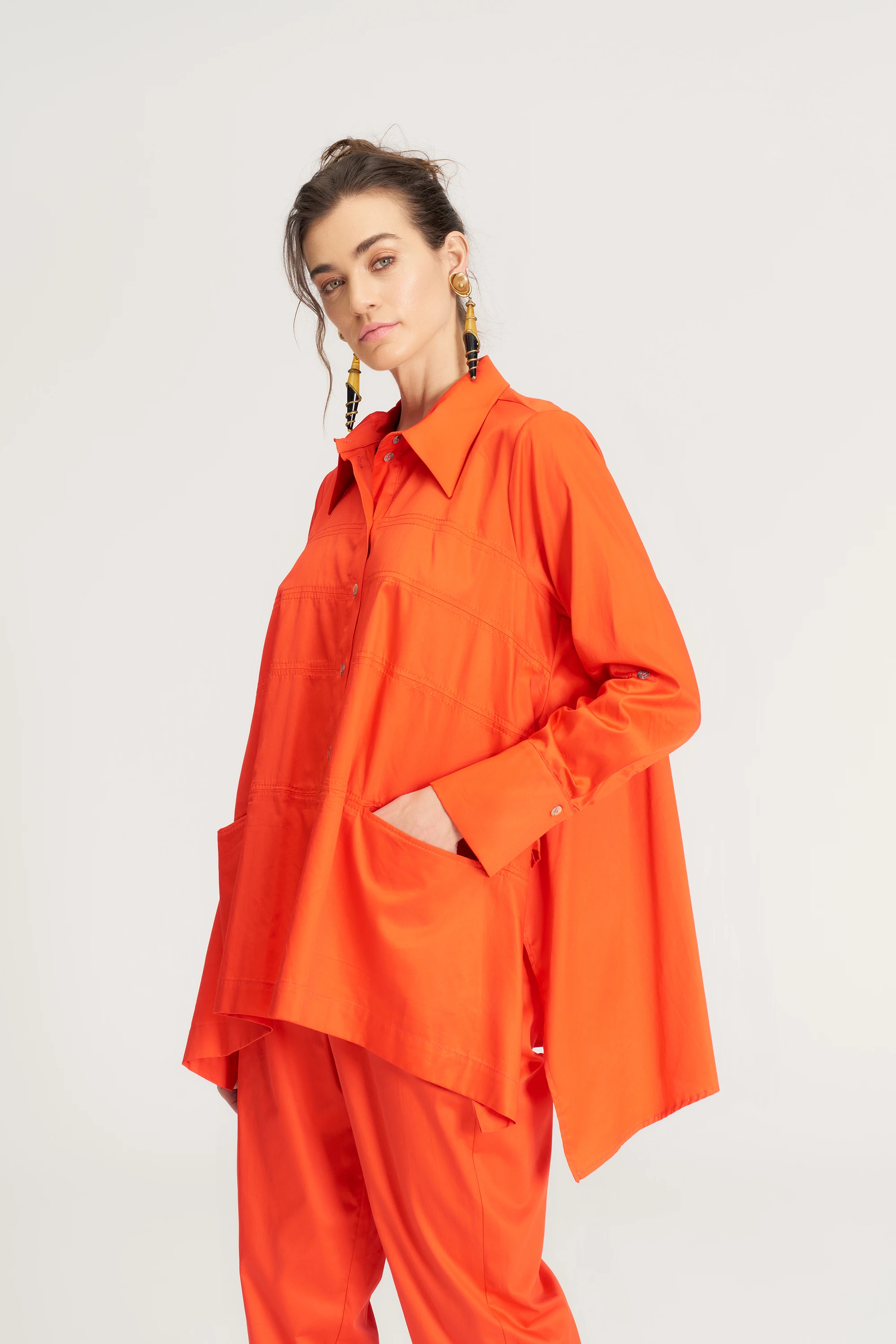 Önü Şerit Dikişli Cepli Gömlek - Scarlet