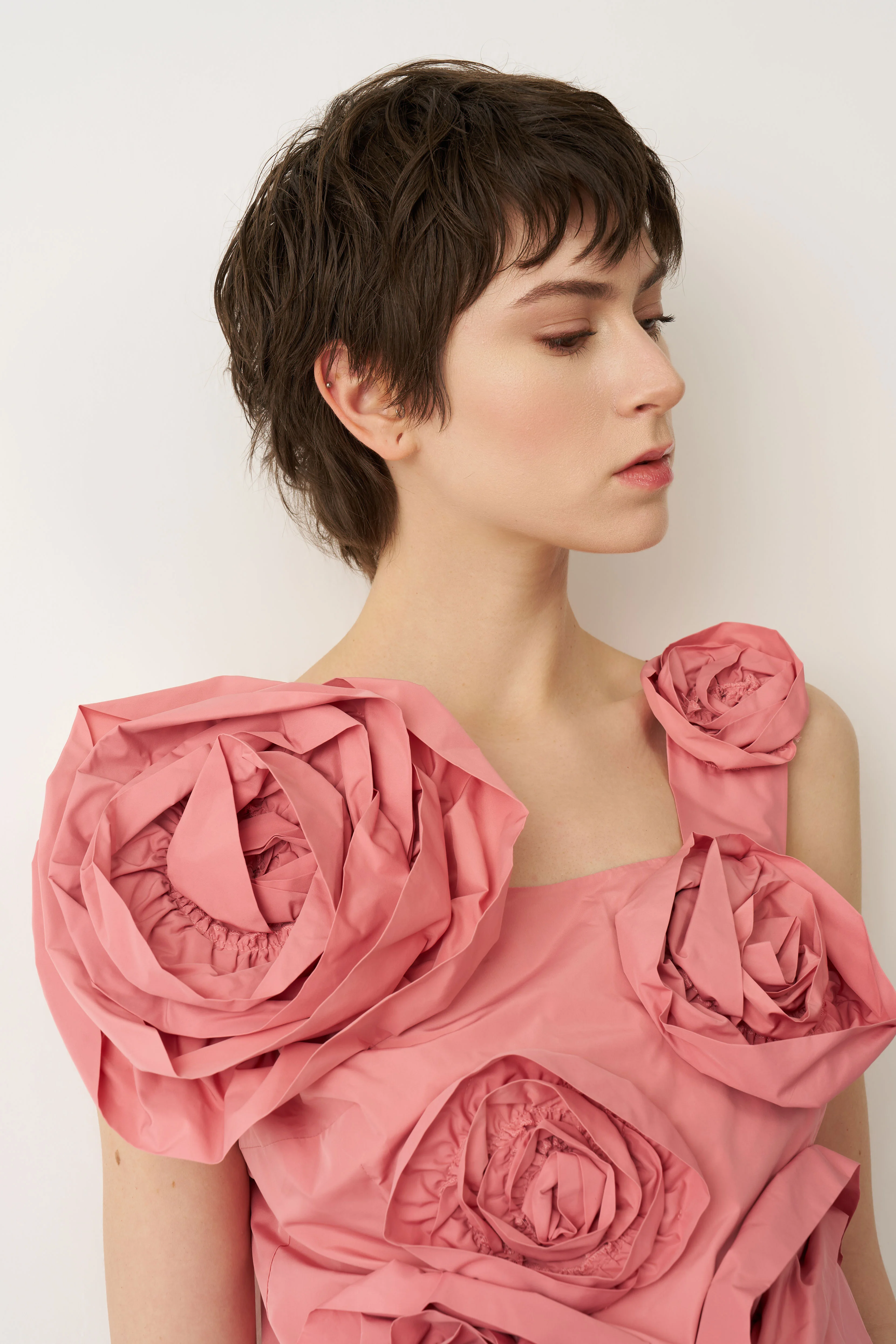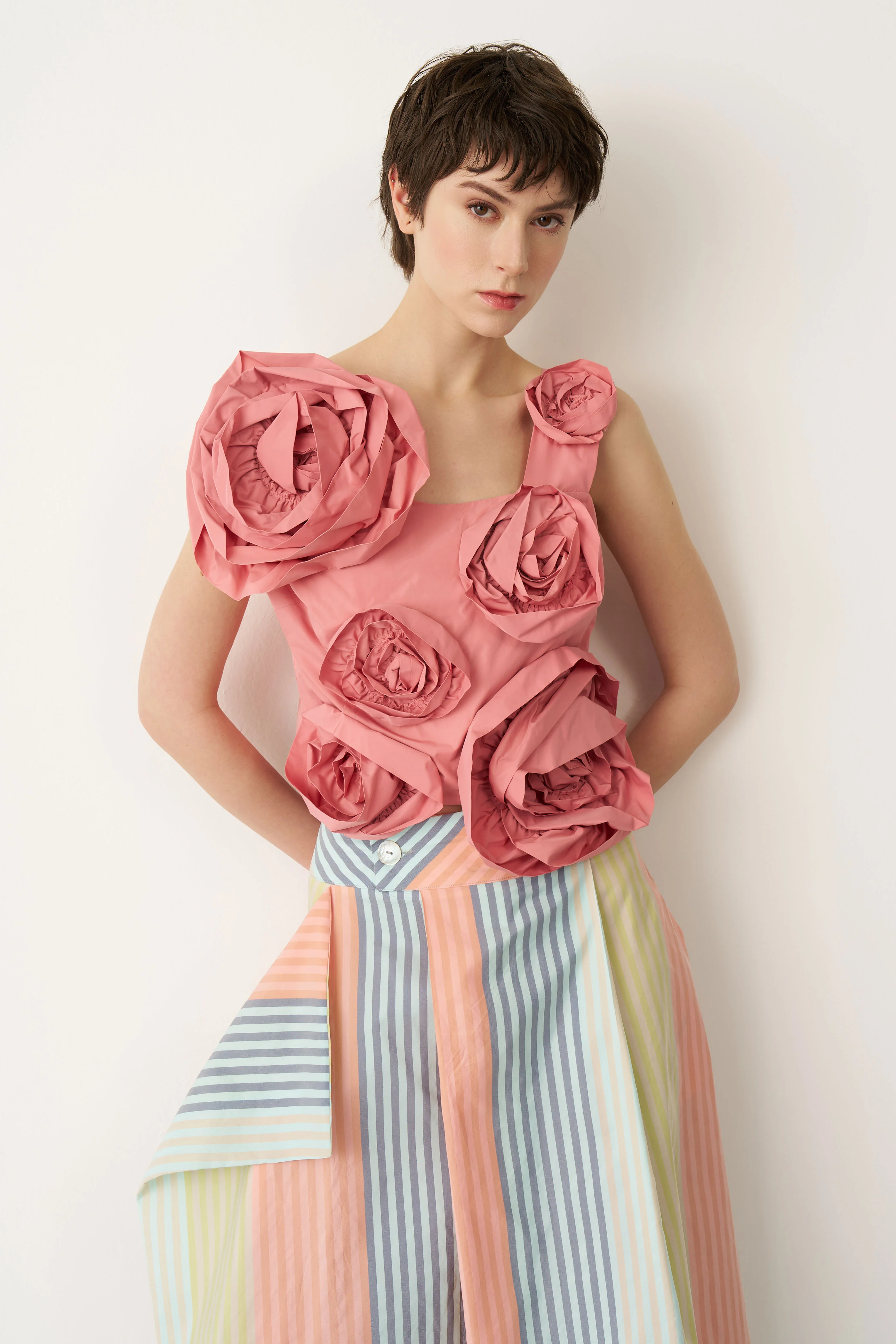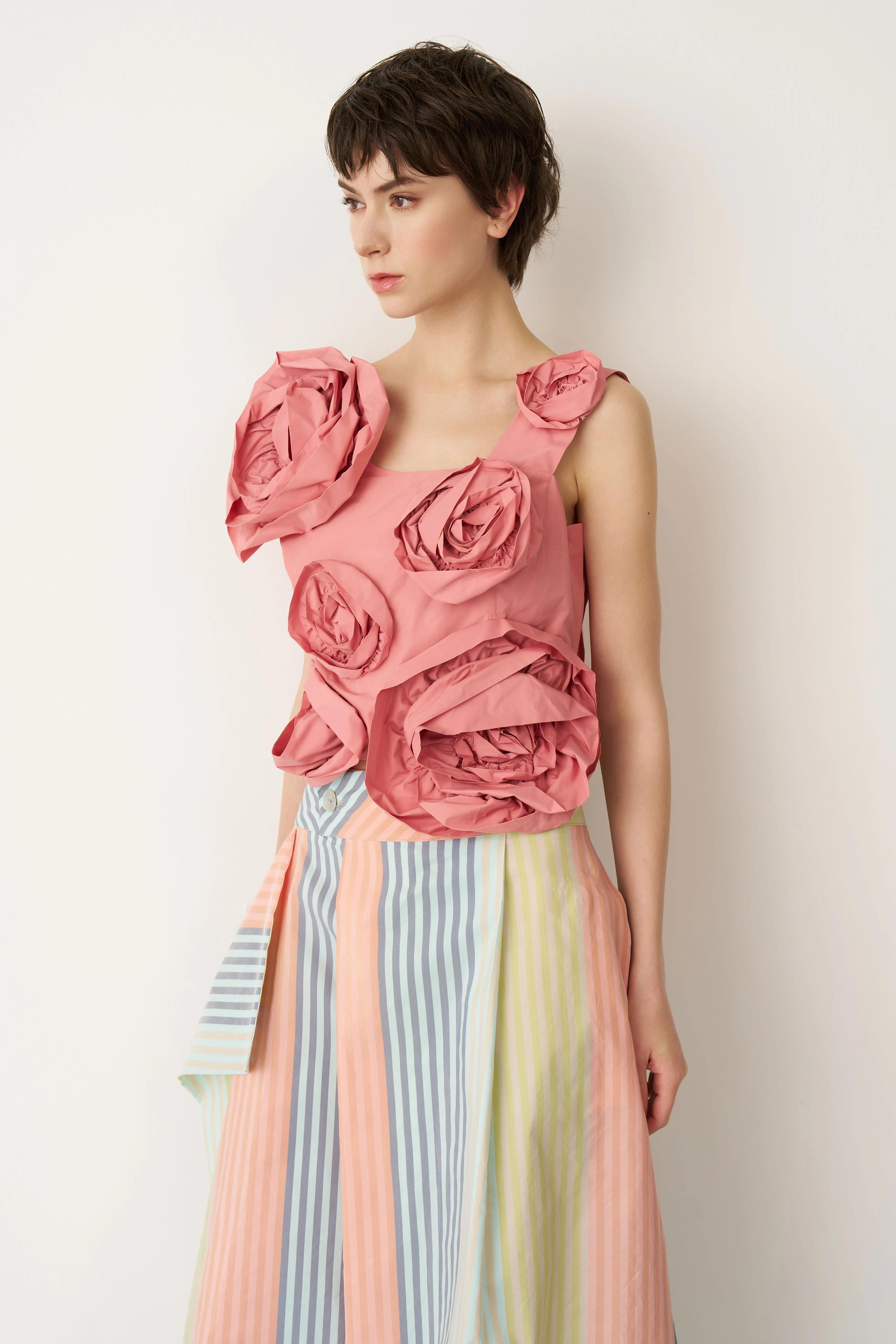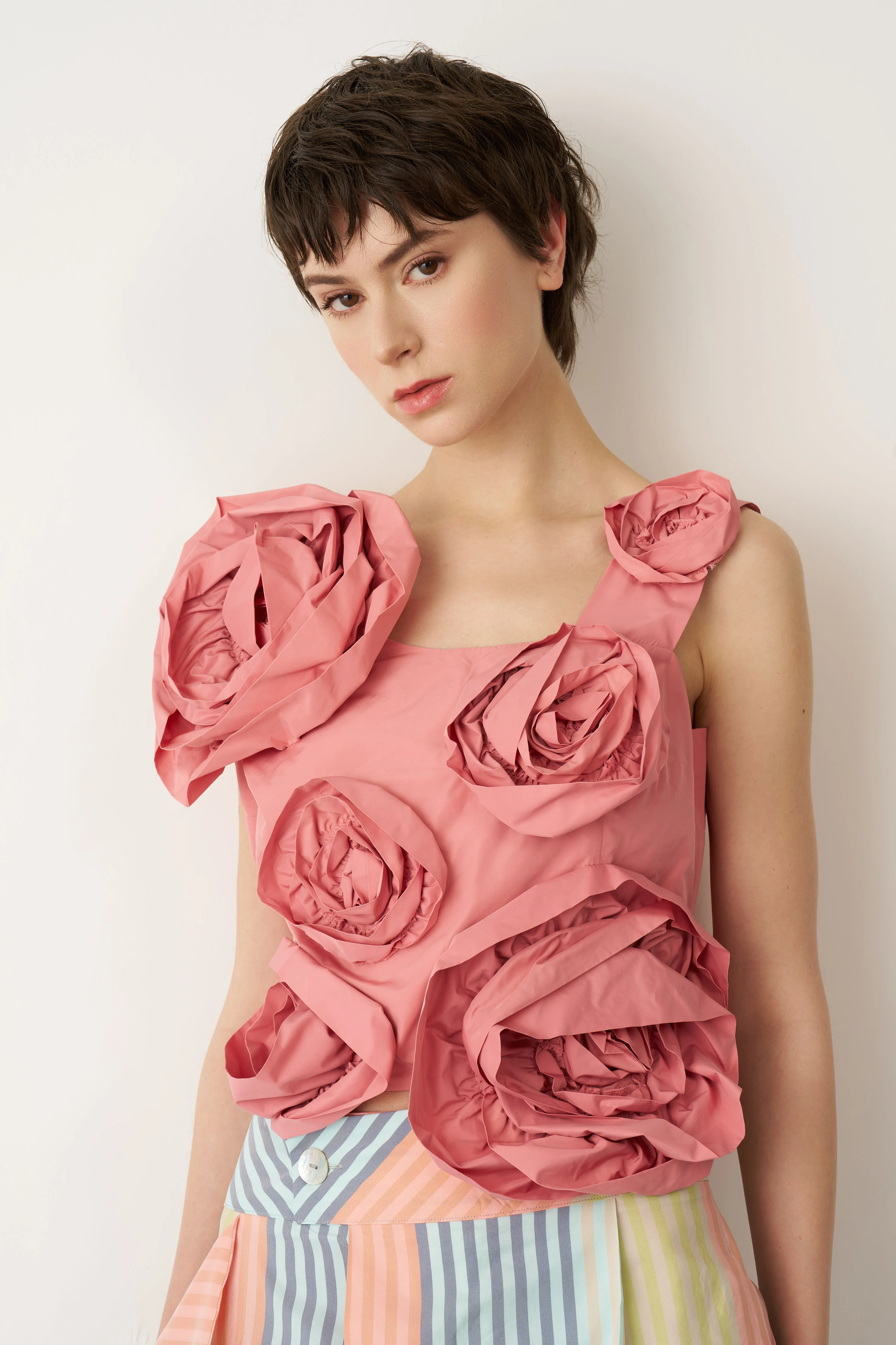 Pembe Güllü Kolsuz Kısa Bluz Pori