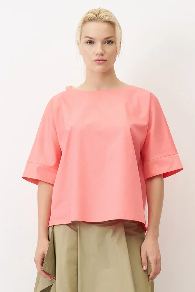 Pembe Sırt Dekolteli Çiçek Detaylı Chrissi Bluz