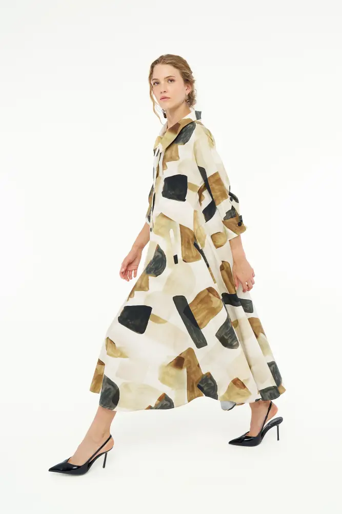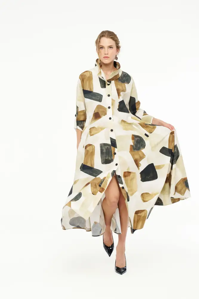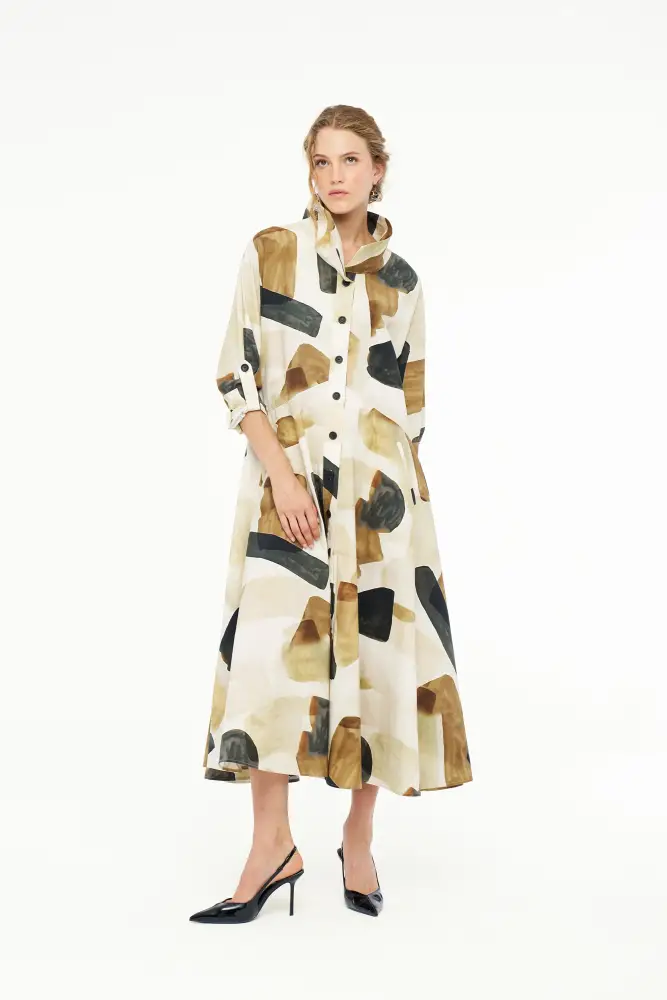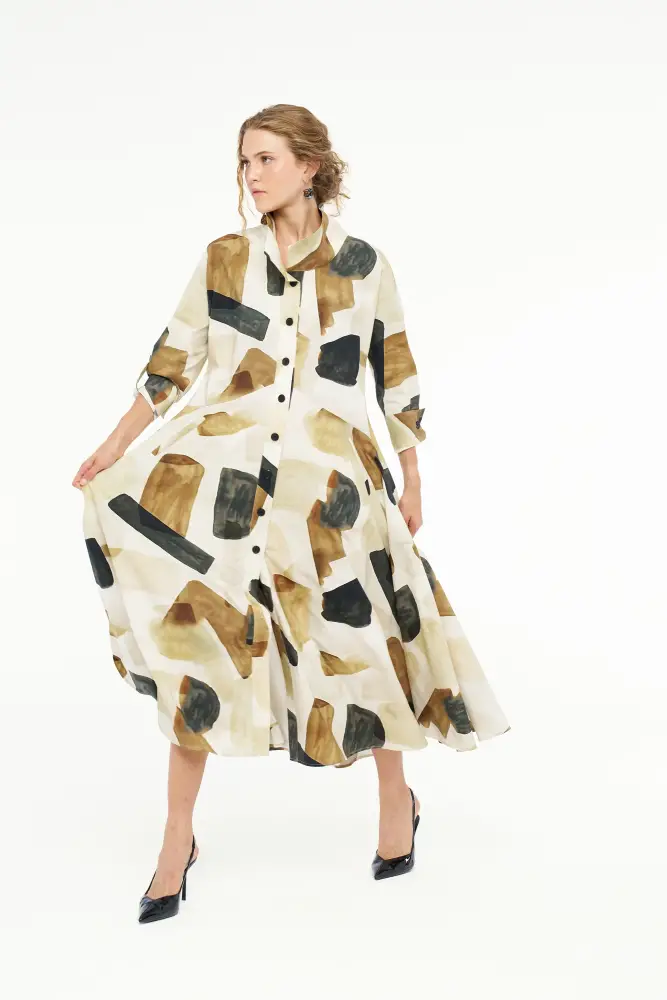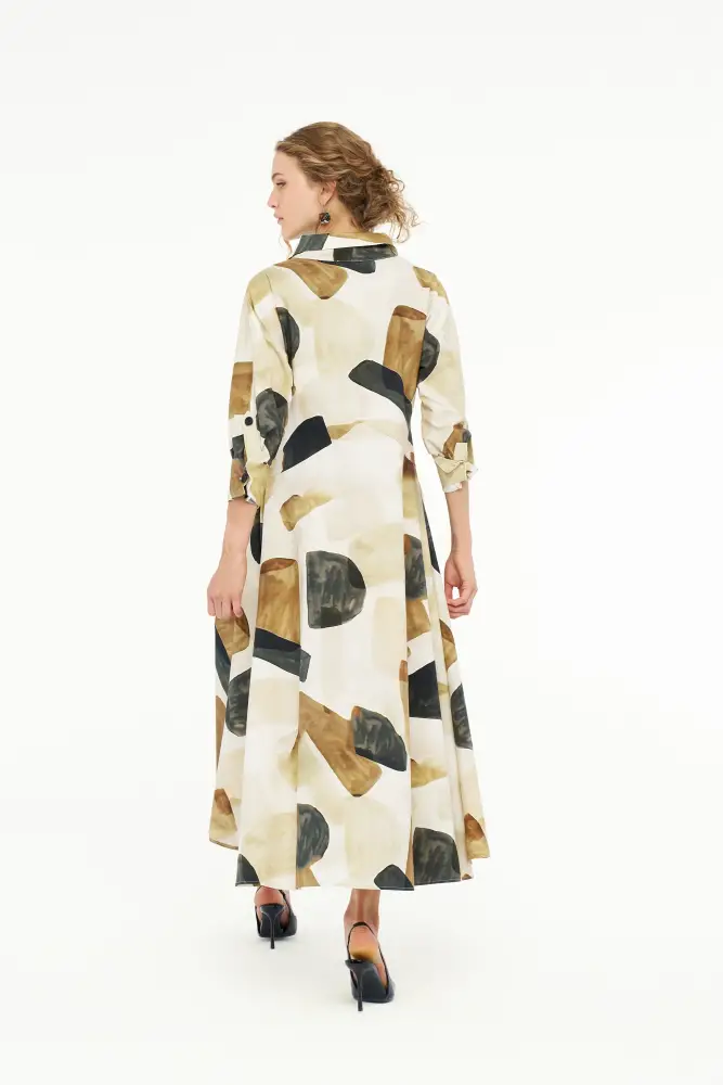 Renkli Desenli Gömlek Elbise