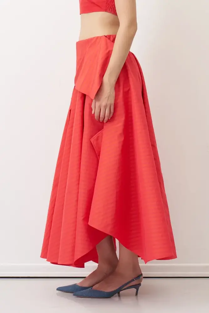 Roumeli Çizgili Etek - Kırmızı