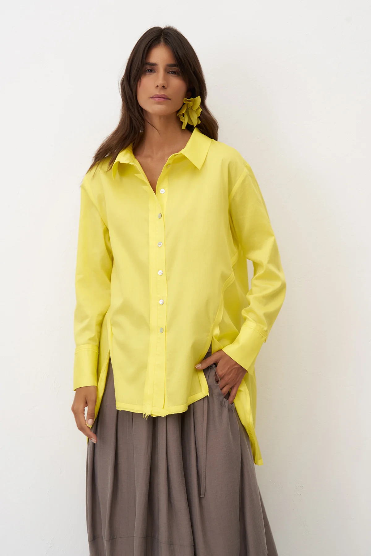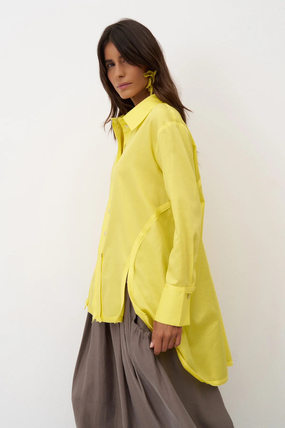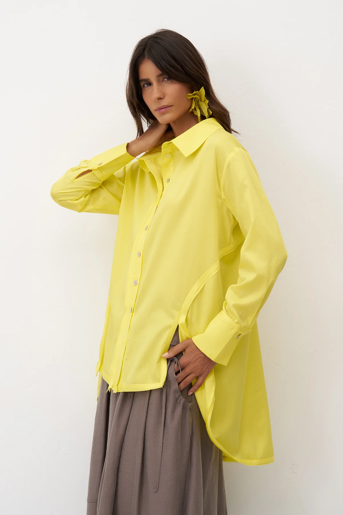 Sarı Yırtmaçlı Rahat Kesim Uzun Nisida Gömlek