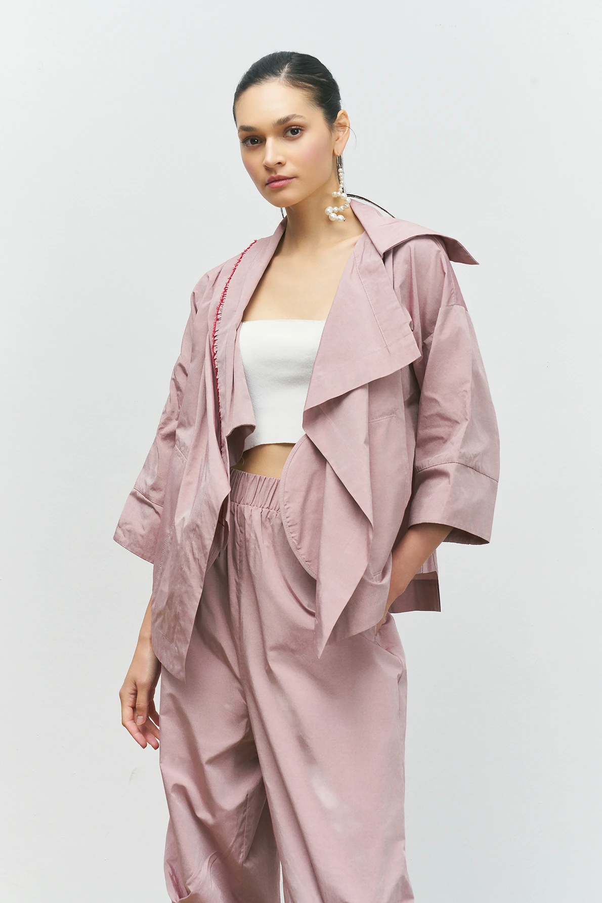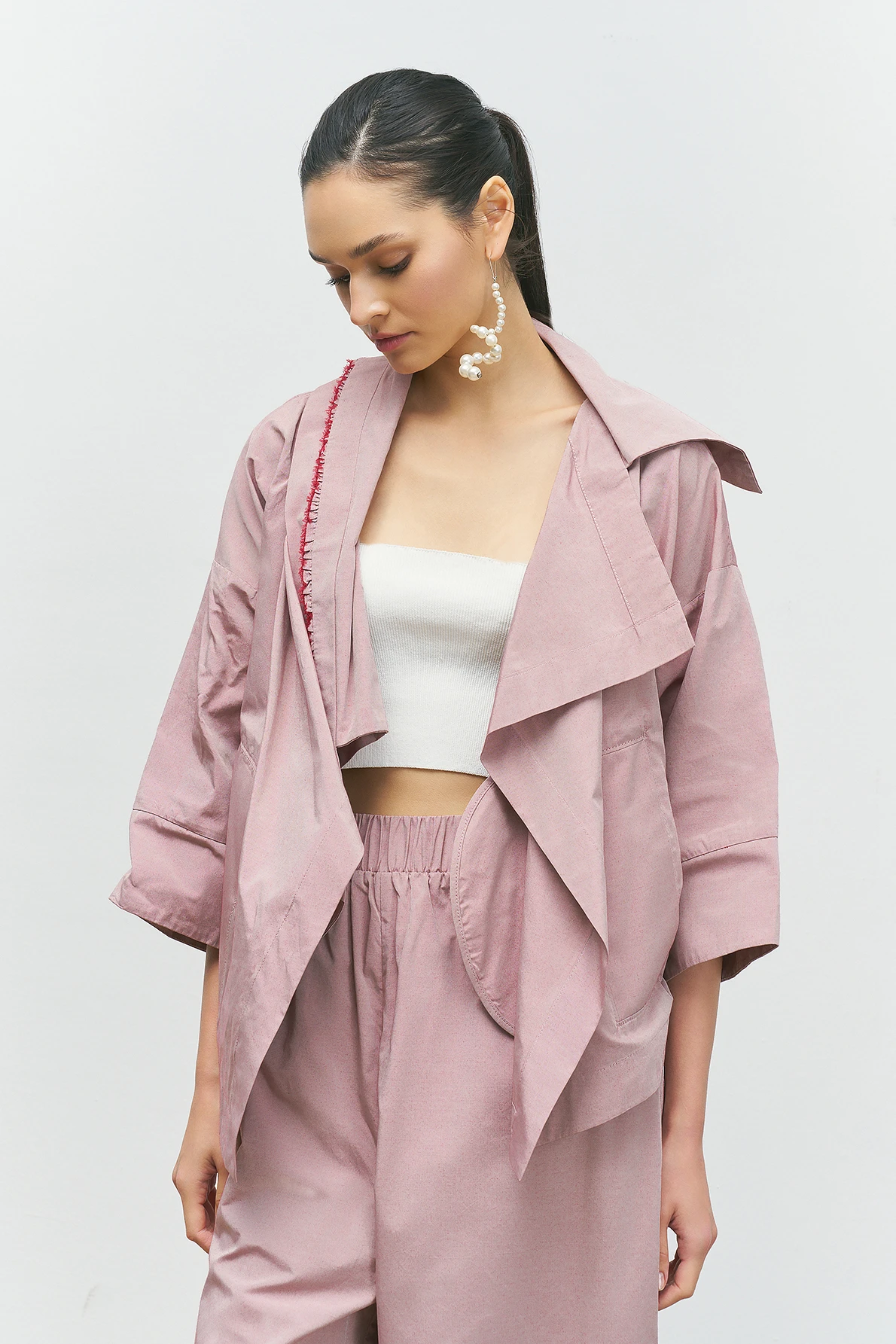 Şerit Detaylı Tafta Ceket - Kırmızı
