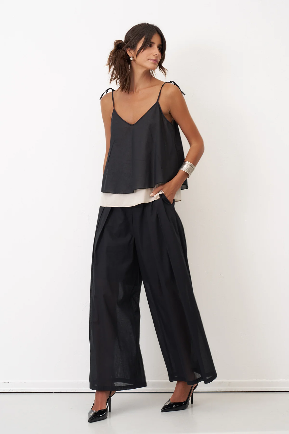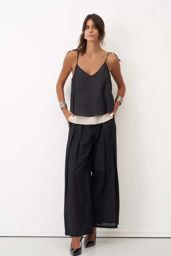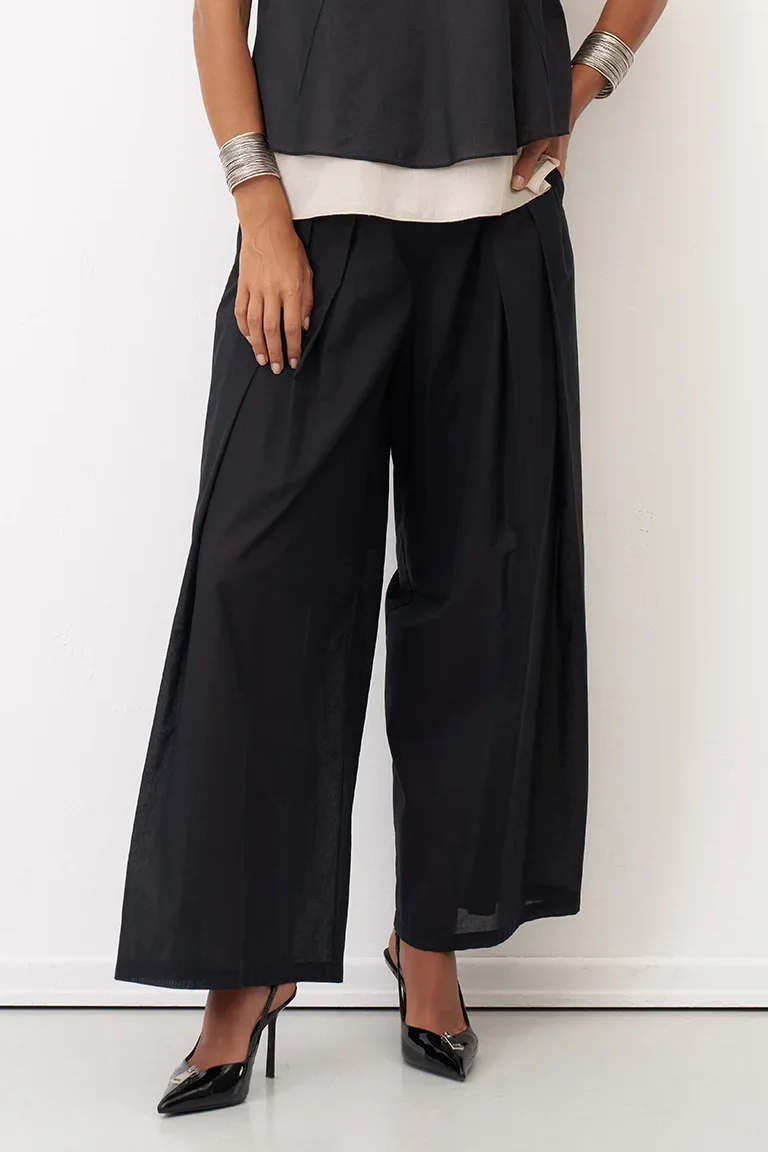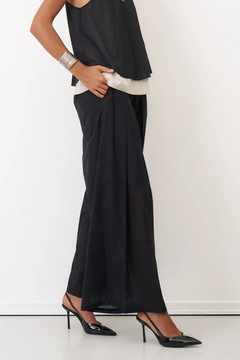 Siyah Bol Kesim Astarlı Uzun Daskalio Pantolon