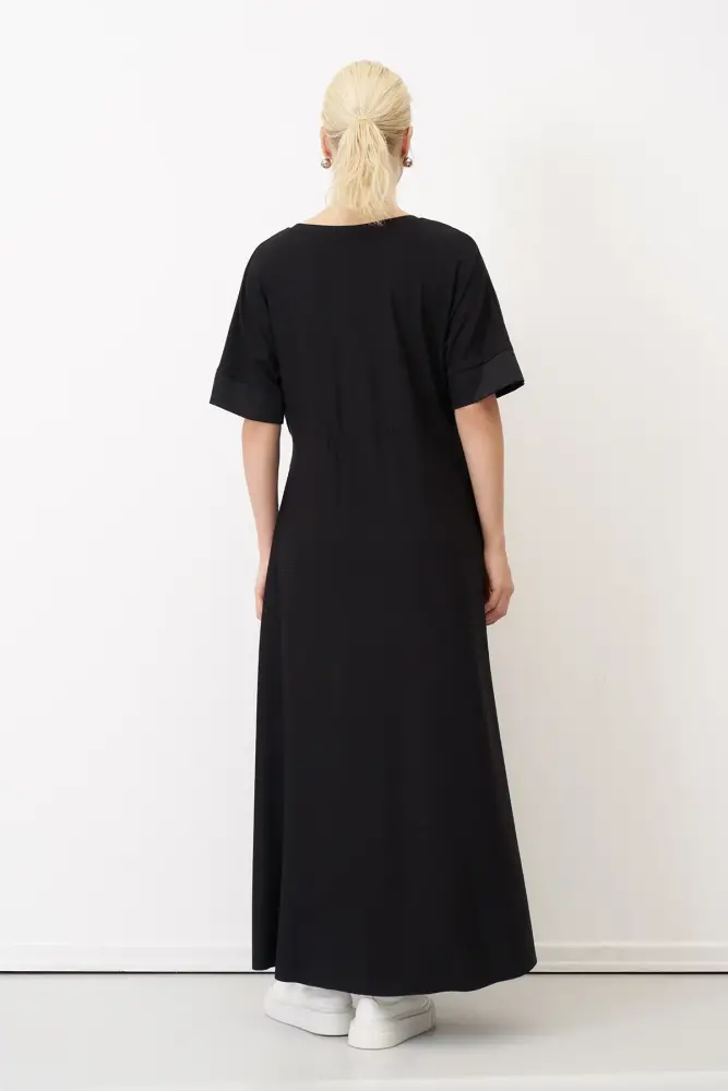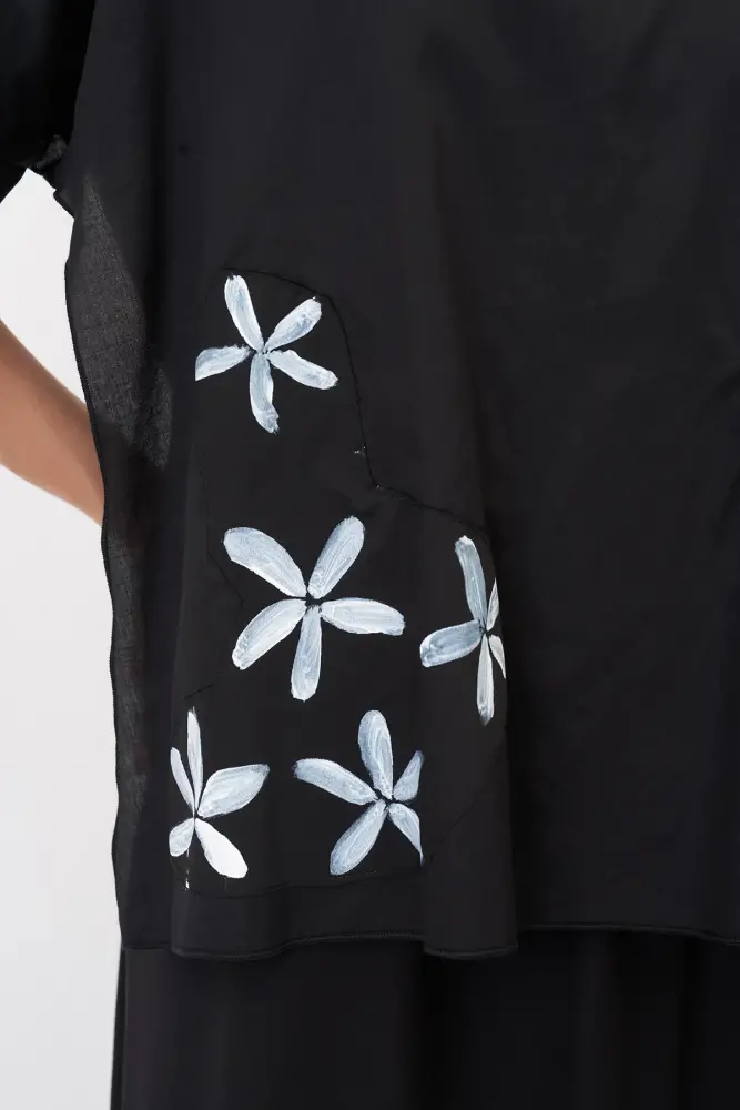 Siyah Çiçek Baskılı Spetses Çift Katlı Elbise