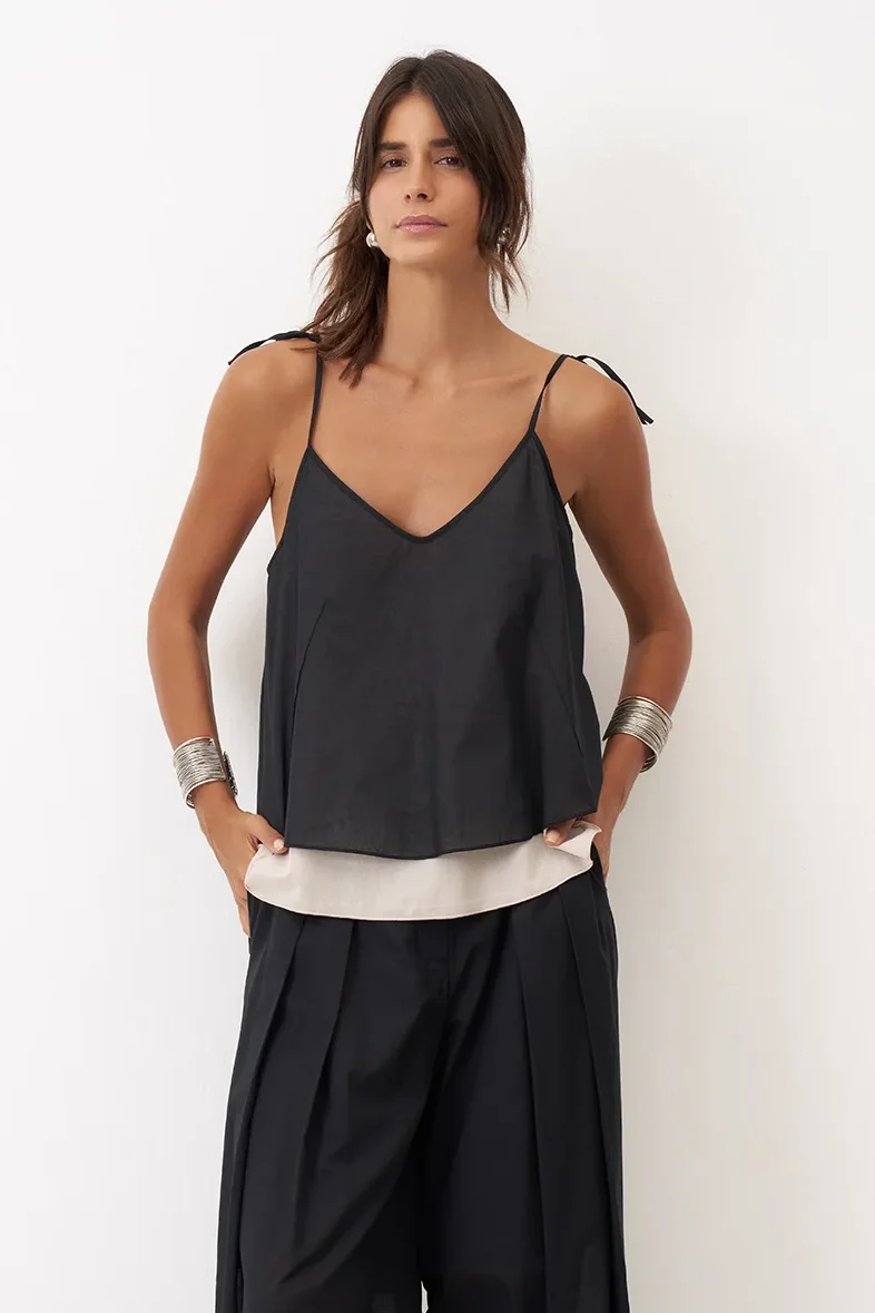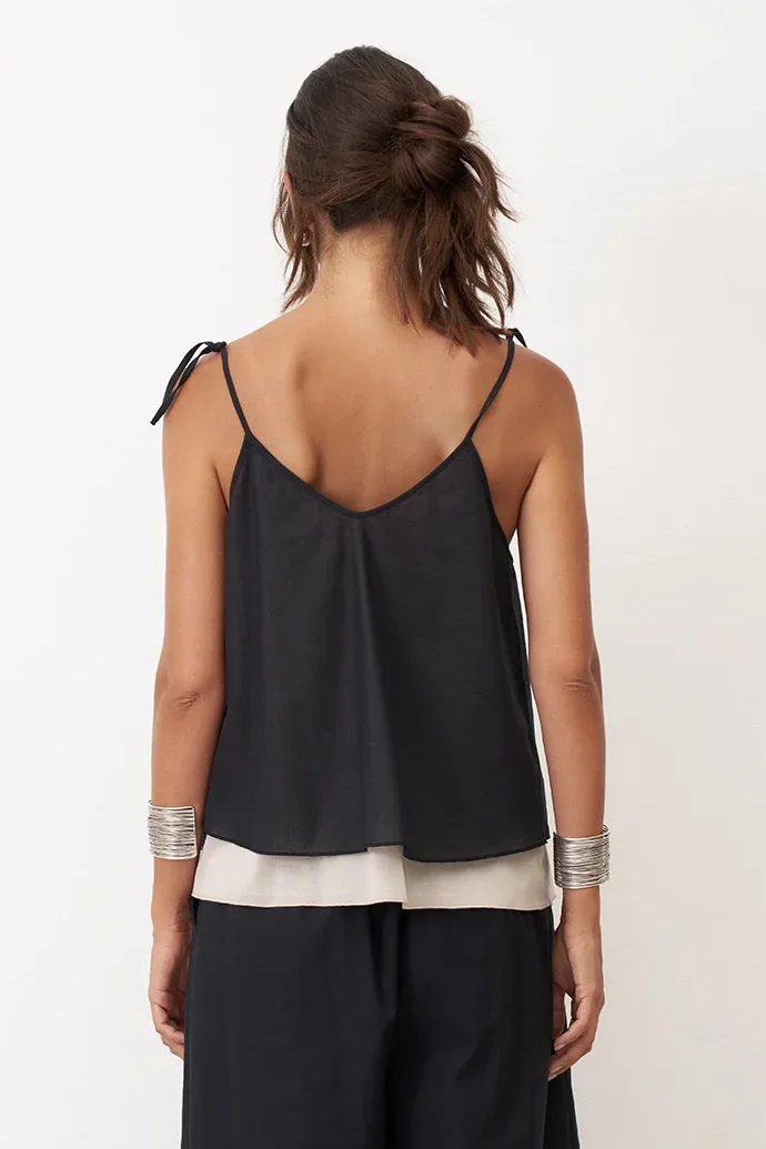 Siyah İnce Askılı Etek Ucu Renkli Kambi Bluz