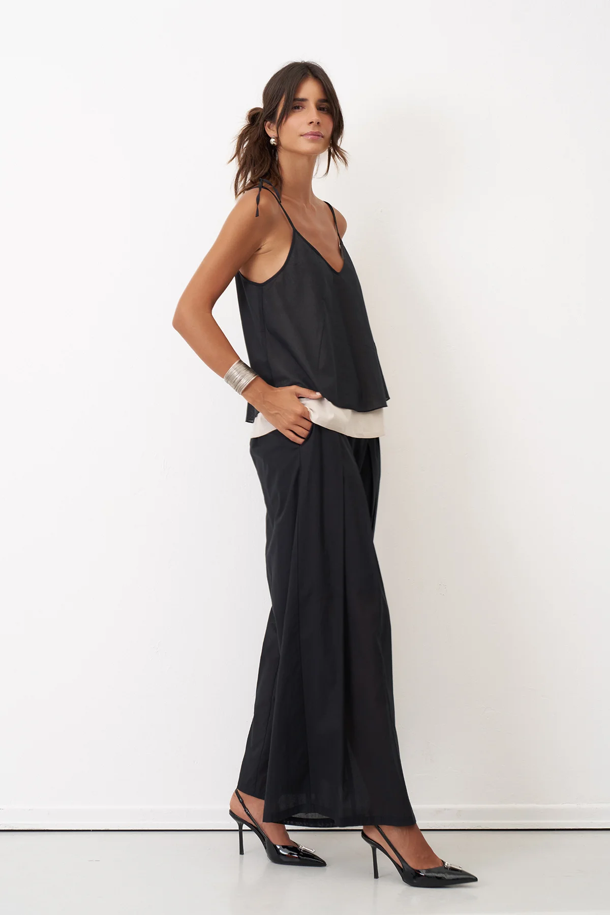 Siyah Bol Kesim Astarlı Uzun Daskalio Pantolon
