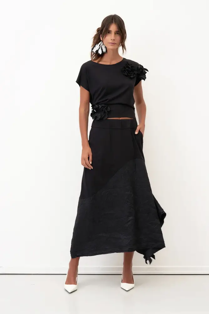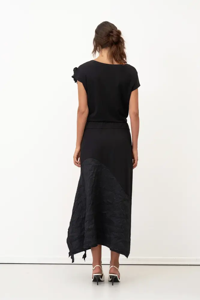 Siyah Kırışık Tafta Kumaş Miksli Kokkino Etek